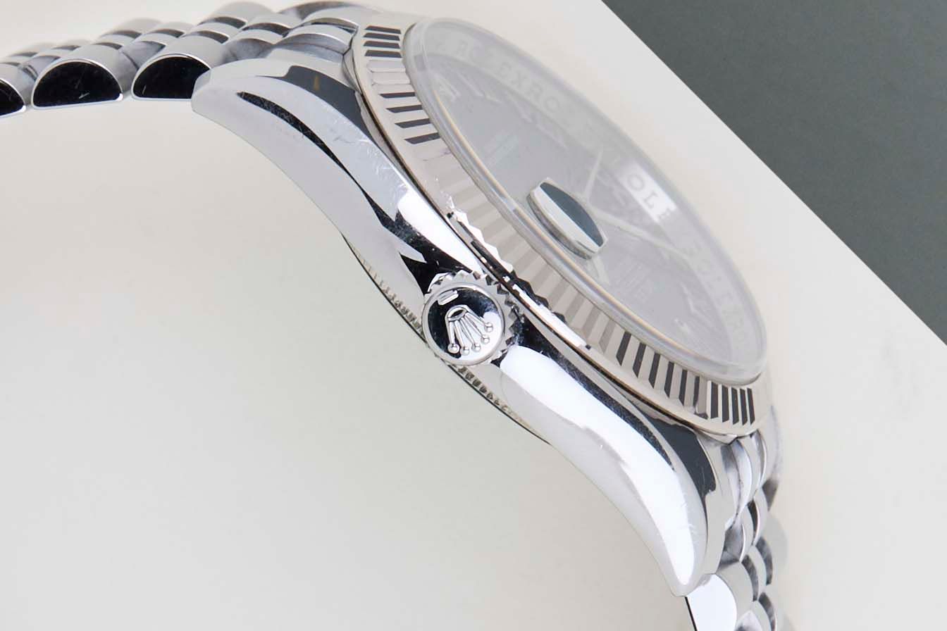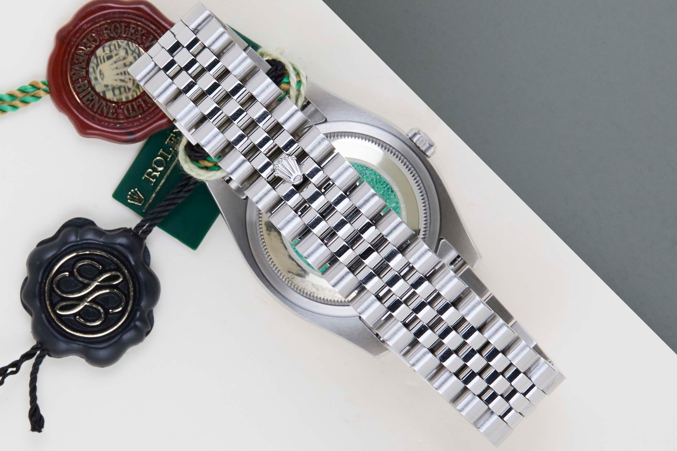 Full Set | Including Green Tag | European Warranty Card (LC200 - Greece)Rolex introduced the original Datejust in 1945 to celebrate the company's 40th anniversary. Due to the various case sizes and materials, the Datejust has been ingrained in Rolex's history and remains incredibly popular for 75 years.This Rolex Datejust 'Black Sunburst Dial' was sold for the first time in February 2007.This Datejust is made of a combination of 18k White Gold and stainless steel and is fitted with a Jubilee bracelet which conceals the Crownclasp. The timepiece features a special Black Sunburst Roman Dial.This Rolex Datejust 36 is in Mint condition and comes with the original Rolex Warranty Papers and Box. Furthermore, the watch has been serviced by our watchmaker, and therefore it comes with one year of Steiner warranty.