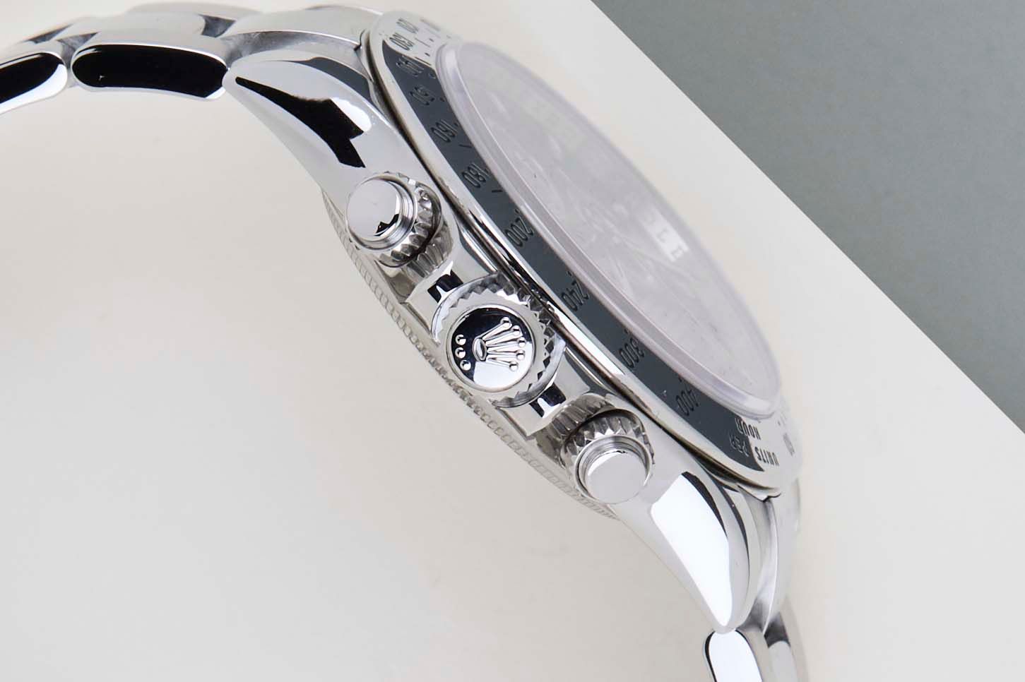 Die Referenz 116520 ist die erste Generation der Daytona mit einem hauseigenen Uhrwerk von Rolex, Kaliber 4130. Das neue Kaliber war das Ergebnis von fünf Jahren Innovation, Verfeinerung und technischer Verbesserung, was zu einem besseren und zuverlässigeren Kaliber führte.