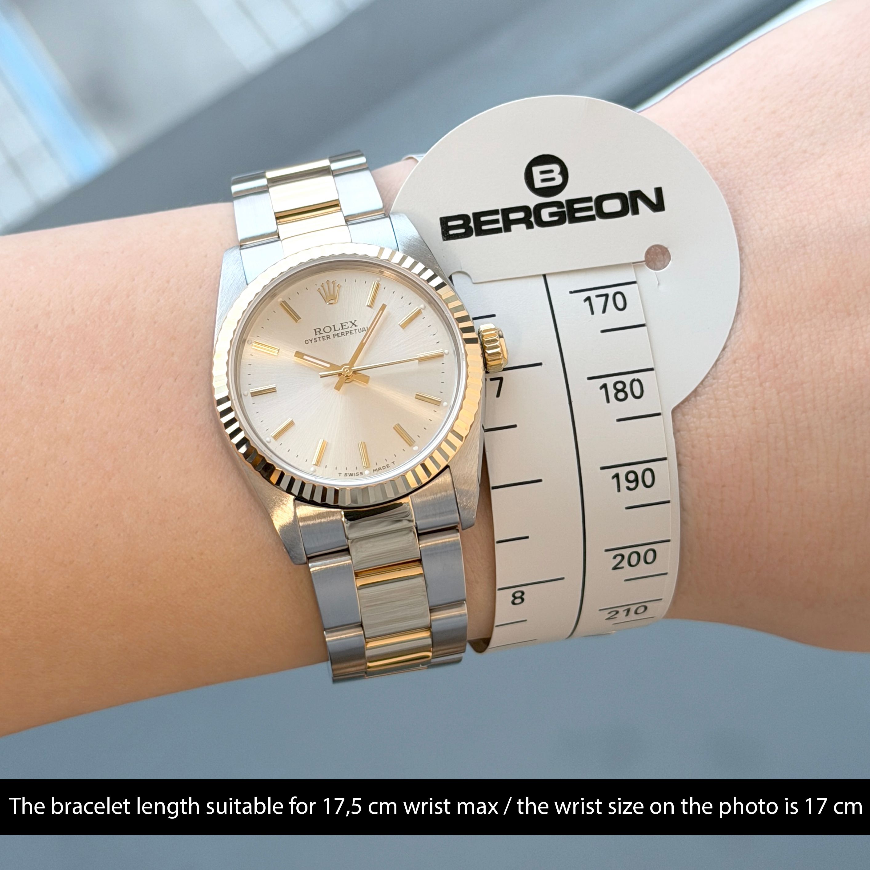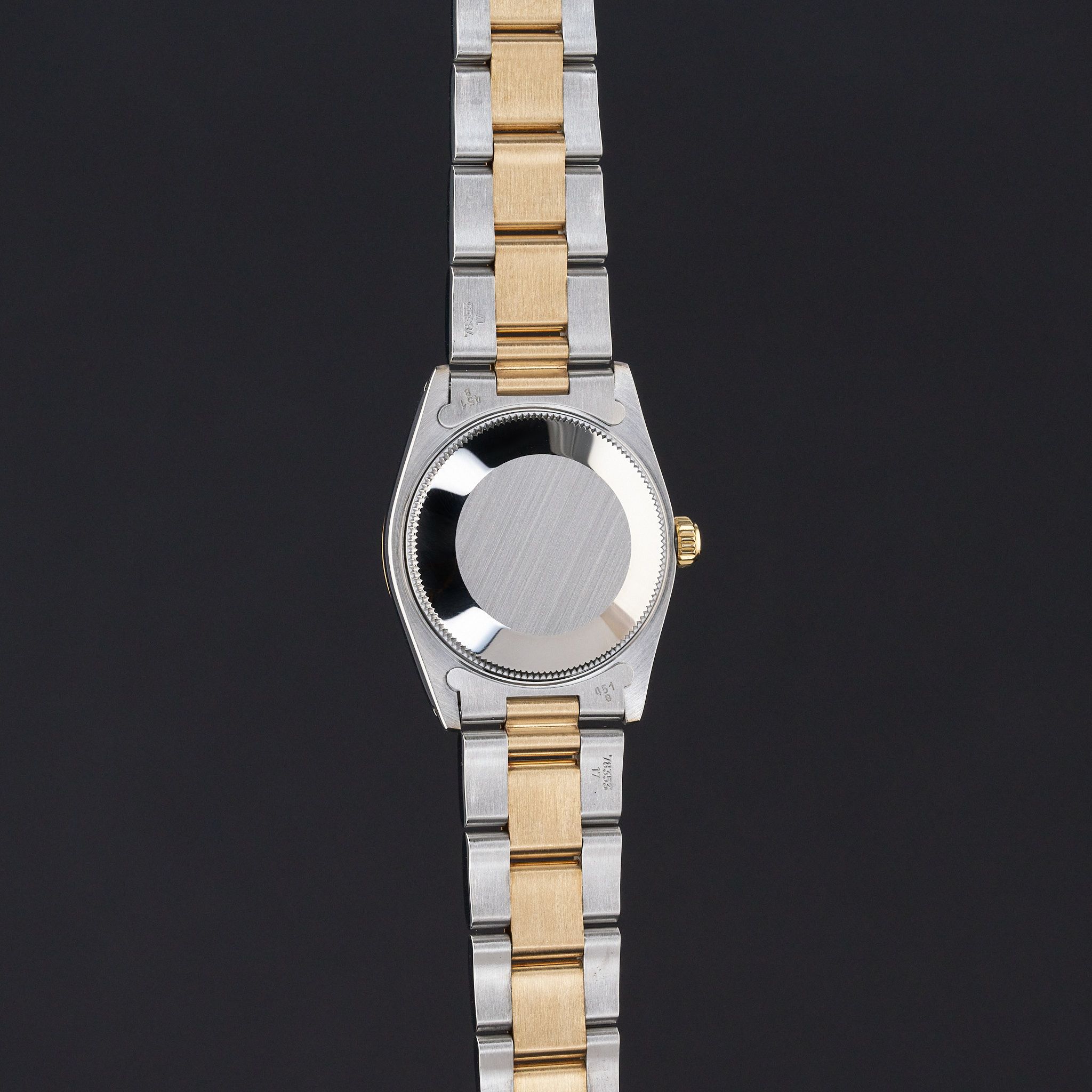 This Rolex Oyster Perpetual 67513 features a Silver dial and is crafted from 18K yellow gold and stainless steel, with a production year of 1988.Case No: R66XXXX