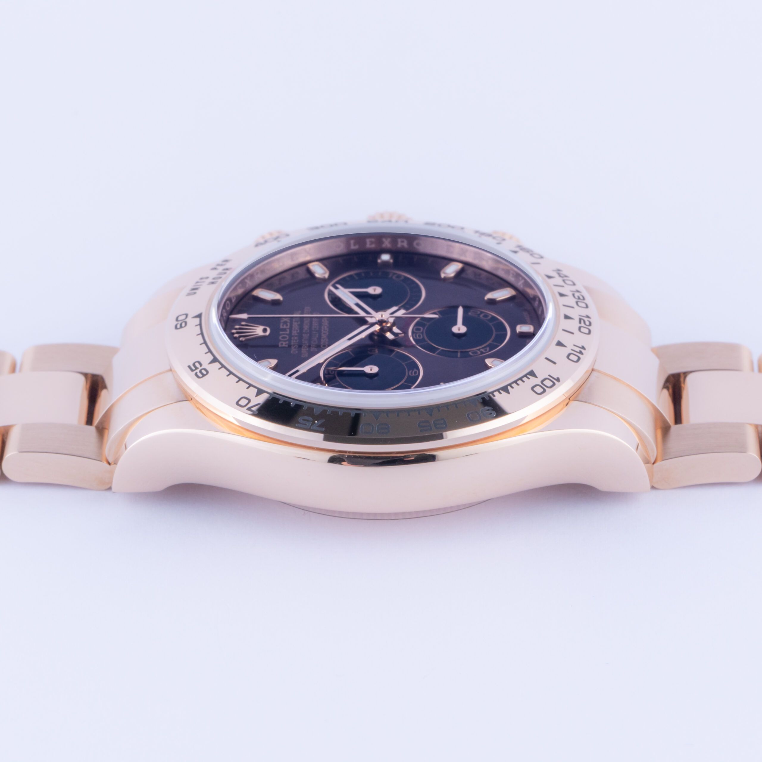 Rolex Daytona reference 116505 from 2022 including full set. The Rolex Daytona reference 116505 measures a 40mm rose gold case, and features a rose gold Oyster bracelet, tachymeter scale bezel and chocolate dial. The Rolex Daytona 116505 is powered by an in-house Caliber 4130 movement that features a chronograph function, allowing you to time your activities with accuracy and ease.Every watch sold by Langedyk Vintage Watches is included with a LVW watch box, Authenticity report and free worldwide (insured) shipment. In addition, every pre-owned watch is offered with our 12-month warranty from the date of purchase.