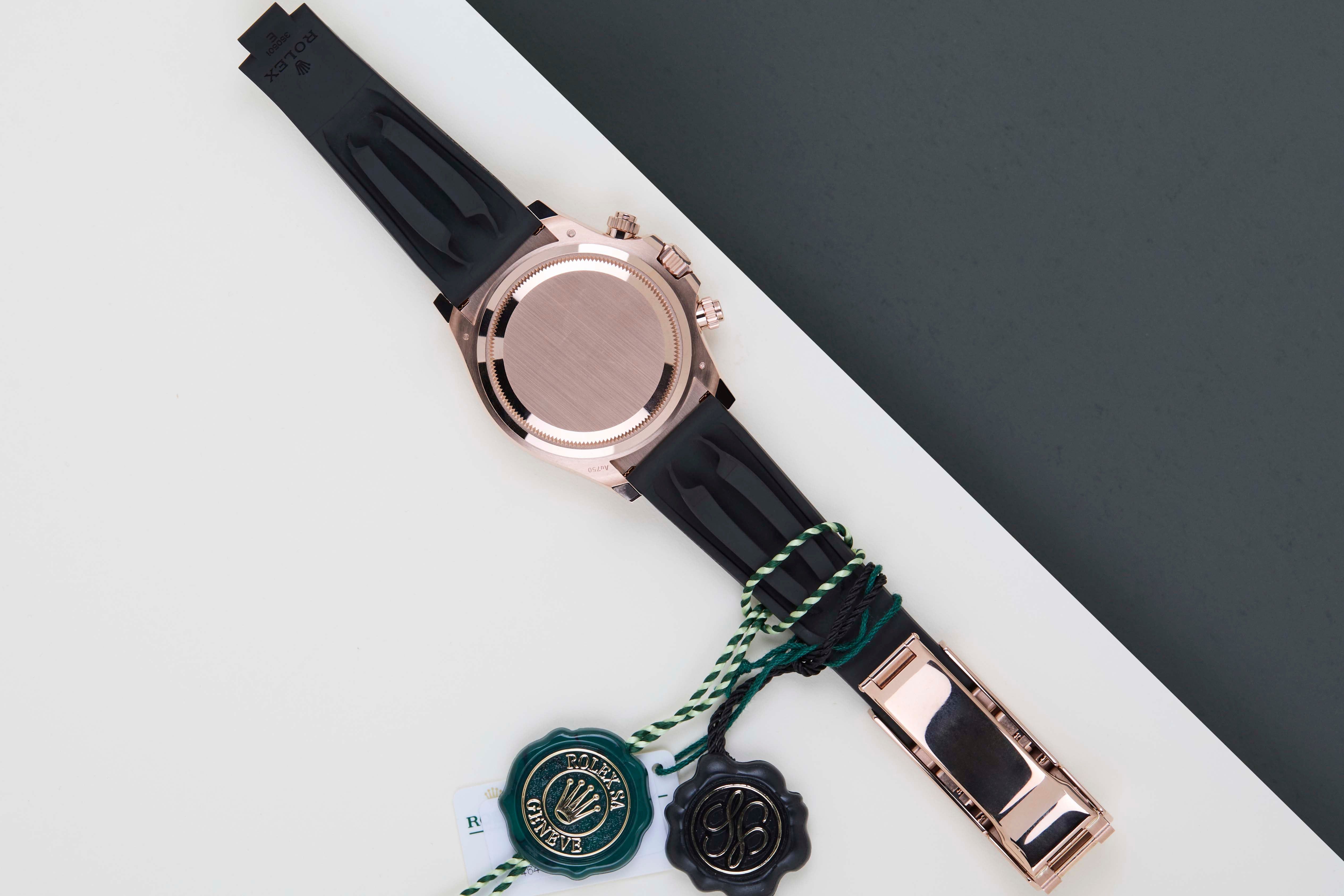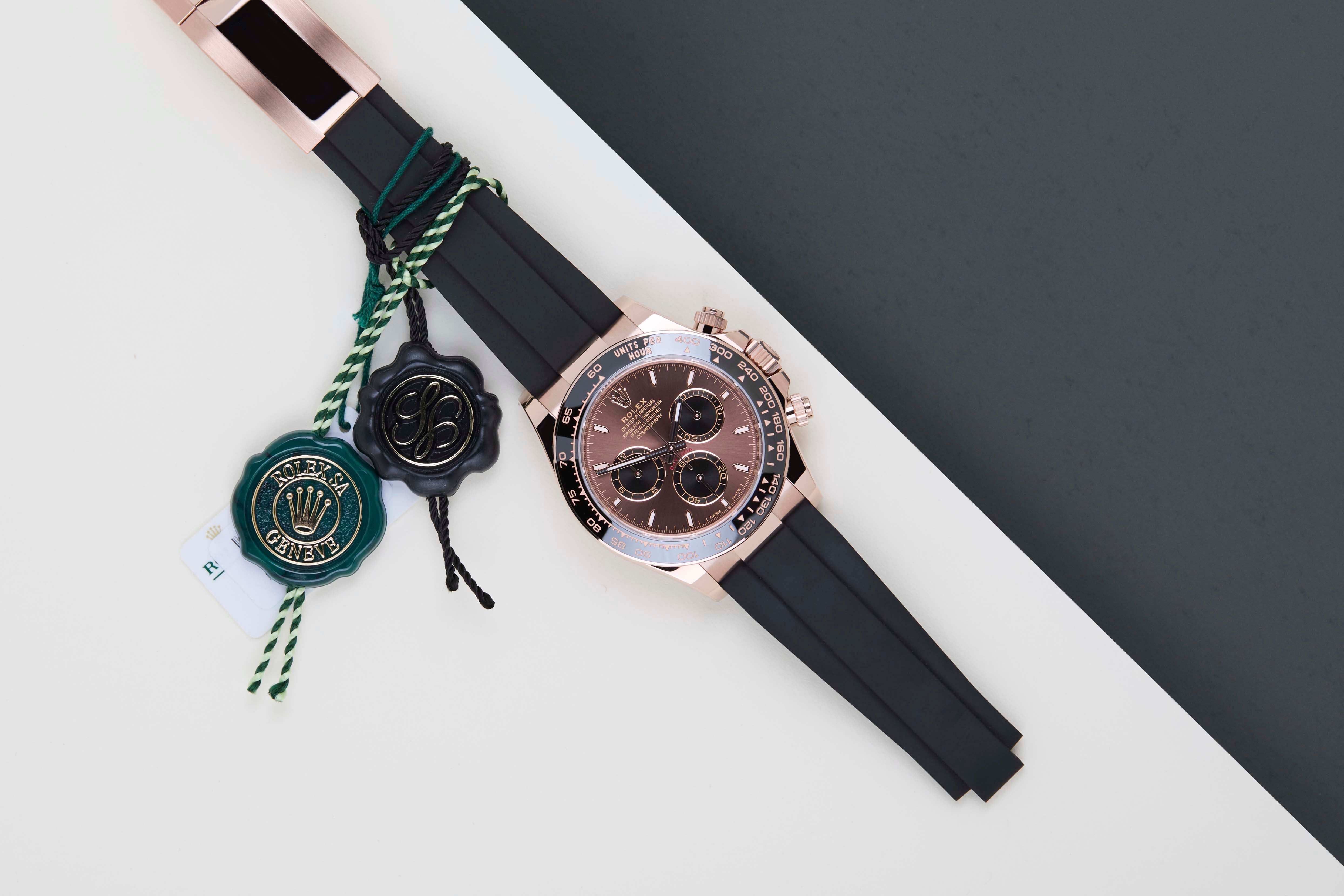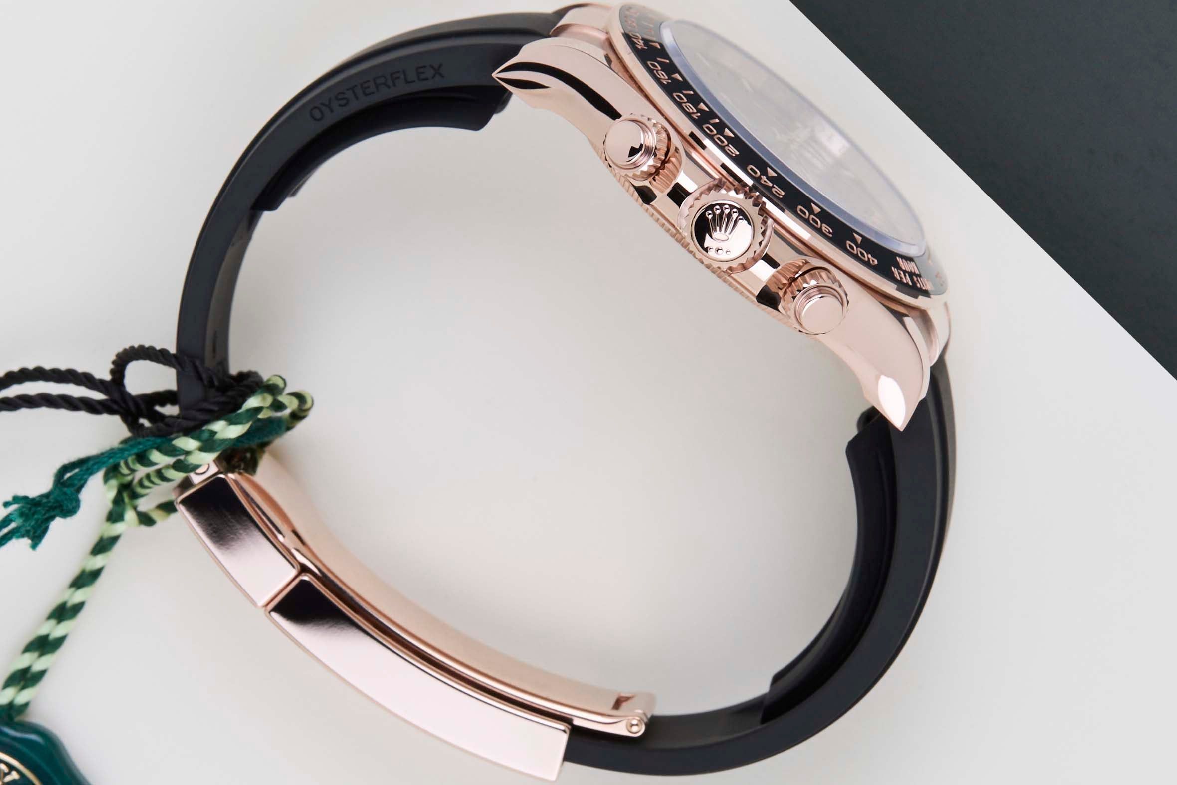 Full Set | New & Unworn | International Rolex Warranty Until December 2030 The Rolex Cosmograph Daytona is considered one of the most popular models in the world. The reasons for this vary from the watch's history in timekeeping, racing and the love it evoked amongst timepiece enthusiasts, to the huge demand for both the current and the vintage references.This highly sought-after Rolex Daytona ‘Chocolate Dial - Oysterflex’ was sold for the first time in December 2025.The reference 126519LN is especially connected to an 18k Rose Gold Daytona equipped with an Oysterflex bracelet. The Oysterflex bracelet is an in-house design which is a superplastic blade covered with a high-end rubber, resistant to environmental effects.This Rolex Daytona is in New & Unworn condition and comes with the original Rolex Warranty Card and Box. Furthermore, the watch still has International Rolex Warranty until December 2030.