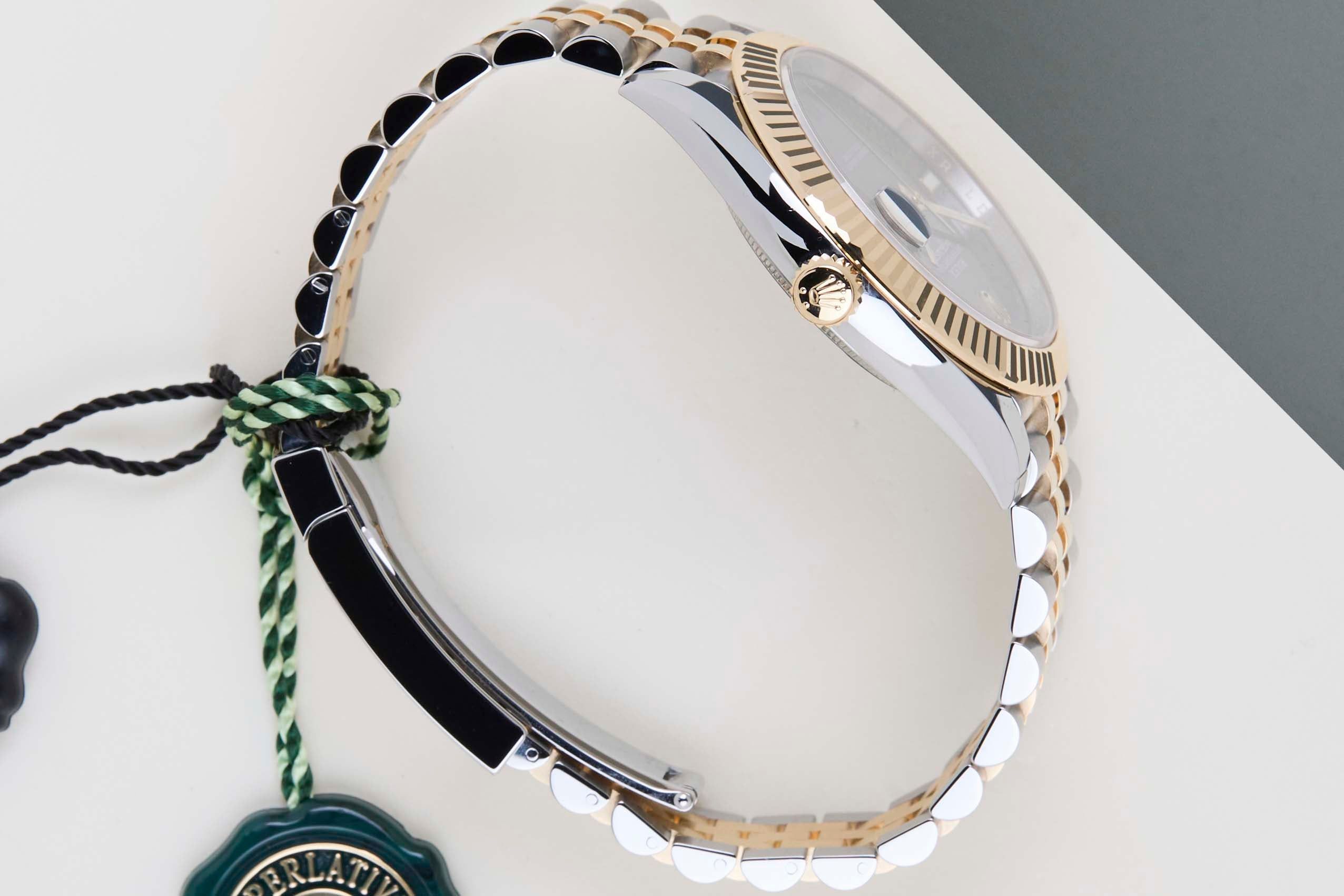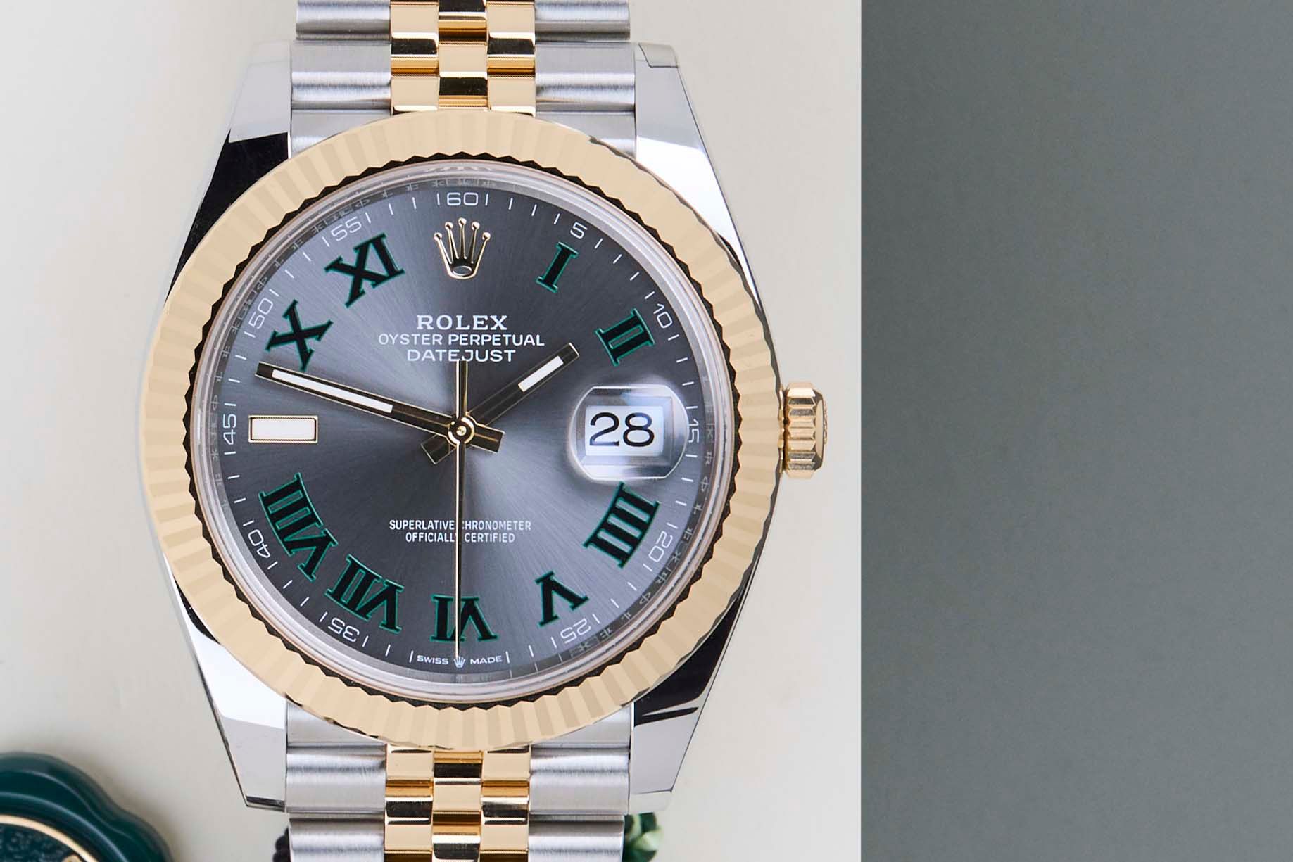 New & Unworn | Full Set | International Rolex Warranty until December 2030Rolex introduced the original Datejust in 1945 to celebrate the company's 40th anniversary. Due to the various case sizes and materials, the Datejust has been ingrained in Rolex's history and remains incredibly popular for 75 years.This Rolex Datejust 41 'Wimbledon Dial - Jubilee' was sold for the first time in December 2025.This Datejust is made of a combination of 18k Yellow Gold and stainless steel and is fitted with a Jubilee bracelet, which is equipped with the Easylink. This extension, allows the wearer to either extend or shorten the bracelet by 5 millimeters, improving the wearability and usability of the watch.This Rolex Datejust 41 is in New & Unworn Condition and comes with the original Rolex Warranty Card and box. Furthermore, the watch still has International Rolex Warranty until December 2030.