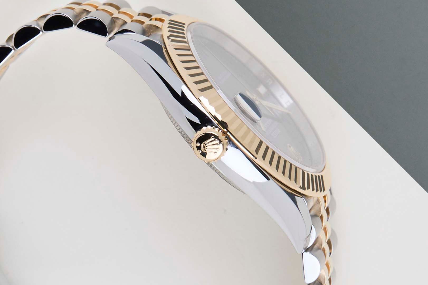 Diese Rolex Datejust 41 befindet sich in neuem und ungetragenem Zustand und wird mit der originalen Rolex-Garantiekarte und der Box geliefert. Darüber hinaus hat die Uhr noch eine internationale Rolex-Garantie bis Dezember 2030.