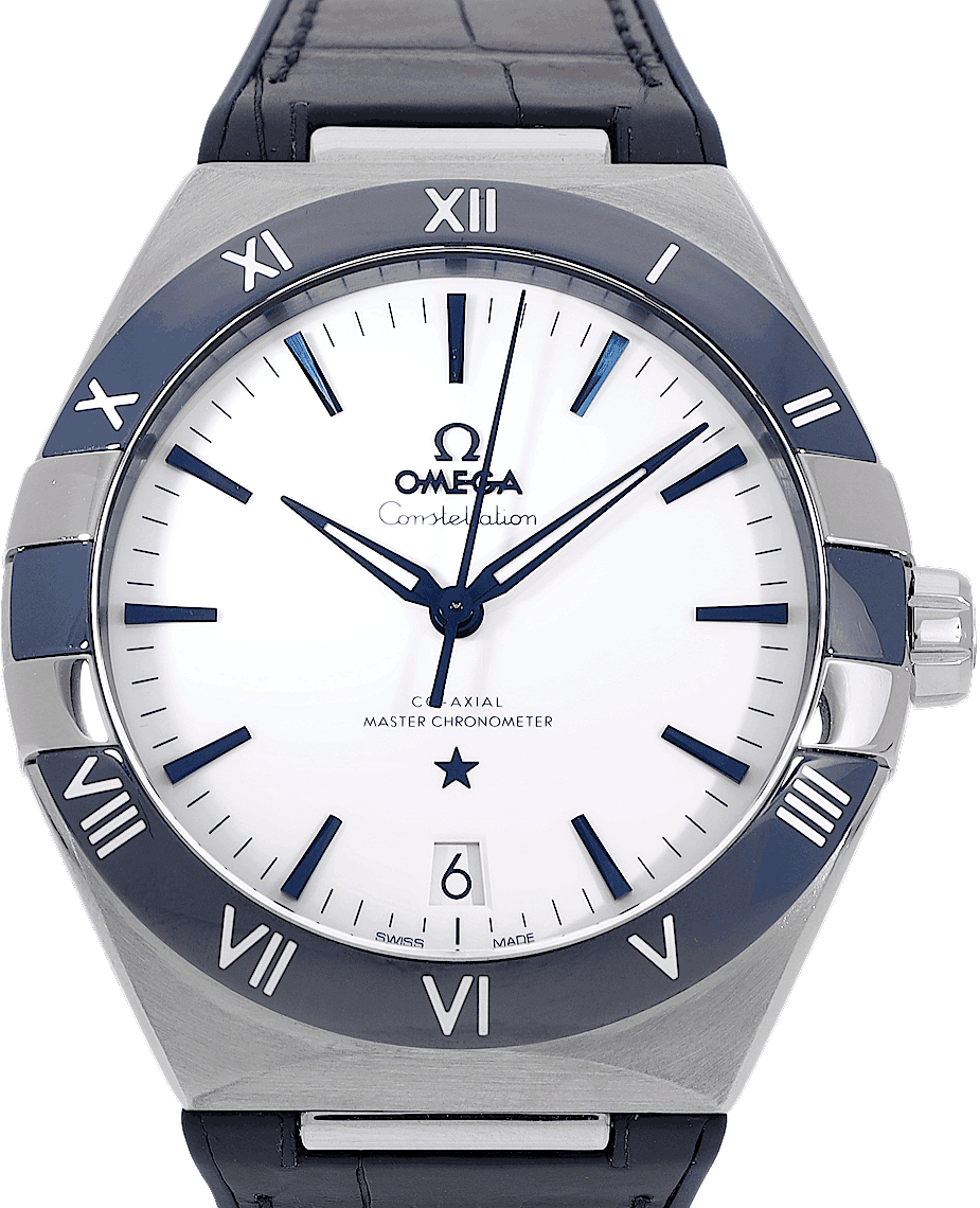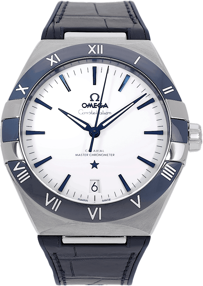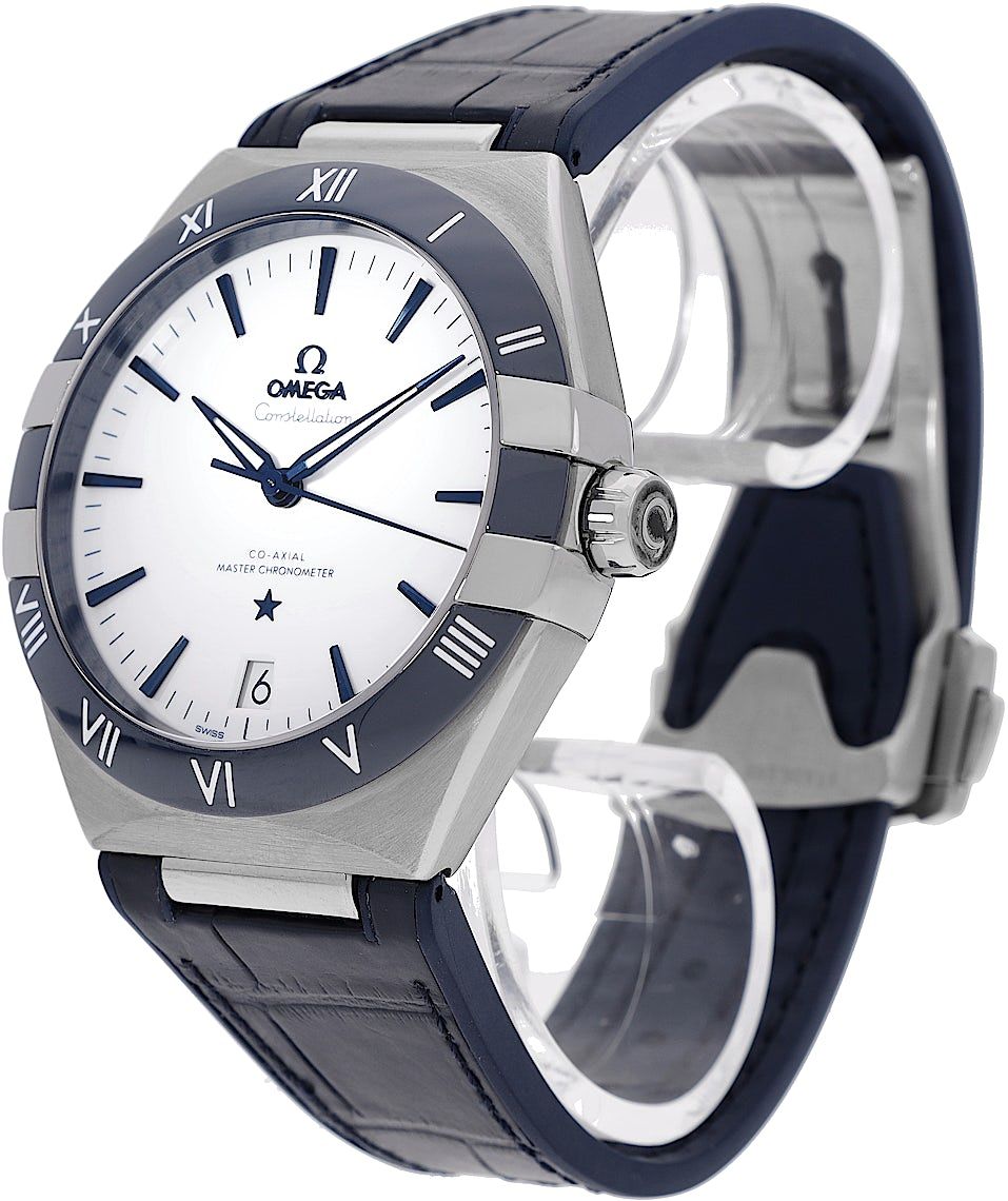 Omega Constellation CO‑AXIAL MASTER CHRONOMETER 41 MM, Reference: 131.33.41.21.04.001, Gender: Male, Size: 41mm, Dial color: White, Strap material: Rubber Alligator Leather, Movement: Automatic, Year: 2022, Condition: Previously worn with some signs of usage. The movement is flawless and the case has been cleaned. watch tested to ensure full functionality. An inspection by our certified watchmakers guarantees its authenticity., Documents: Original papers, CHRONEXT Certificate