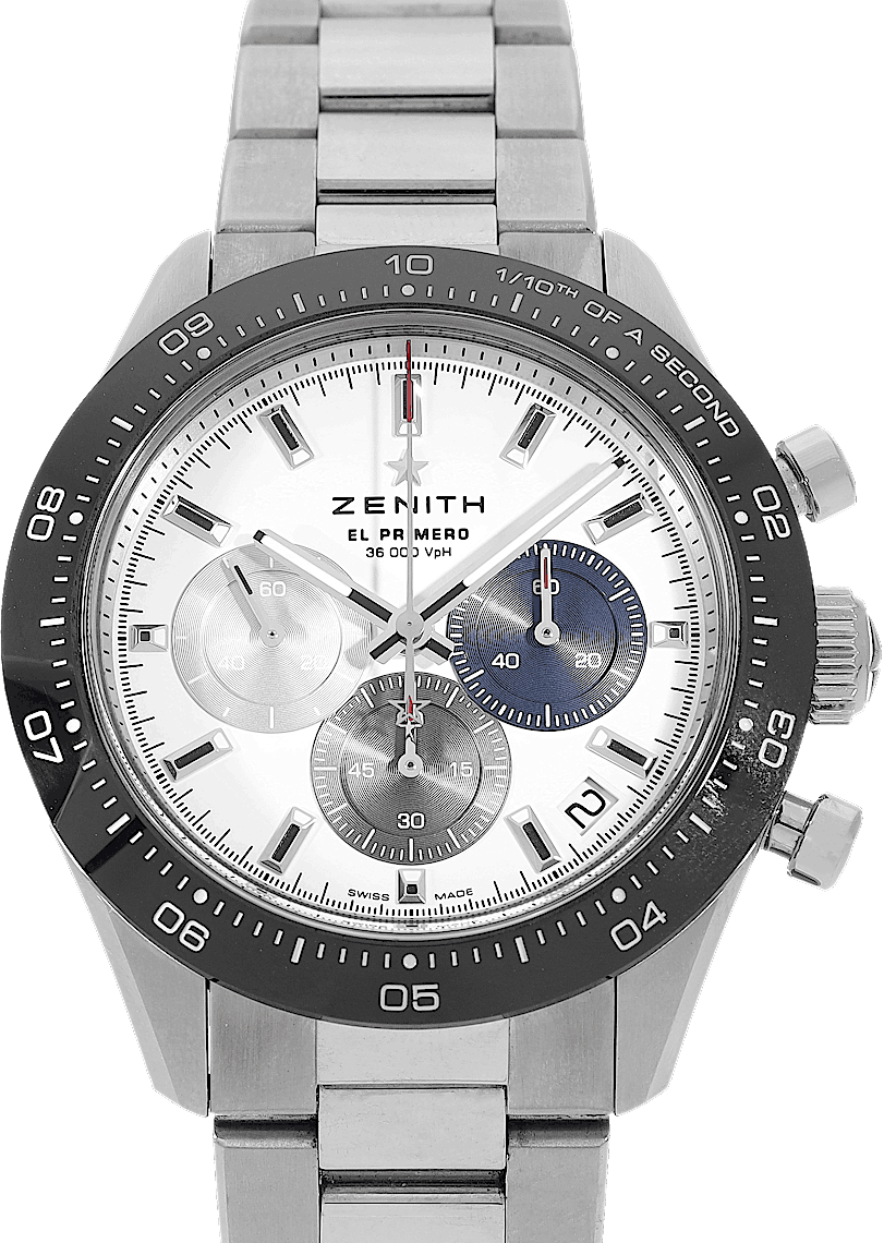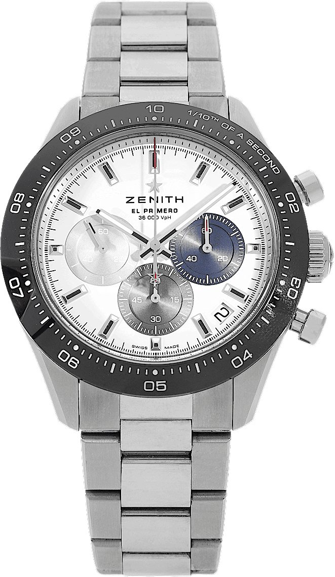 Zenith Chronomaster Sport, Reference: 03.3100.3600/69.M3100, Gender: Male, Size: 41mm, Dial color: White, Strap material: Stainless Steel, Movement: Automatic, Condition: Previously worn with some signs of usage. The movement is flawless and the case has been cleaned. watch tested to ensure full functionality. An inspection by our certified watchmakers guarantees its authenticity., Documents: Original papers, CHRONEXT Certificate