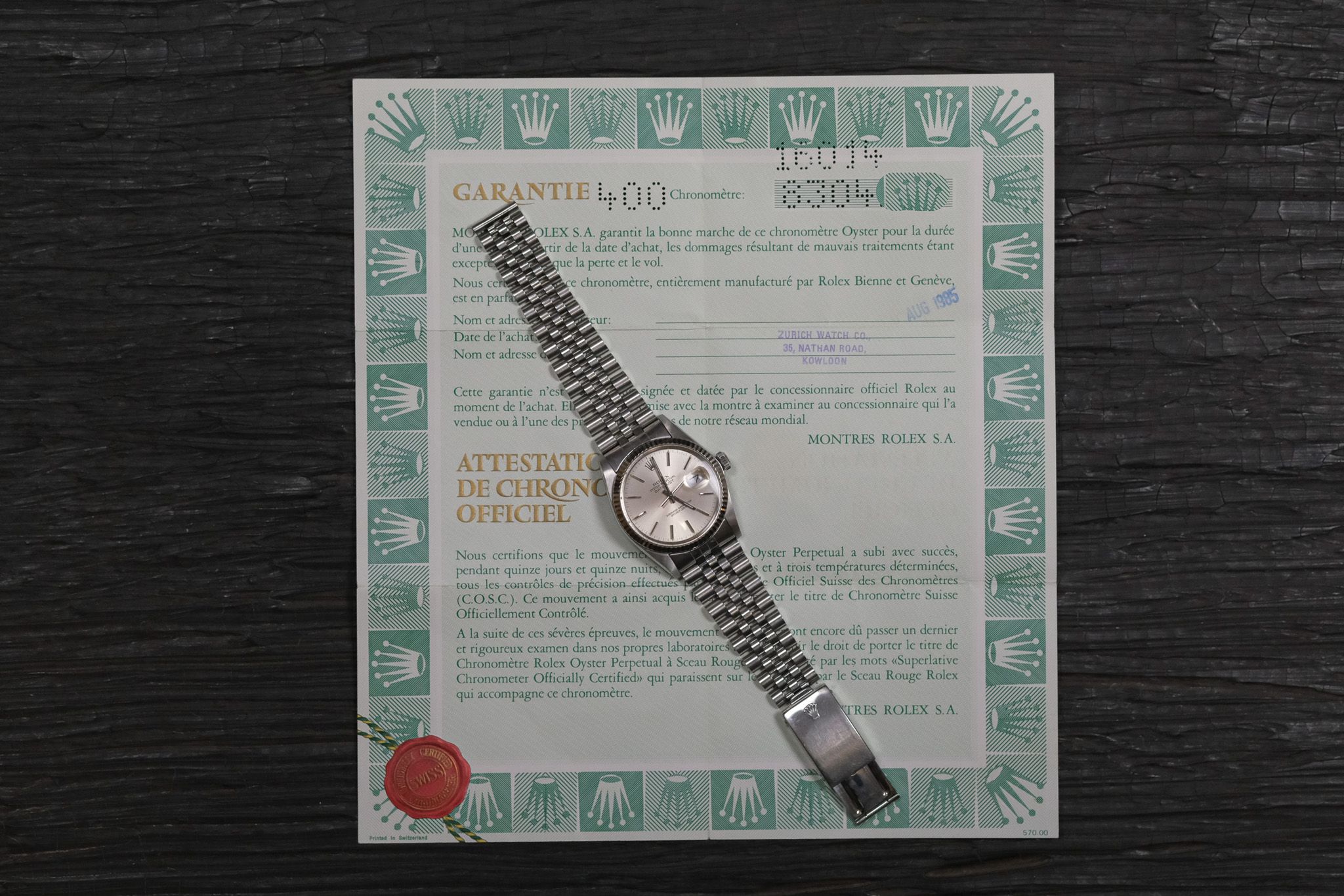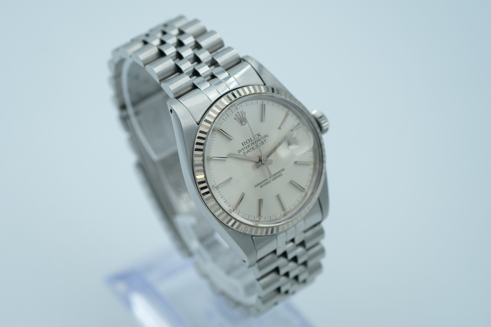This Datejust with reference number 16014 has a beautiful silver tritium dial with a slight vanilla tone.The case shows slight signs of wear on the sides and lugs, but no deep scratches or dents. The case has been carefully refurbished in the past, if at all, which is why the phases are still clearly visible and the lugs are thick and substantial.