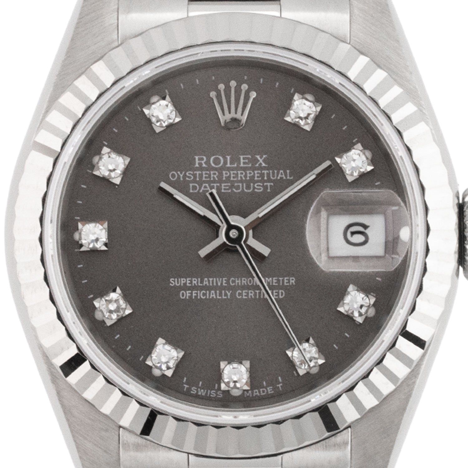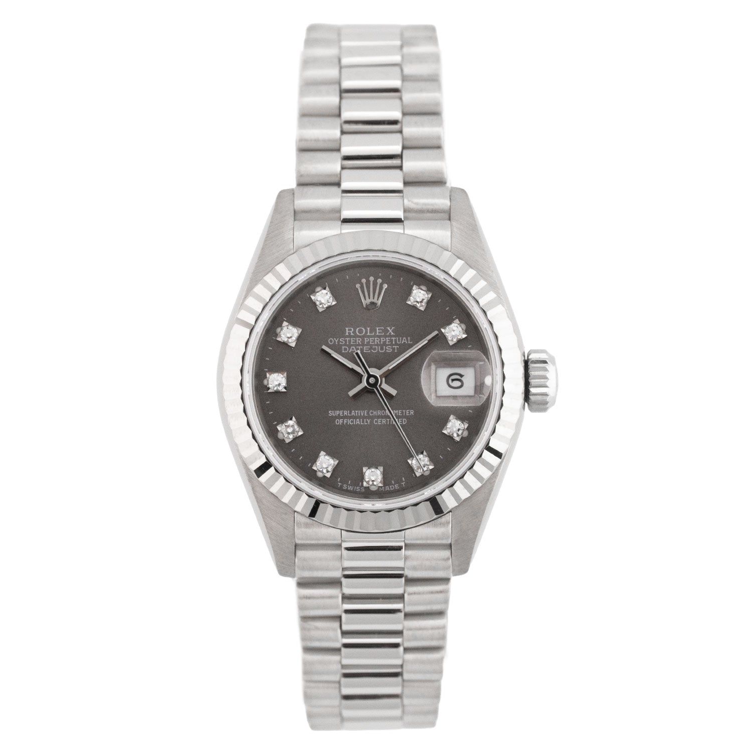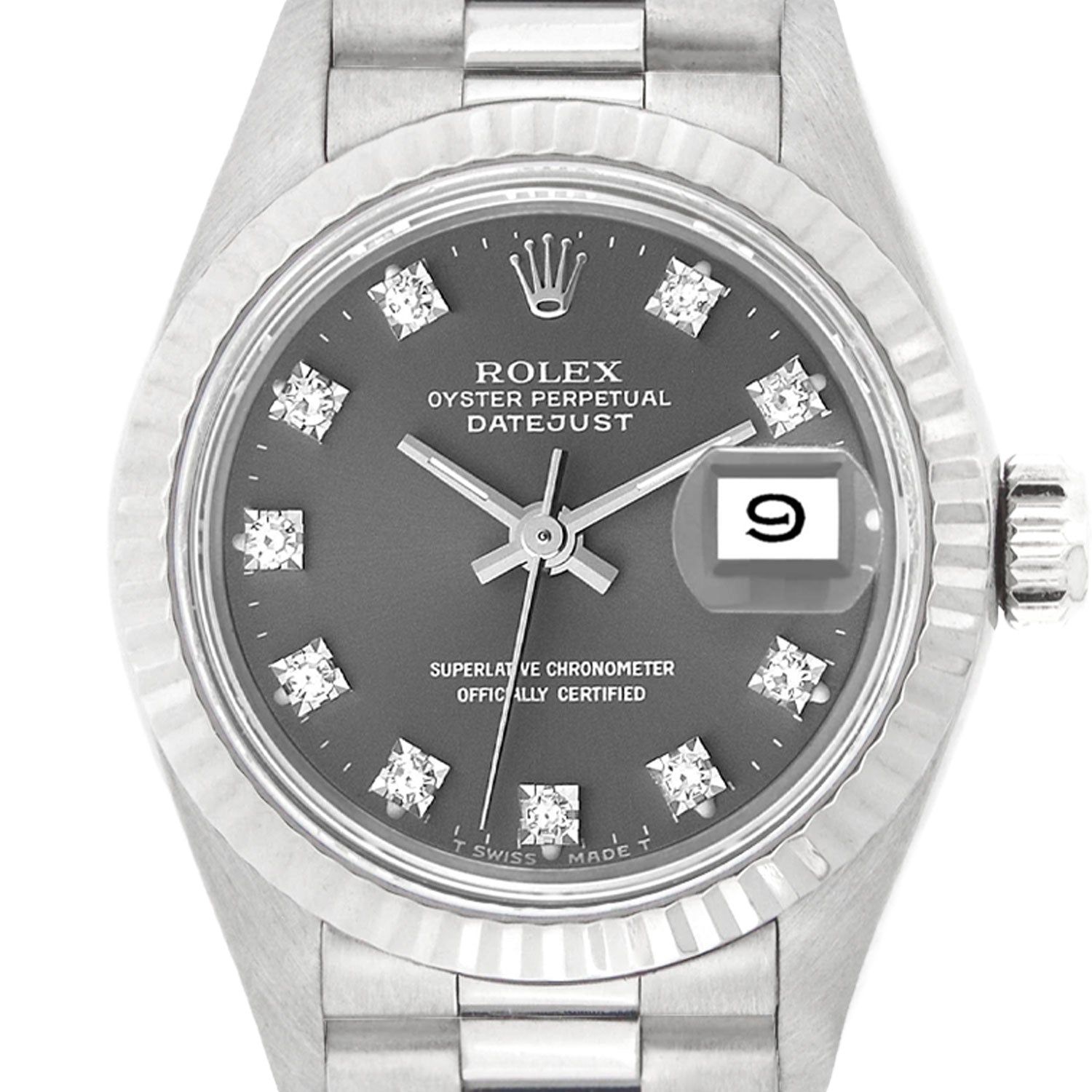 Lady Datejust 26mm White Gold Factory Grey Diamond Dial 1988 - 69179