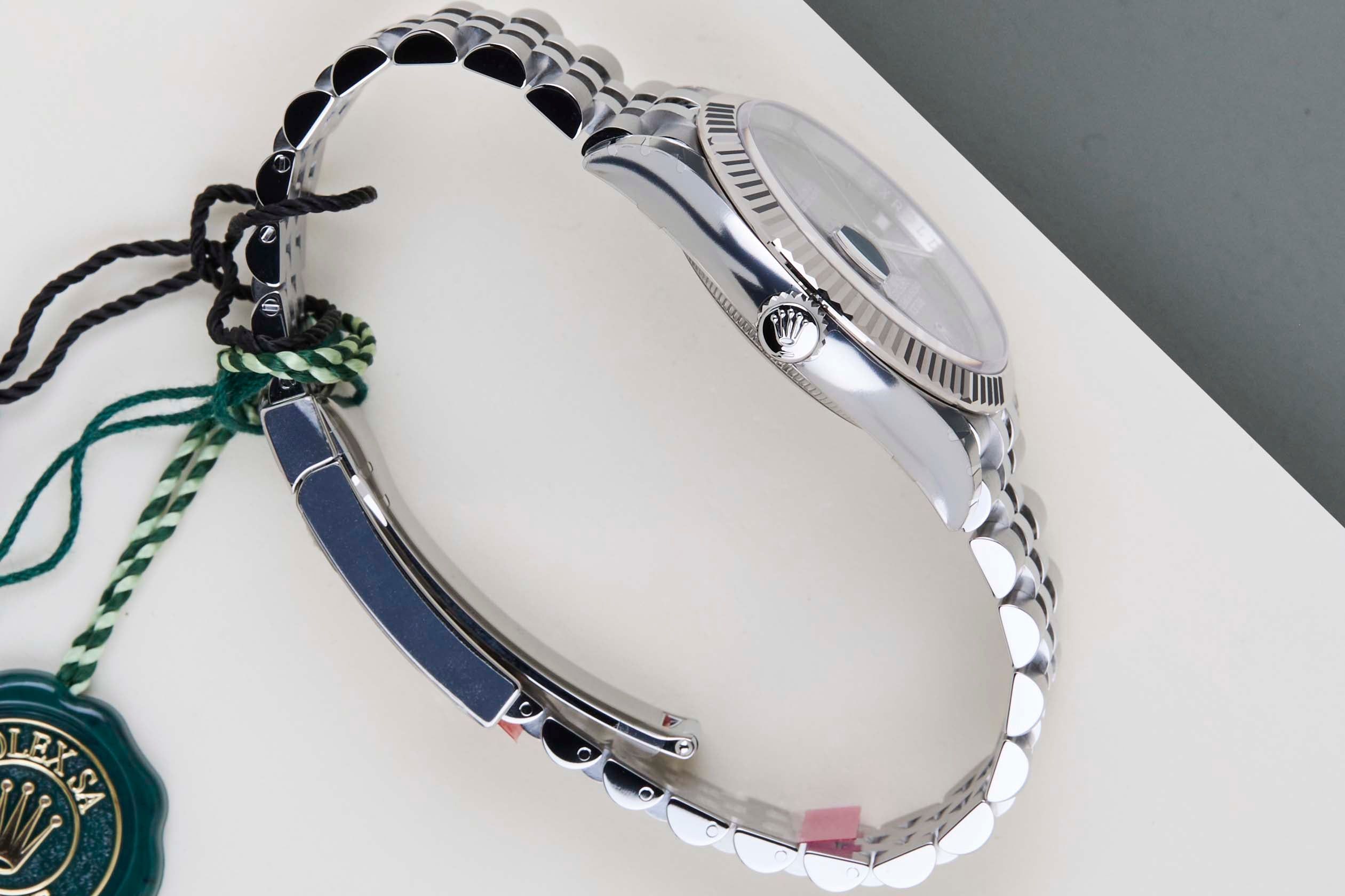 New & Unworn (Full Stickers) | Full Set | International Rolex Warranty Until November 2030 | Including Rolex White TagRolex introduced the original Datejust in 1945 to celebrate the company's 40th anniversary. Due to the various case sizes and materials, the Datejust has been ingrained in Rolex's history and remains incredibly popular for 75 years.This Rolex Datejust 36 'Wimbledon Dial - Jubilee' was sold for the first time in November 2025.This Datejust 36 is made of a combination of 18k White Gold and stainless steel and is fitted with a Jubilee bracelet which is equipped with the Easylink. This extension, allows the wearer to either extend or shorten the bracelet by 5 millimetres, improving the wearability and usability of the watch.This Rolex Datejust 36 is in New & Unworn Condition and comes with the original Rolex Warranty Card and box. Furthermore, the watch still has International Rolex Warranty until November 2030.