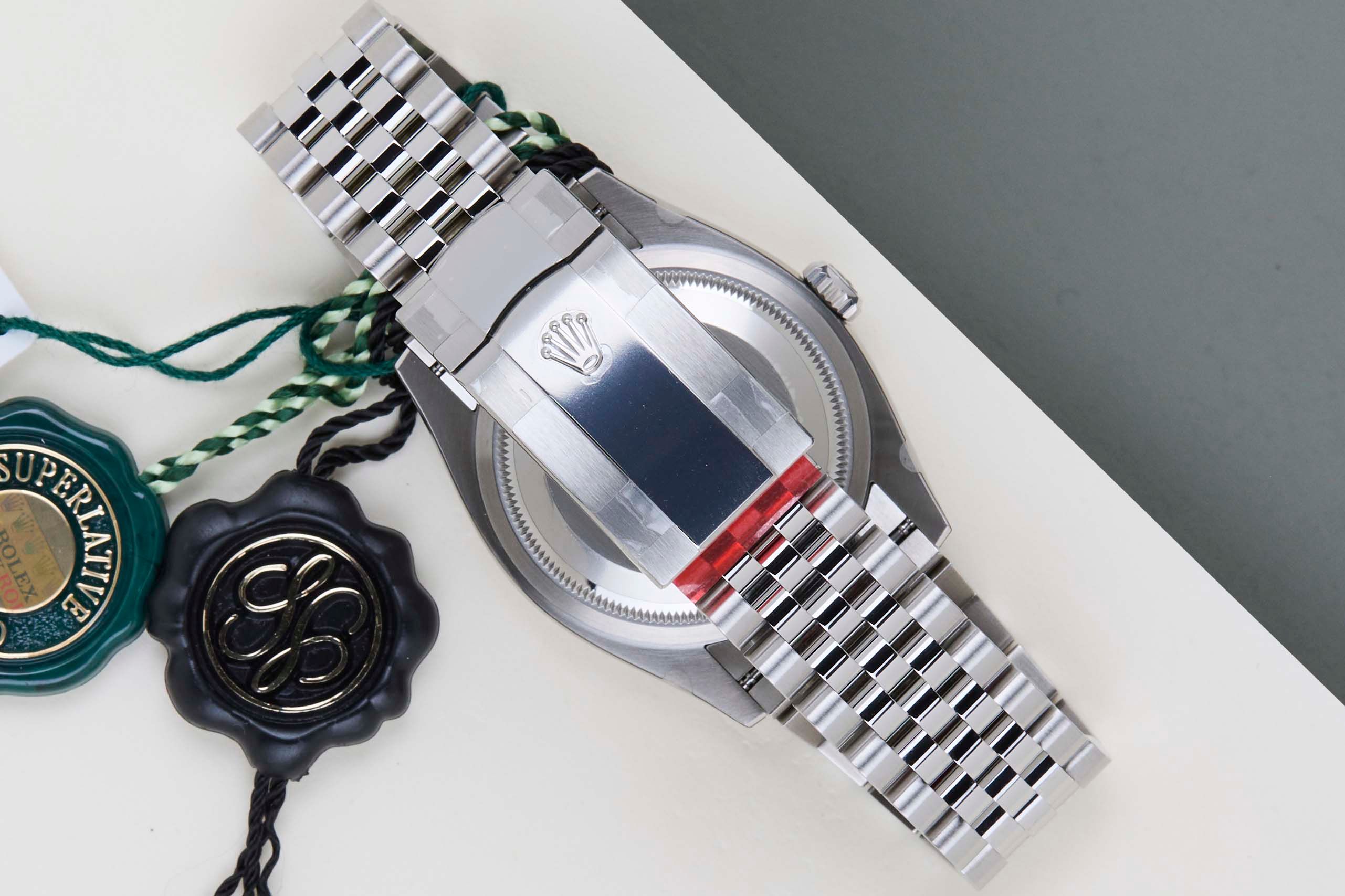 Diese Rolex Datejust 36 befindet sich in neuem und ungetragenem Zustand und wird mit der originalen Rolex Garantiekarte und der Box geliefert. Darüber hinaus hat die Uhr noch eine internationale Rolex Garantie bis November 2030.