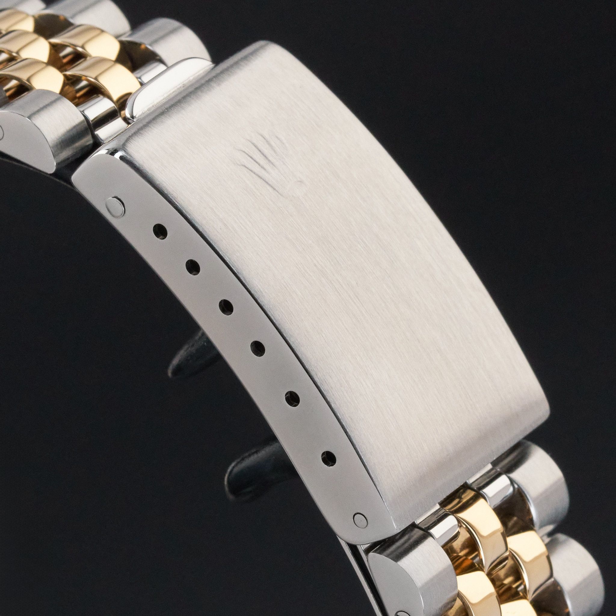 Diese Rolex Datejust 16233 verfügt über eine Champagner-Jubilé-Großdiamanten-Wijzerplaat und ist aus 18K Gelbgold und Edelstahl gefertigt, mit einem Produktionsjahr von 1993.