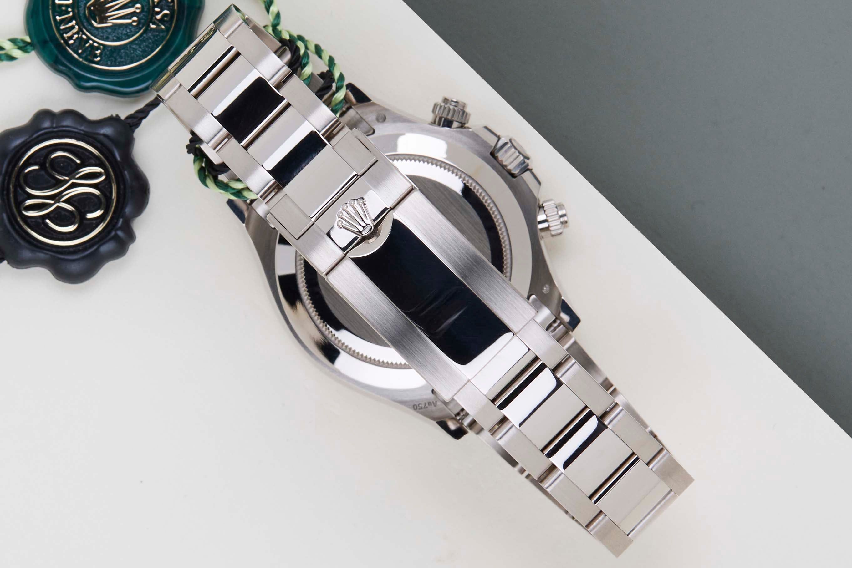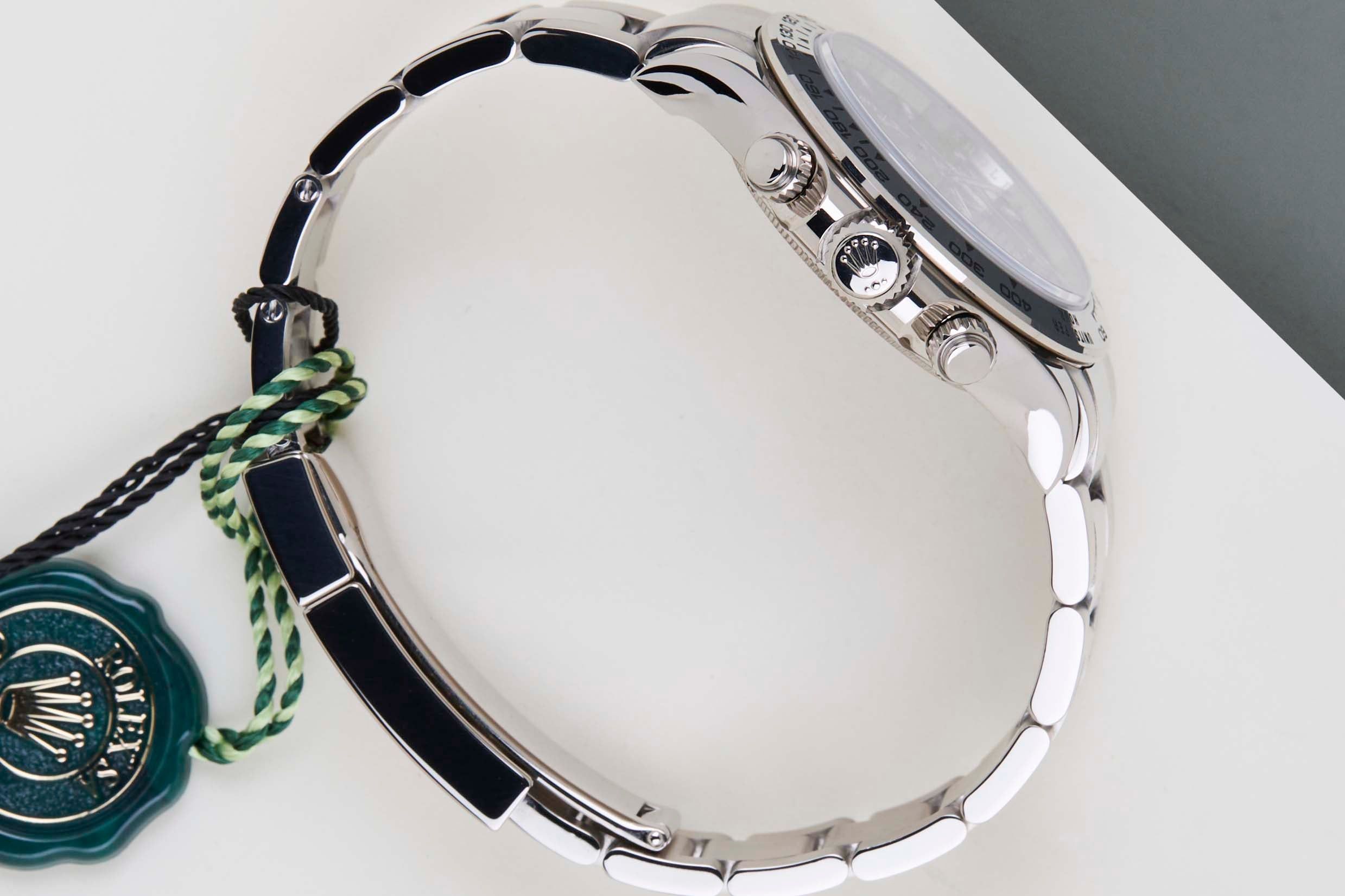 Diese außergewöhnliche Rolex Daytona ist in neuwertigem Zustand und kommt mit der originalen Rolex Garantiekarte und Box. Darüber hinaus hat die Uhr noch eine internationale Rolex Garantie bis August 2027.