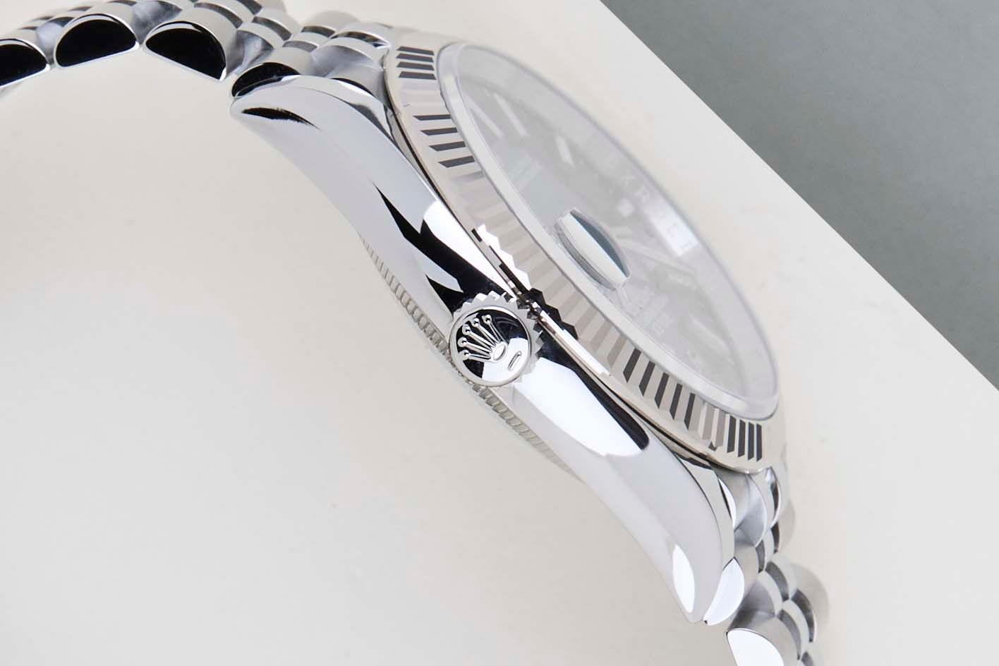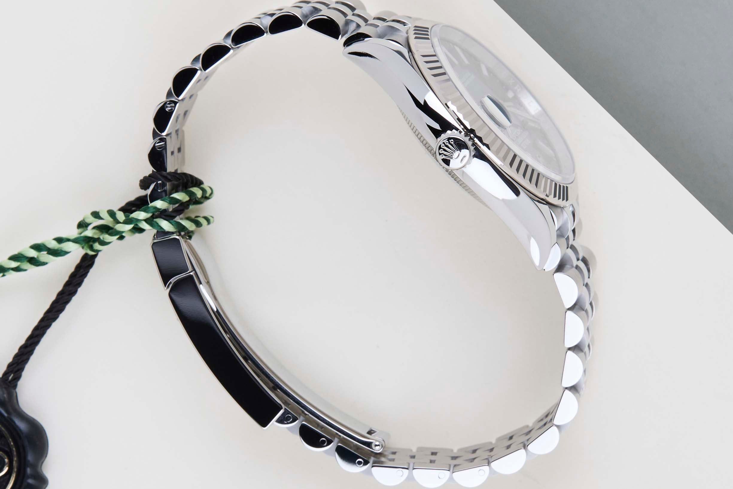 Diese Rolex Datejust 36 ist in neuem und ungetragenem Zustand und wird mit der originalen Rolex-Garantiekarte und der Box geliefert. Darüber hinaus hat die Uhr noch eine internationale Rolex-Garantie bis Dezember 2030.