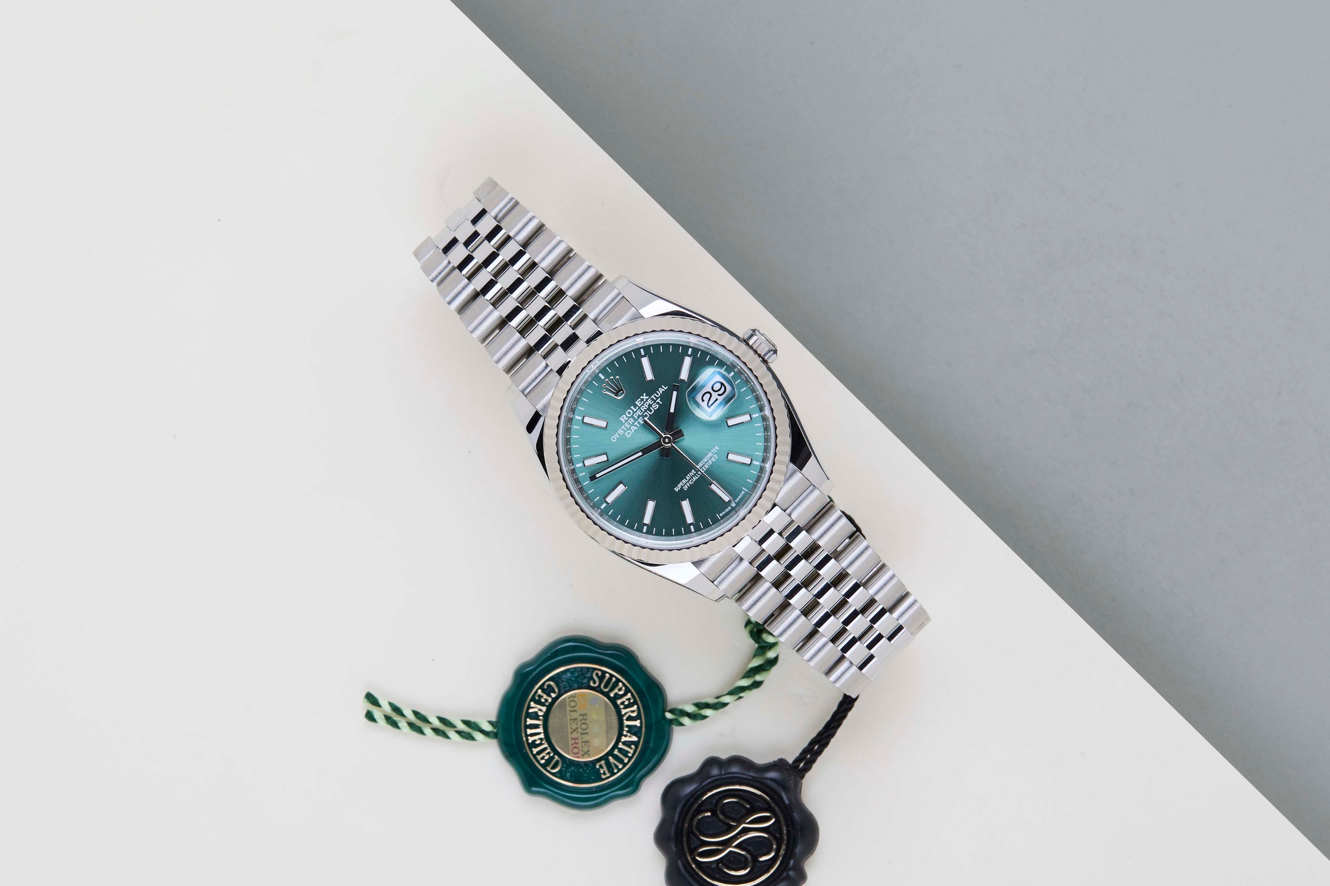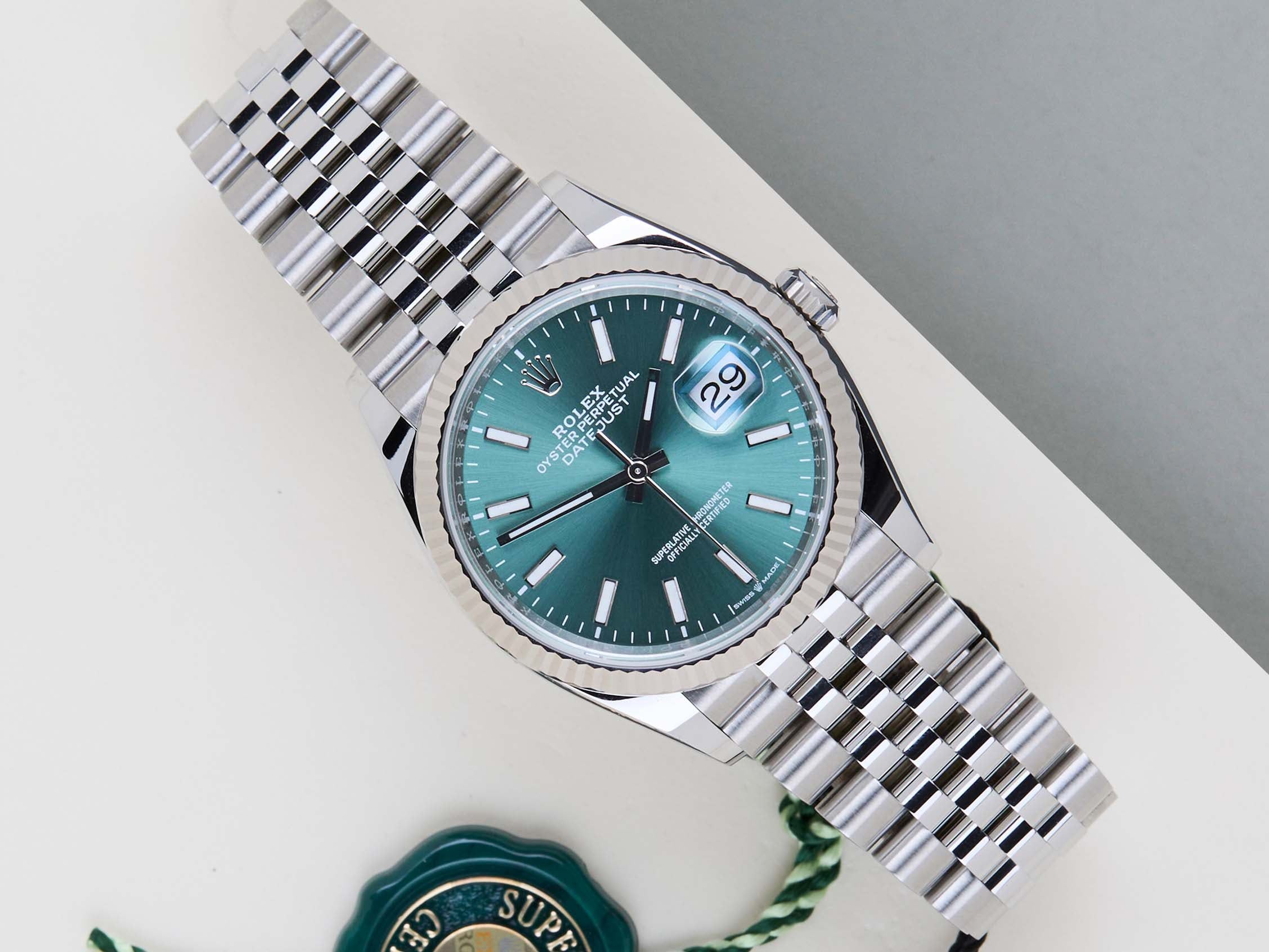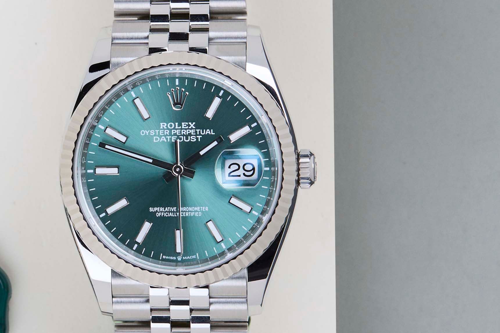 New & Unworn | Full Set | International Rolex warranty until December 2030Rolex introduced the original Datejust in 1945 to celebrate the company's 40th anniversary. Due to the various case sizes and materials, the Datejust has been ingrained in Rolex's history and remains incredibly popular for 75 years.This Rolex Datejust 36 'Mint Green Dial - Jubilee' was sold for the first time in December 2025.This Datejust 36 is made of a combination of 18k White Gold and stainless steel and is fitted with a Jubilee bracelet, which is equipped with the Easylink. This extension, allows the wearer to either extend or shorten the bracelet by 5 millimeters, improving the wearability and usability of the watch.This Rolex Datejust 36 is in New & Unworn condition and comes with the original Rolex Warranty Card and box. Furthermore, the watch still has International Rolex Warranty until December 2030.