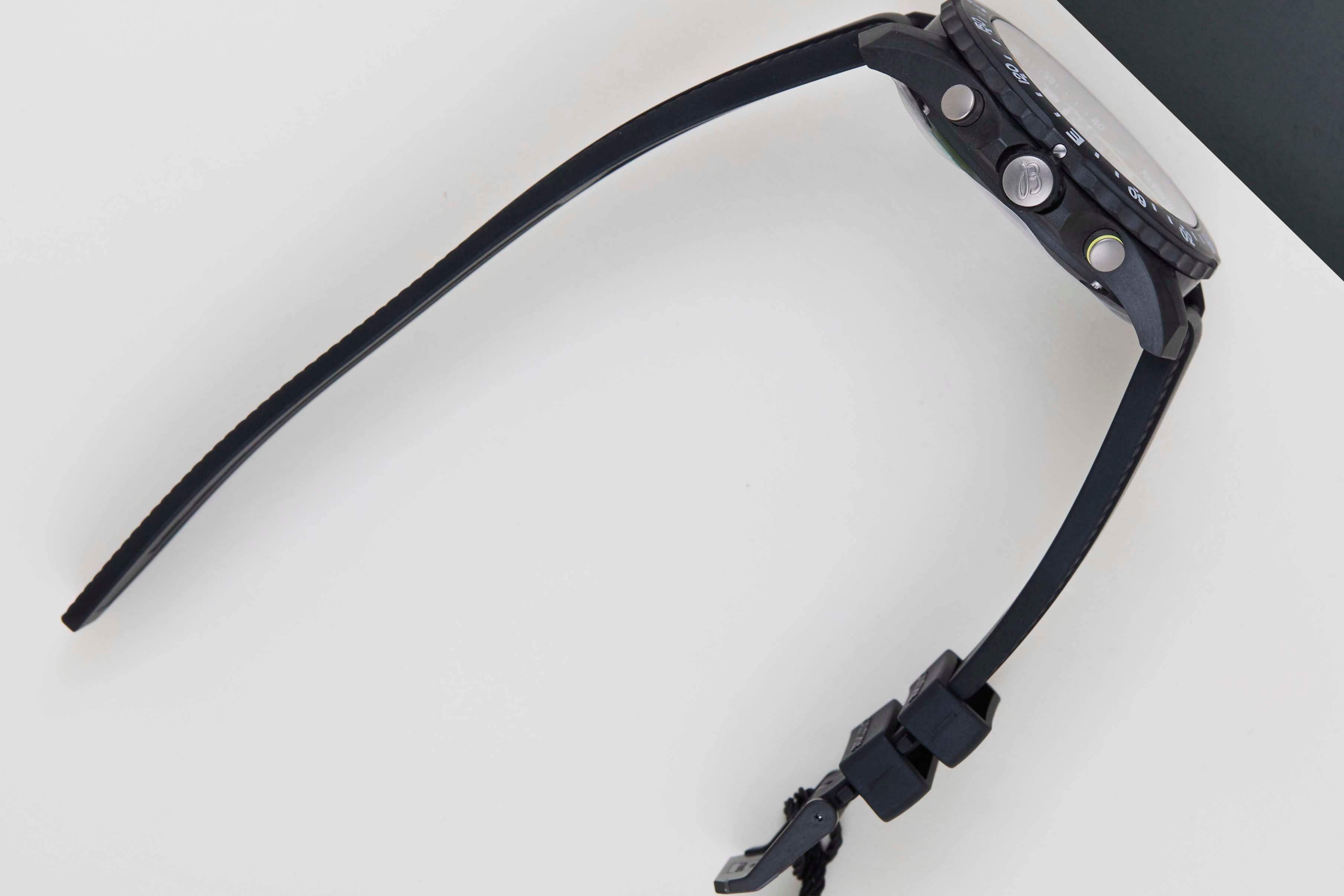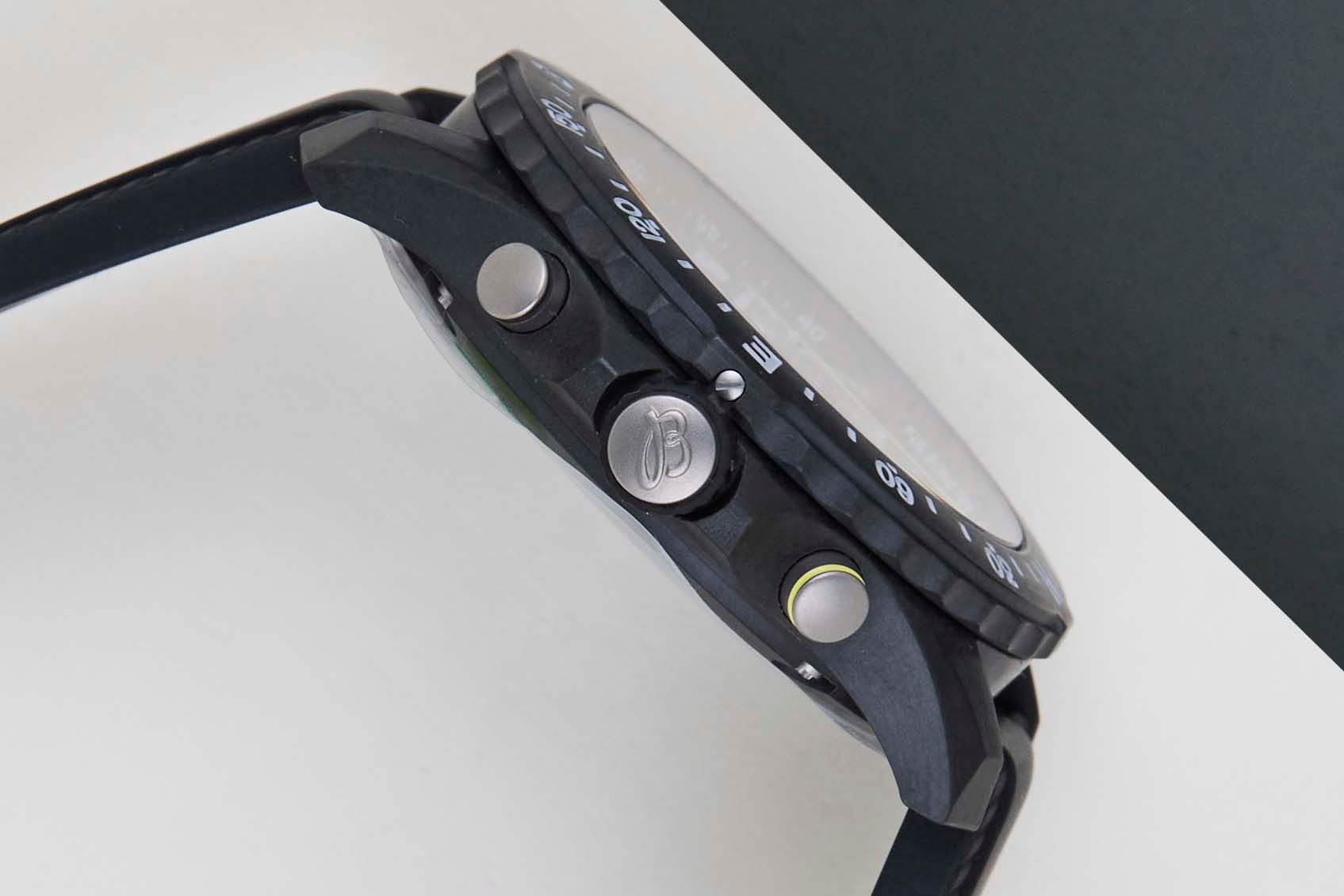 Das neue Breitling Endurance PRO Modell von Breitling ist eine leichte Uhr mit einem Gewicht von etwa 64,8 Gramm. Das Gehäuse der Uhr besteht aus Breitlight, einem Material, das nicht nur äußerst kratzfest, sondern auch extrem leicht, antimagnetisch und hypoallergen ist. Das Gehäuse hat einen Durchmesser von 44 mm und eine Dicke von 12,5 mm und ist bis zu 10 Bar wasserdicht. Diese Breitling Endurance Pro 'Black' ist neu und ungetragen und kommt mit dem originalen Breitling Garantiebuch und der Box. Darüber hinaus hat die Uhr noch bis November 2027 Breitling Garantie.
