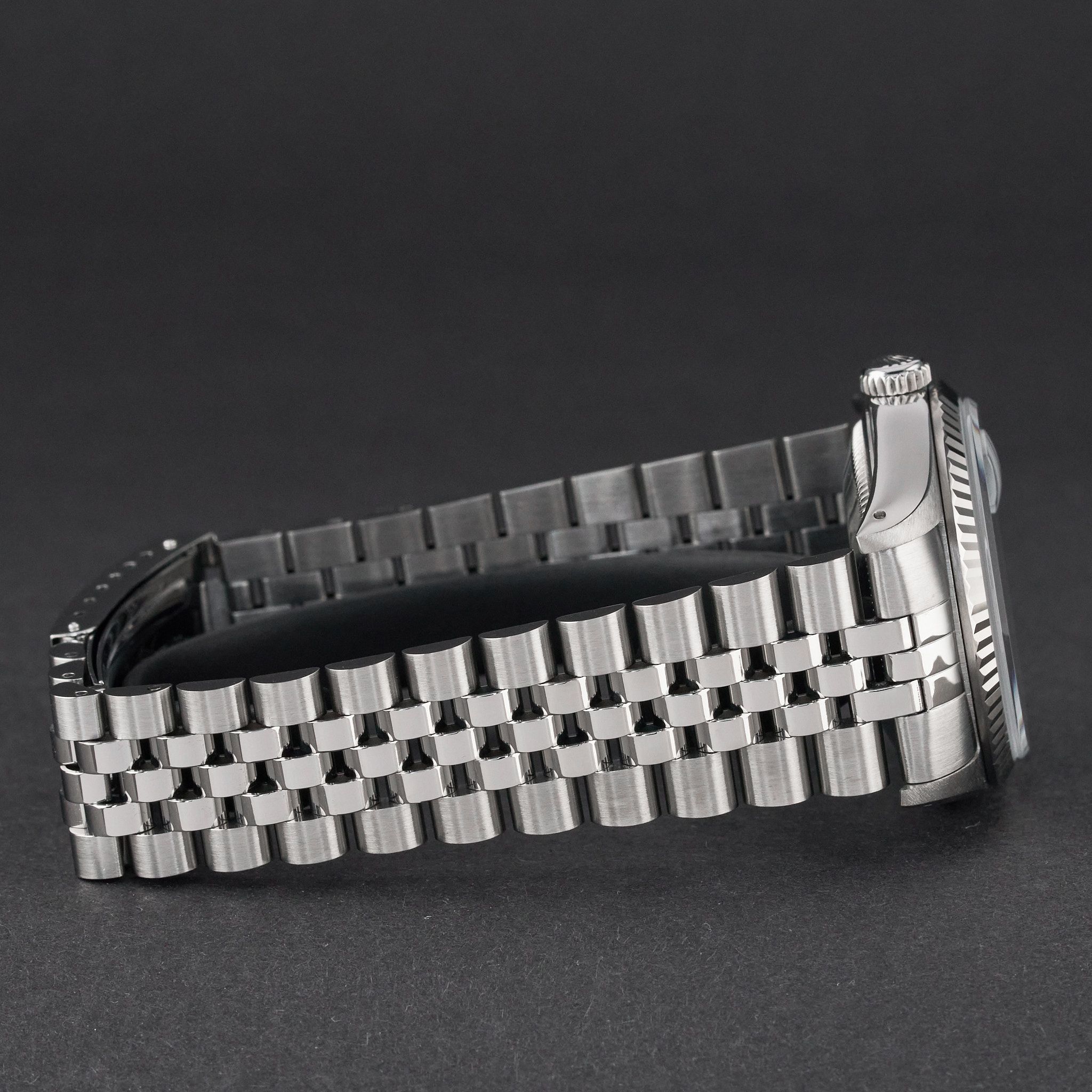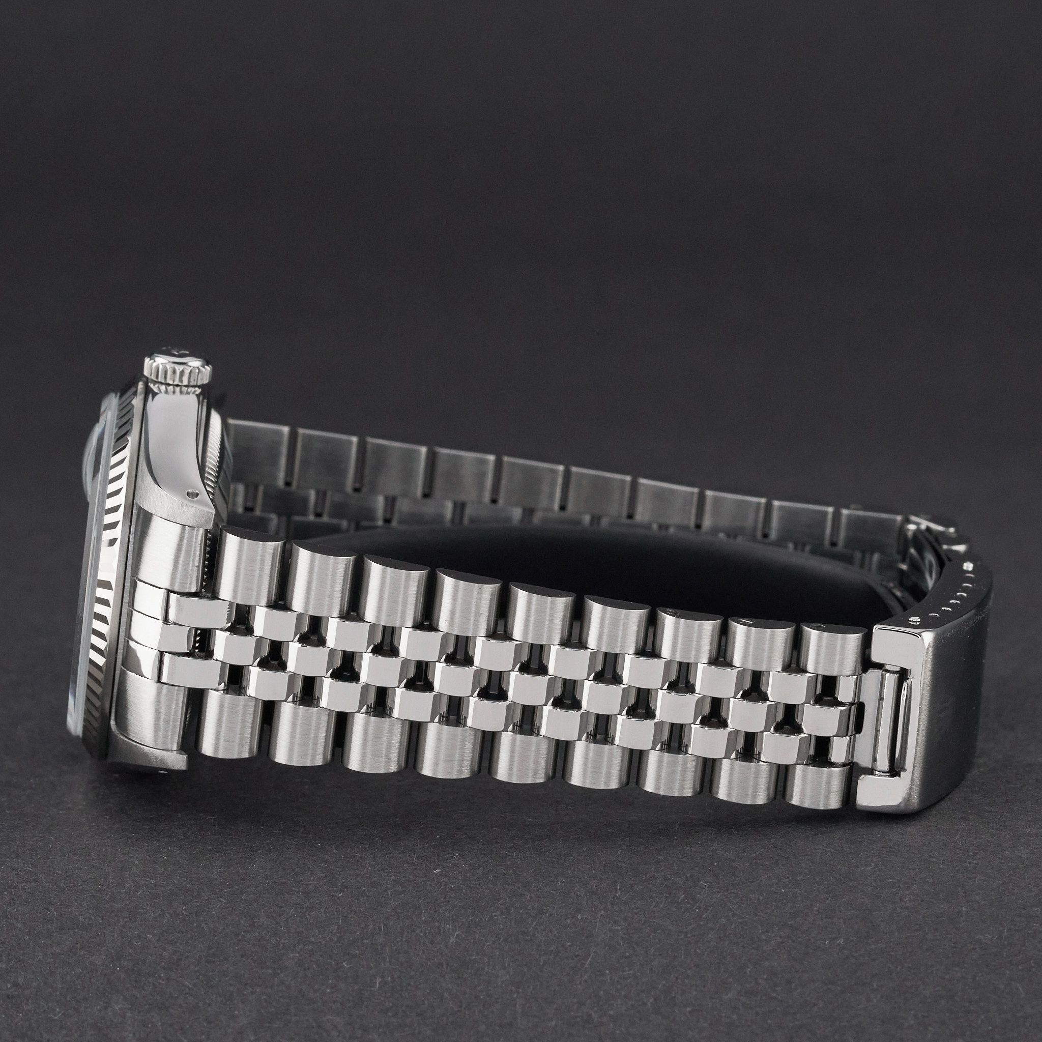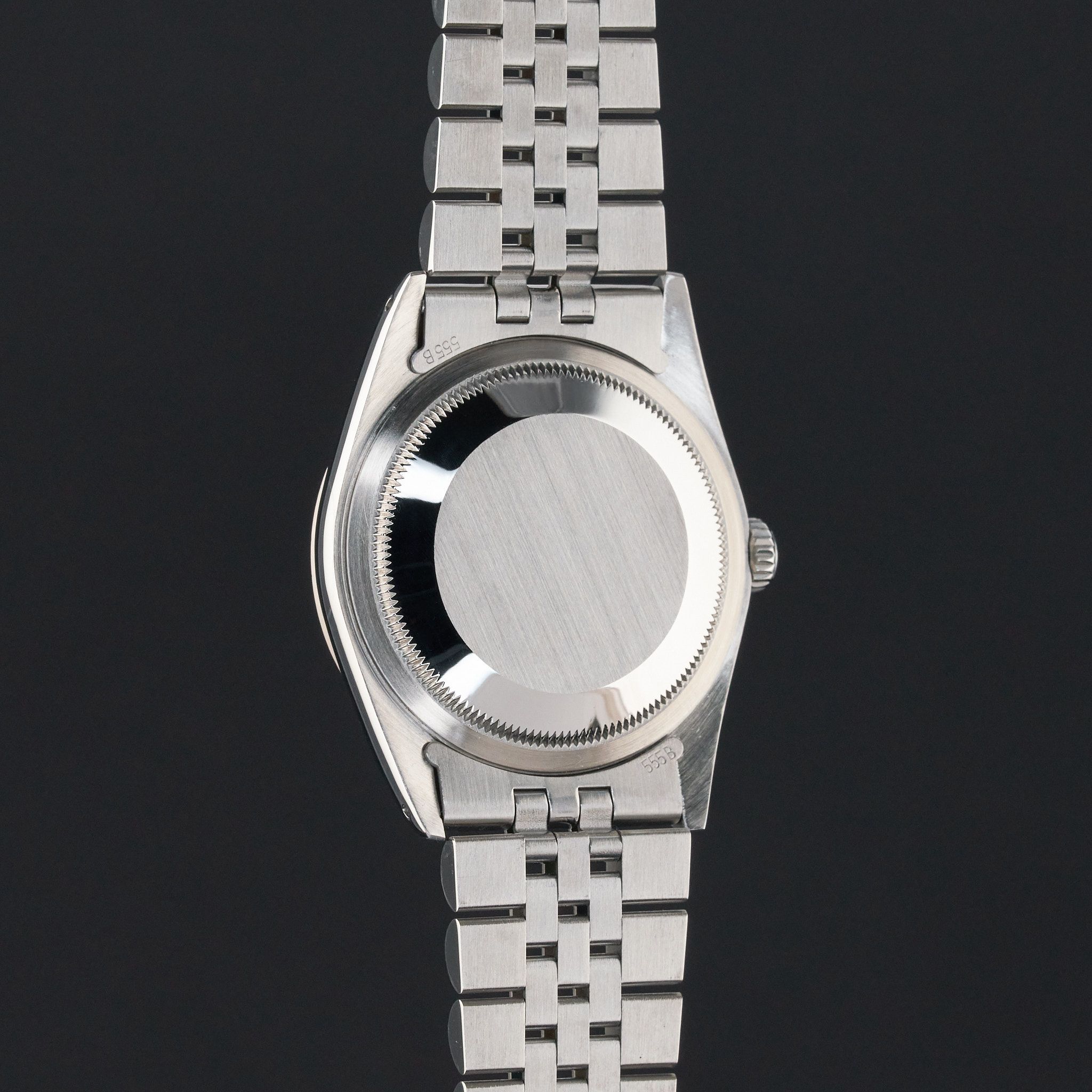 Diese Rolex Datejust 16234 verfügt über eine schwarze Zifferblatt und ist aus Edelstahl gefertigt, mit einem Produktionsjahr von 1991.