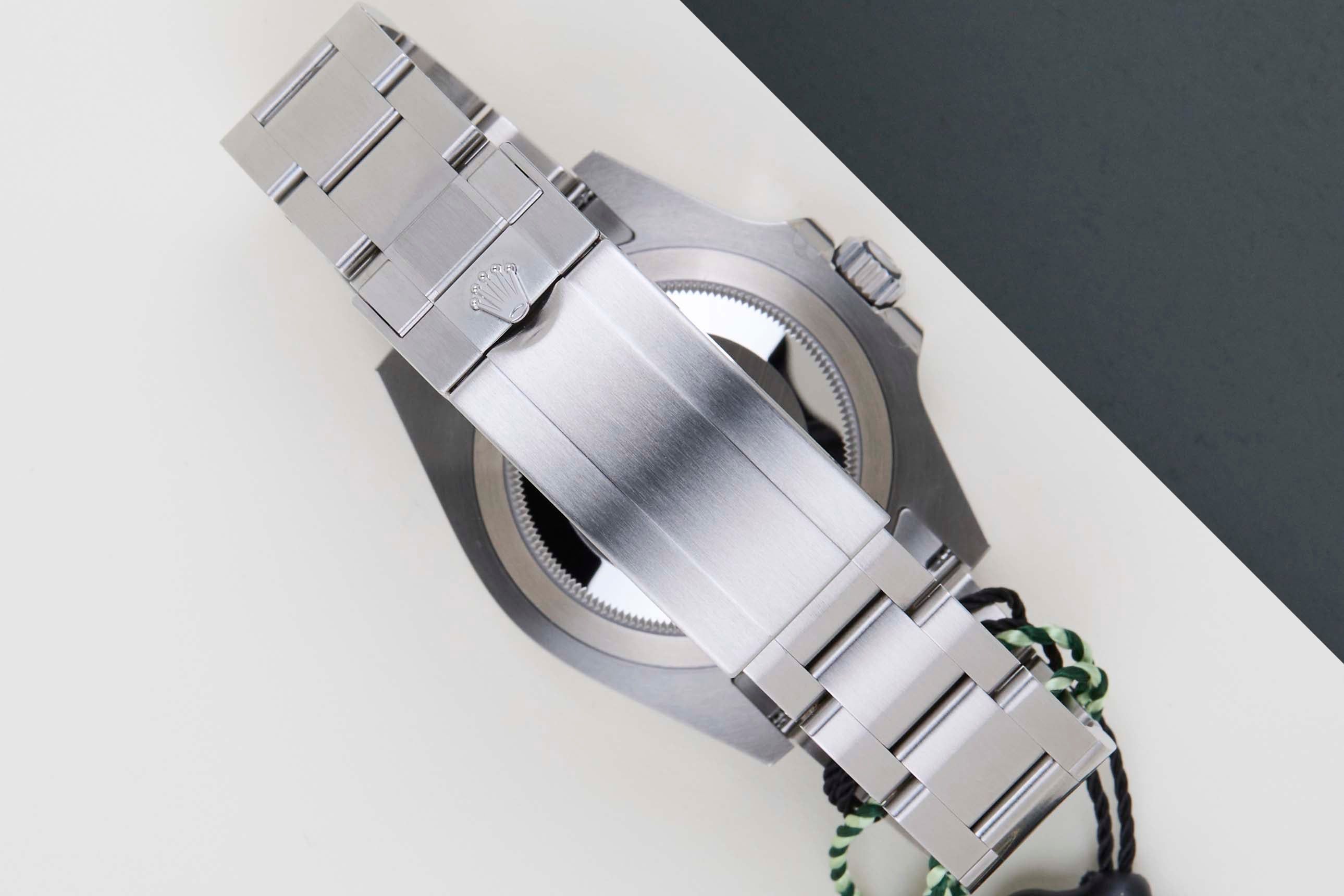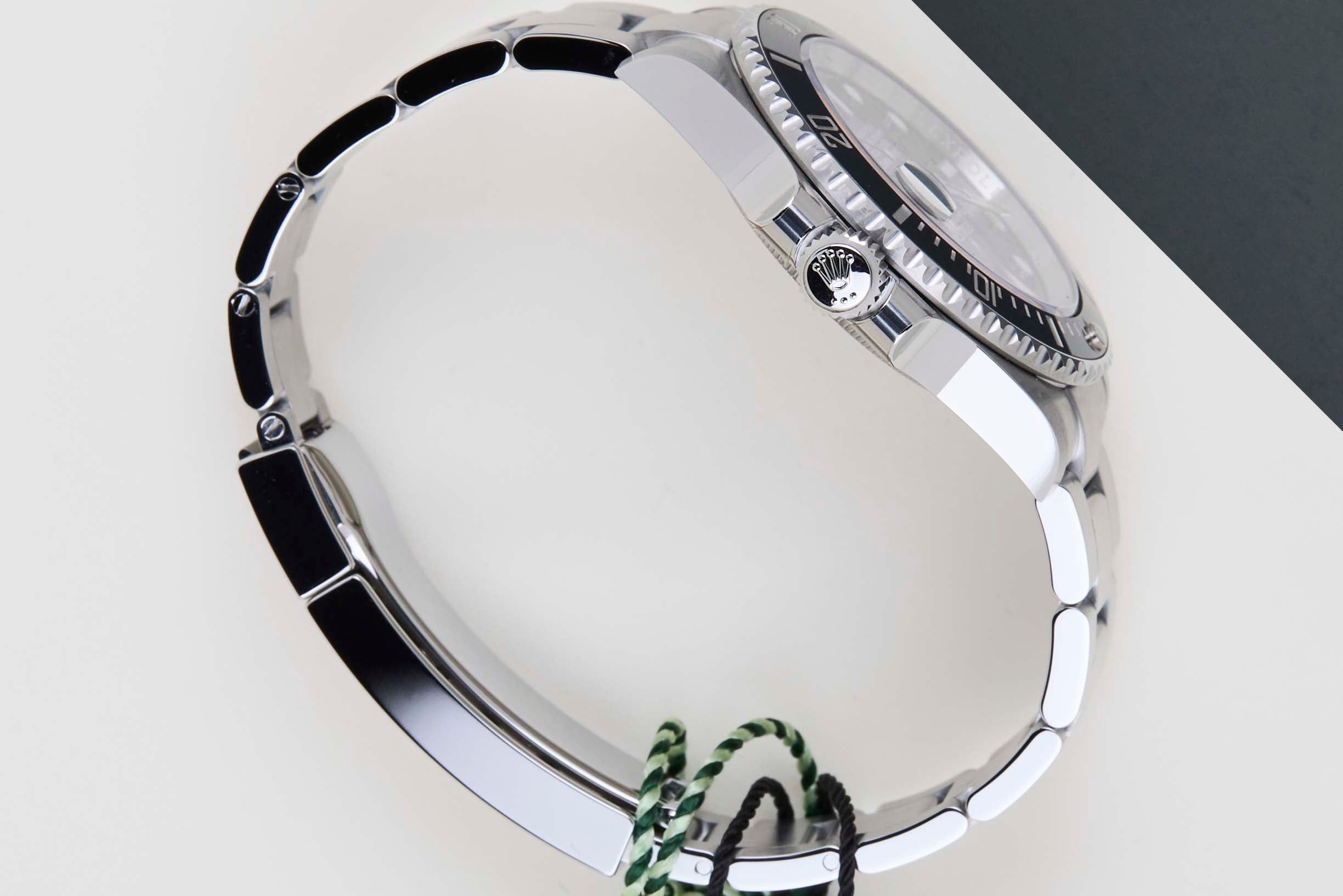 Diese Rolex Submariner Date wurde erstmals im Oktober 2025 verkauft. Die Uhr besteht vollständig aus Edelstahl. Rolex verwendet 904L in seinen Edelstahluhren, das ist eine extrem widerstandsfähige und hochpolierbare Superlegierung.