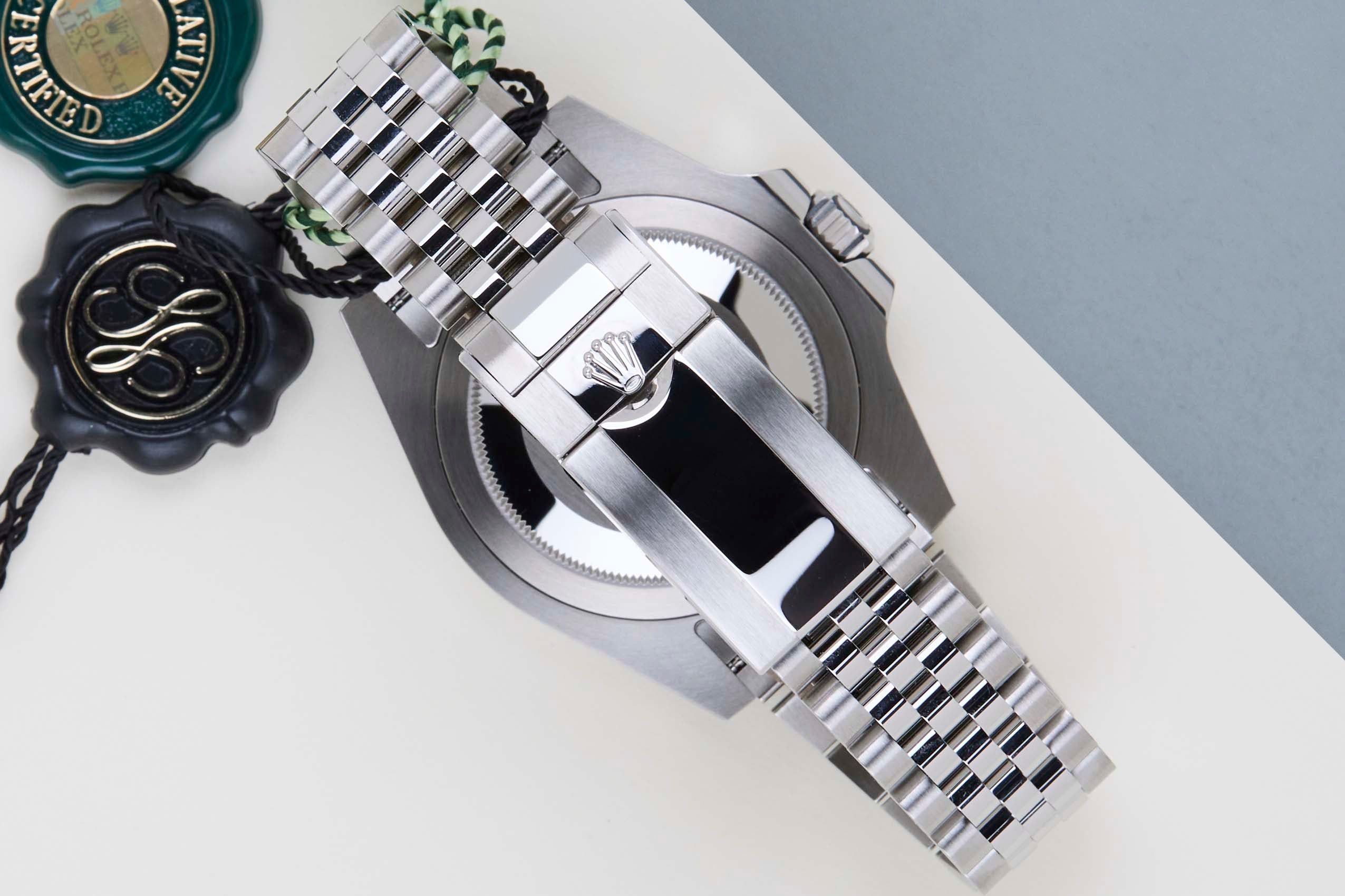 Dieser GMT-Master besteht aus Edelstahl und ist mit einem Jubilee-Armband ausgestattet, das mit dem Easylink-System versehen ist. Diese Erweiterung ermöglicht es dem Träger, das Armband um 5 Millimeter zu verlängern oder zu verkürzen, was den Tragekomfort und die Benutzerfreundlichkeit der Uhr verbessert.