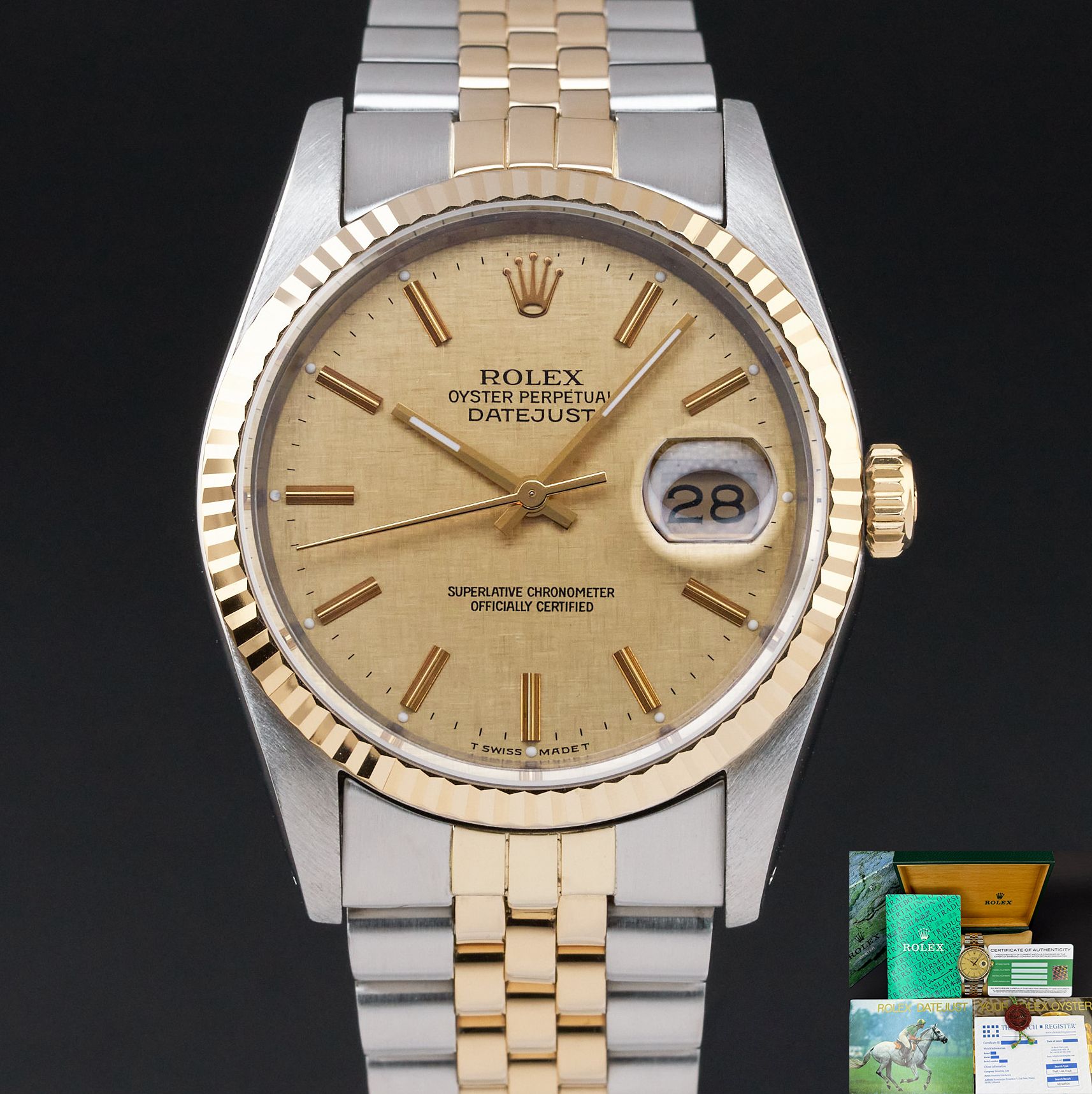 Rolex Datejust 36 Rolex Datejust, 16233, 36mm, 1989, Two-Tone, Champagne Linen dial, Box, 1y warranty