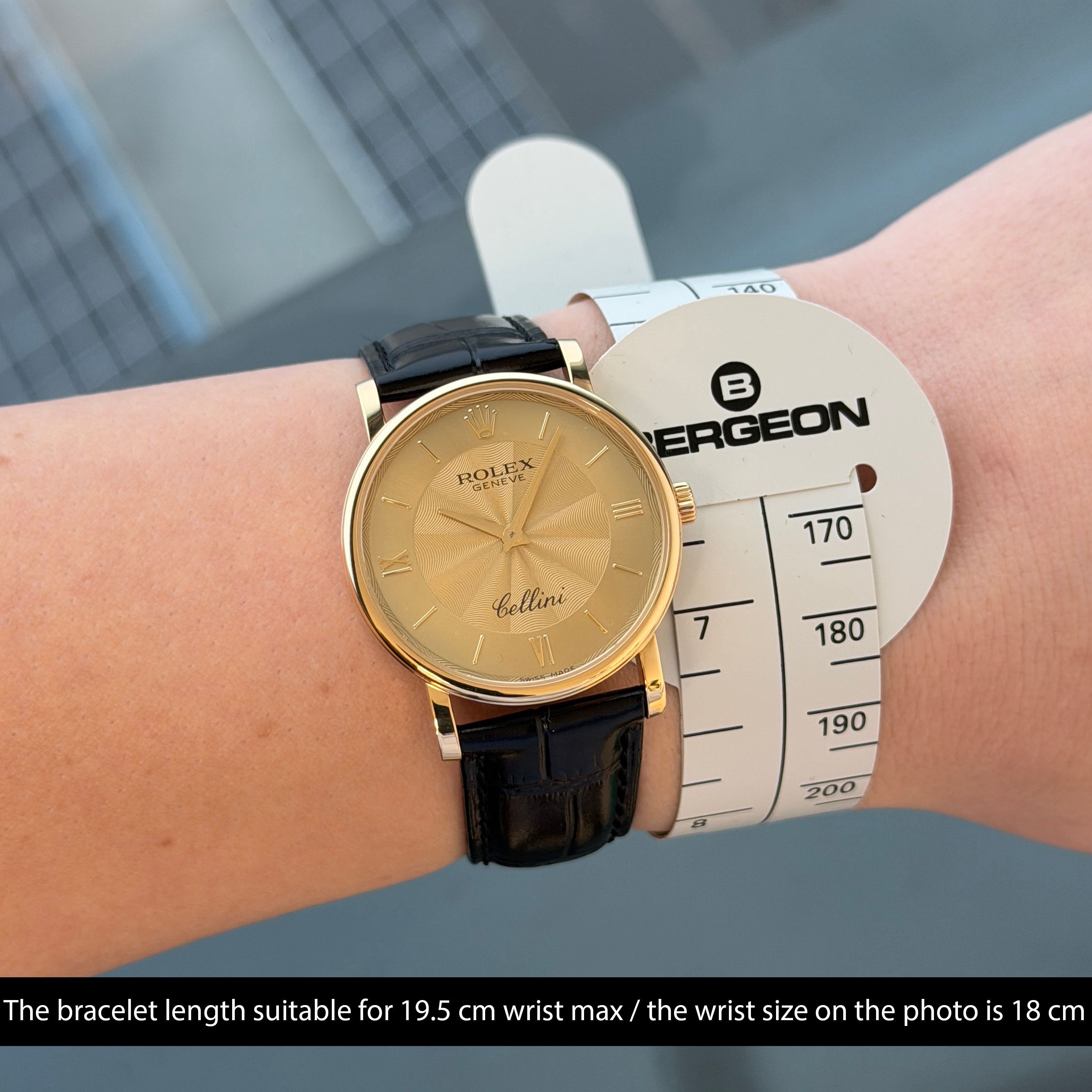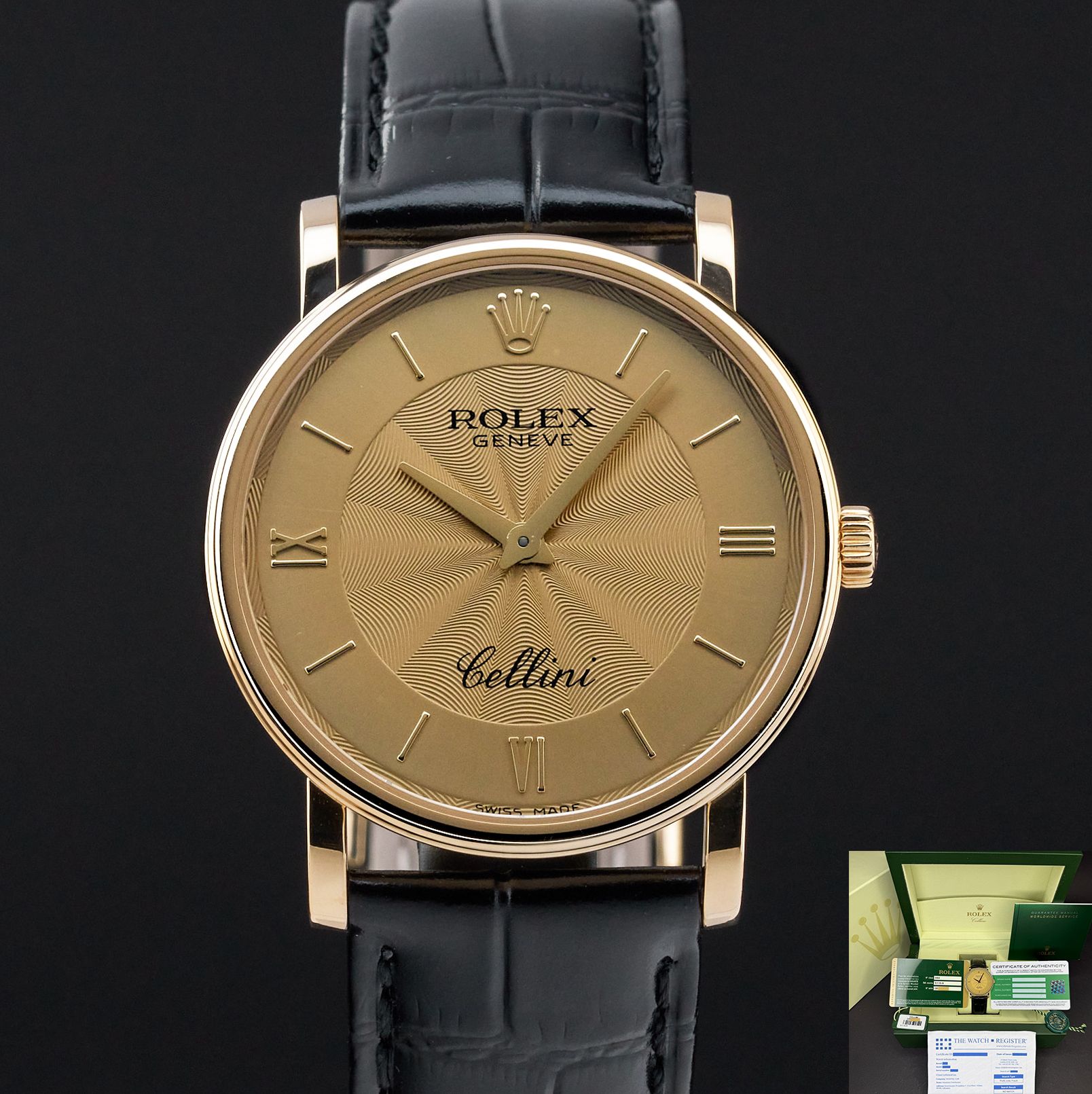 Diese Rolex Cellini 5115/8 verfügt über ein Champagner-Roman-Zifferblatt und ist aus 18K Gelbgold gefertigt, mit einem Produktionsjahr von 2013.