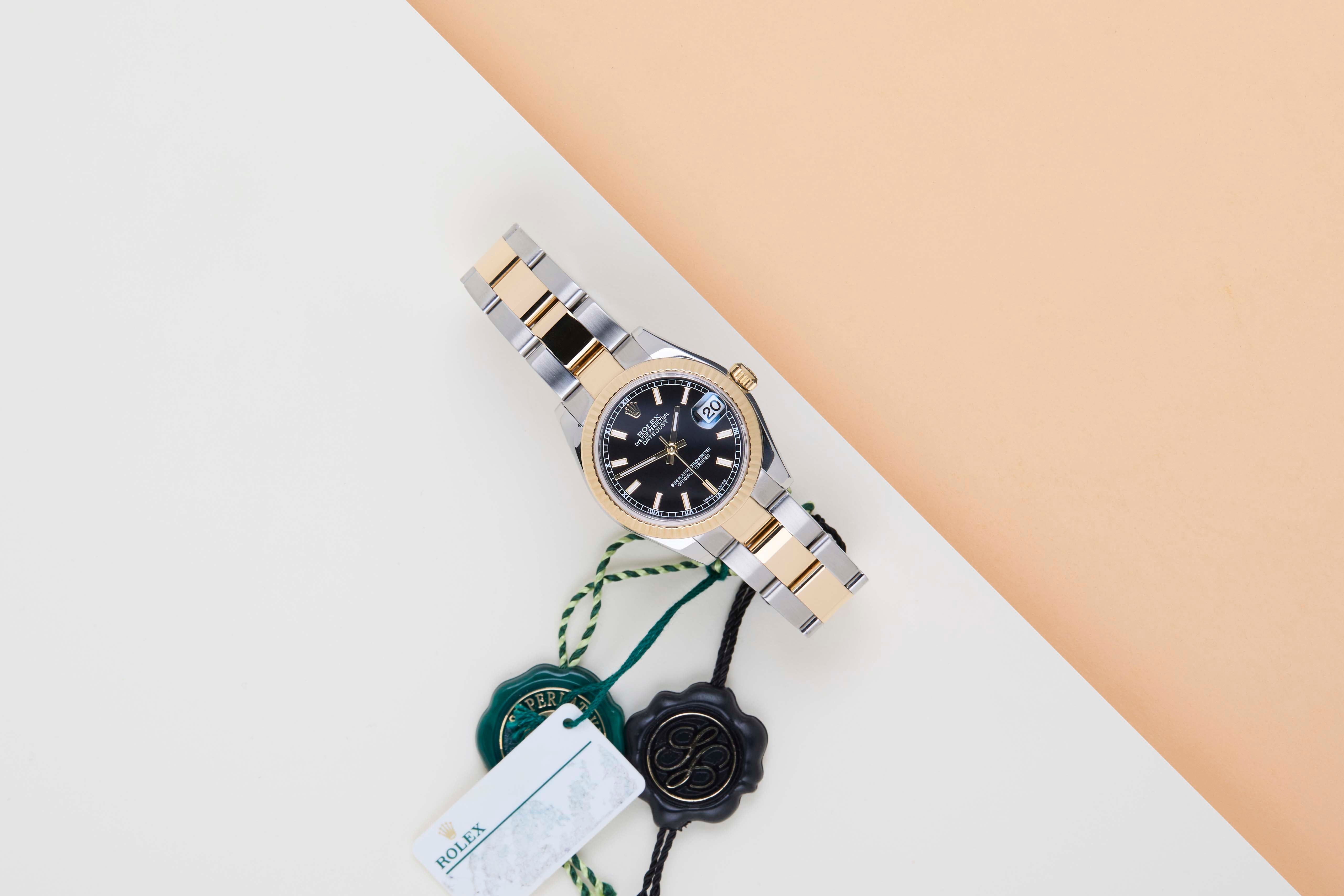 Full Set | European Warranty Card (LC134 - The Netherlands) | Including AD InvoiceRolex introduced the original Datejust in 1945 to celebrate the company's 40th anniversary.This Rolex Datejust 31 'Black Dial' has been sold for the first time in 2017.This Datejust is made of a combination of 18k Yellow Gold and stainless steel and is fitted with an Oyster bracelet.This Rolex Datejust 31 is in Mint condition and comes with the original Rolex Warranty Card, AD invoice and box. Furthermore, the watch has been serviced by our watchmakers and therefore has one year Steiner Warranty.