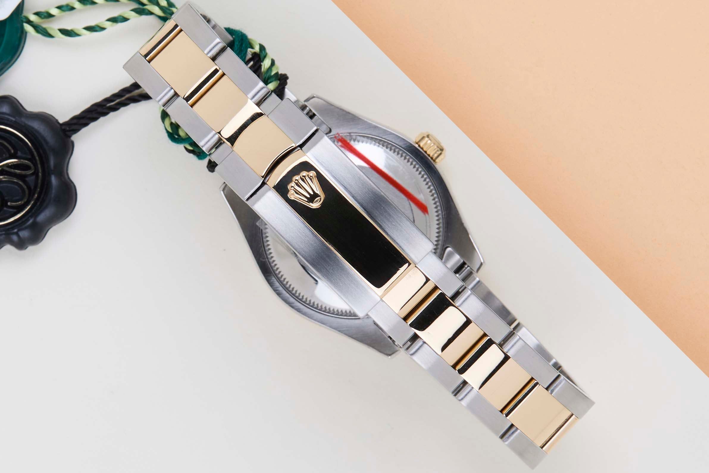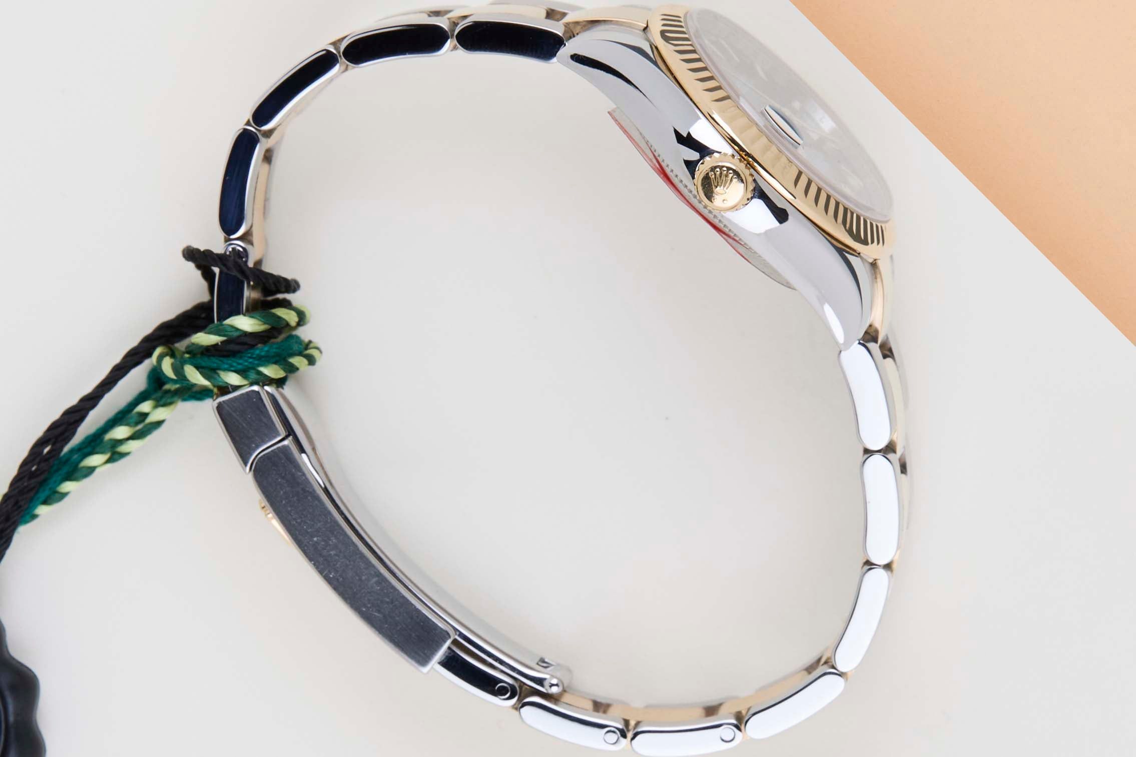 Rolex stellte die originale Datejust 1945 vor, um das 40-jährige Bestehen des Unternehmens zu feiern. Diese Rolex Datejust 31 'Schwarze Zifferblatt' wurde erstmals 2017 verkauft. Diese Datejust besteht aus einer Kombination von 18k Gelbgold und Edelstahl und ist mit einem Oyster-Armband ausgestattet. Diese Rolex Datejust 31 ist in neuwertigem Zustand und wird mit der originalen Rolex Garantiekarte, der AD-Rechnung und der Box geliefert. Darüber hinaus wurde die Uhr von unseren Uhrmachern gewartet und hat daher eine einjährige Steiner-Garantie.