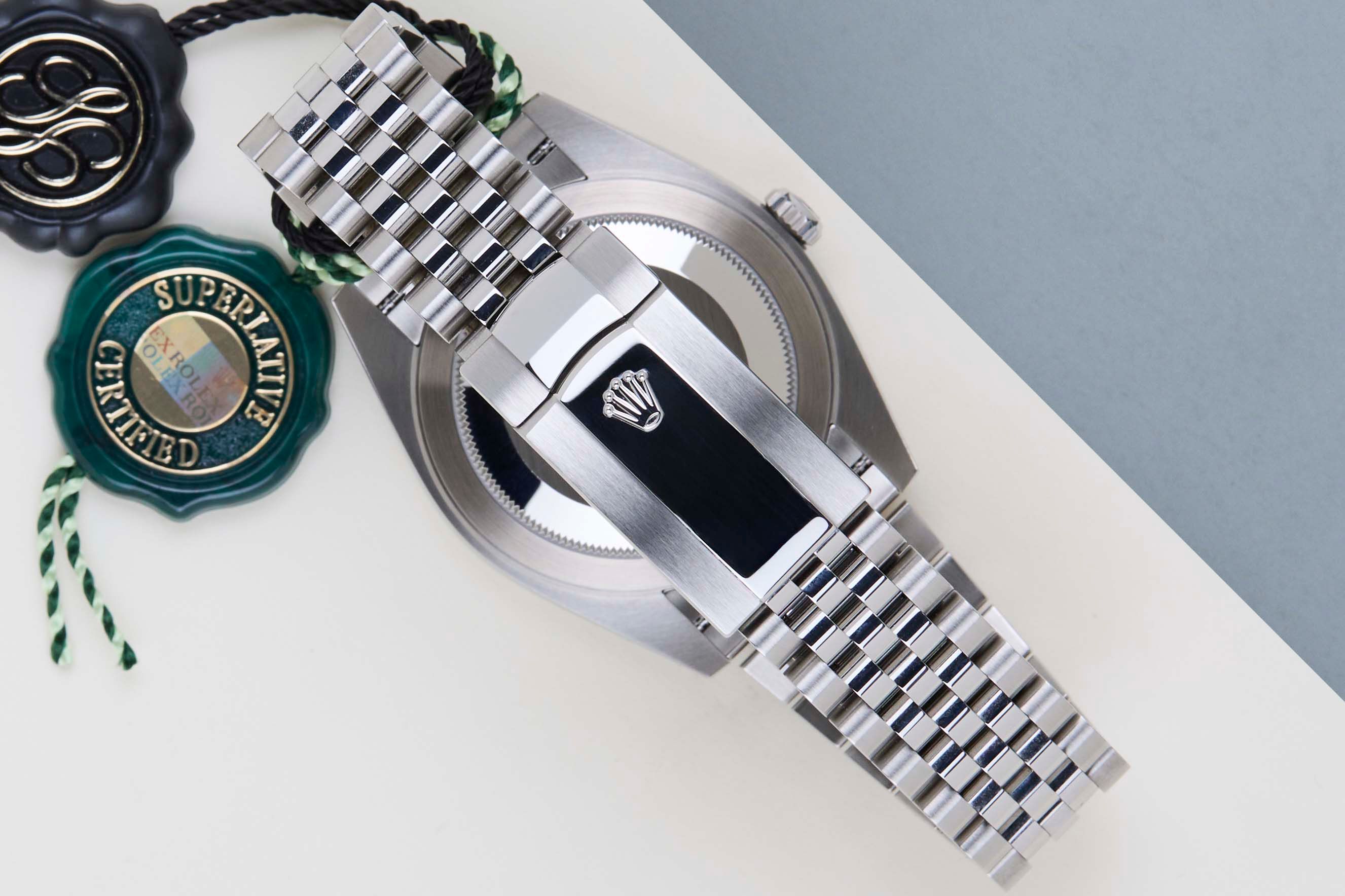 Diese Rolex Datejust 41 ist neu & ungetragen und wird mit der originalen Rolex Garantiekarte, der Rechnung des autorisierten Händlers und der Box geliefert. Darüber hinaus hat die Uhr noch bis Dezember 2030 internationale Rolex Garantie.