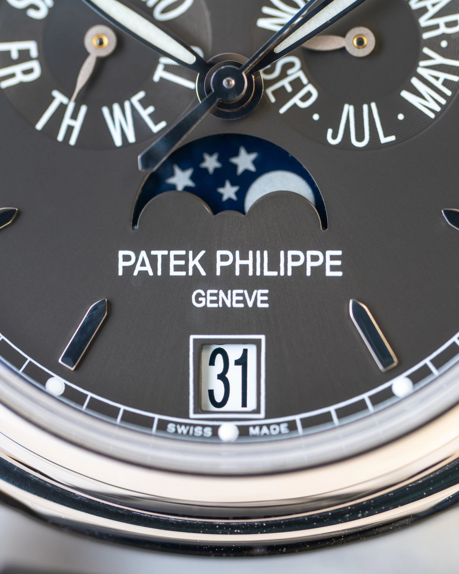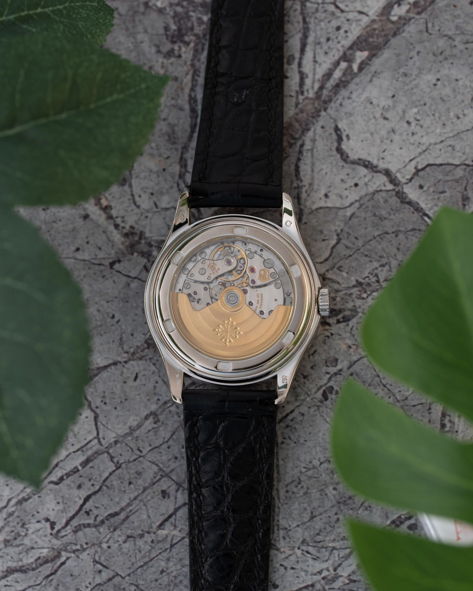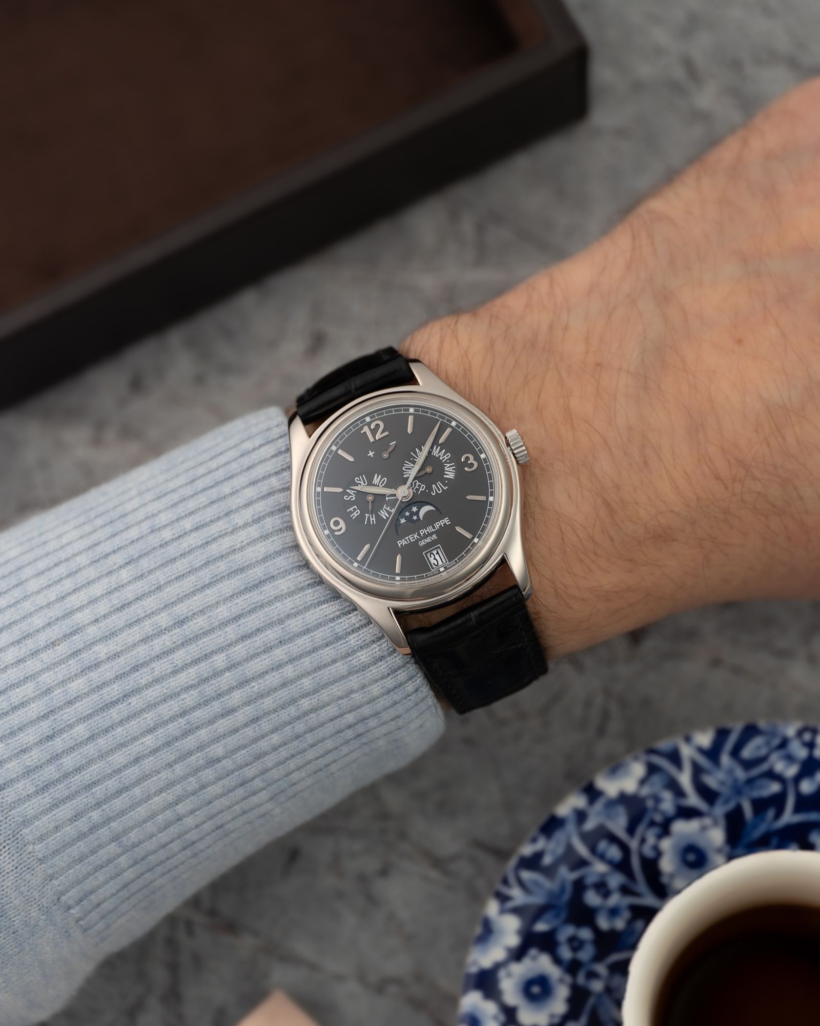 The Patek Philippe annual calendar was developed in the early 1990s. In 1995, Patek Philippe introduced the complication with Ref. 5035 in a 37mm case. In 2005, Ref. 5146 replaced it, adding refined aesthetics, technical improvements, and a modern 39mm case with 11.2mm thickness.
