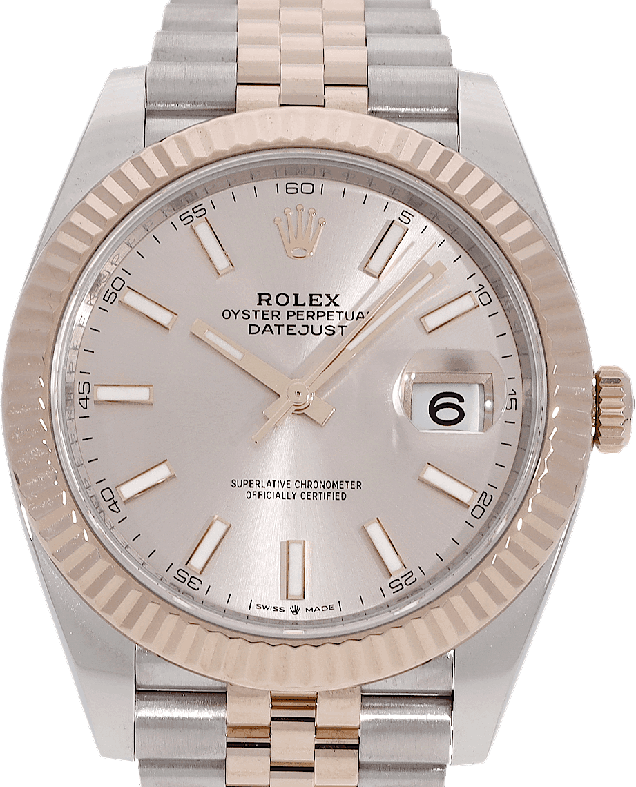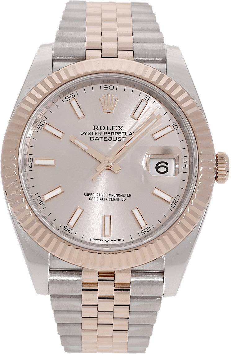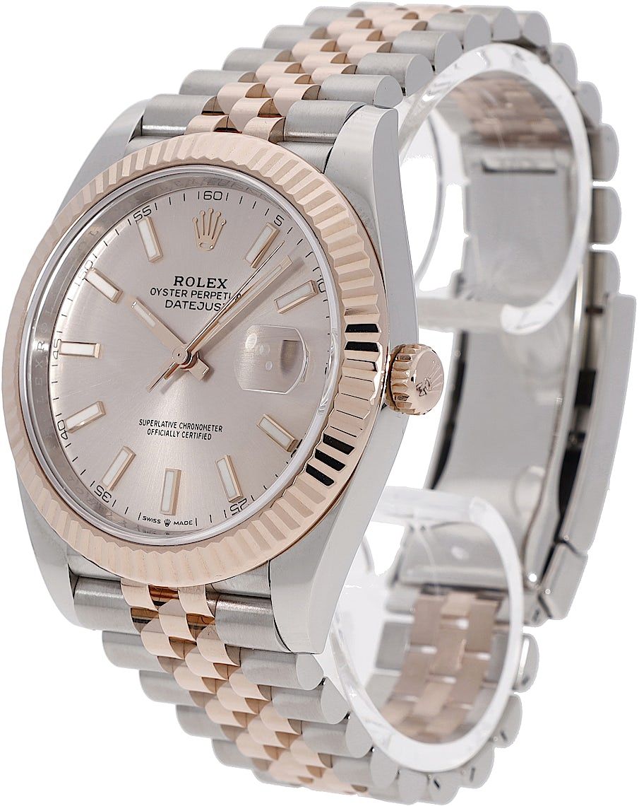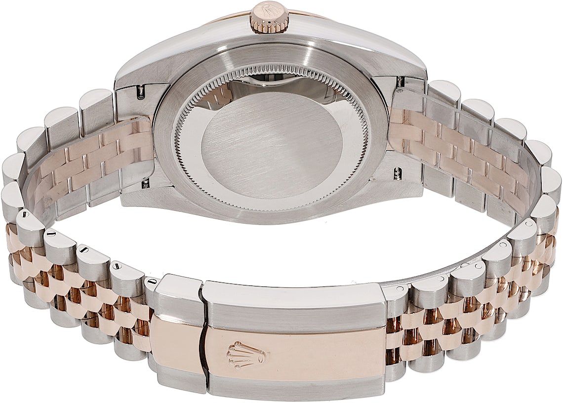 Rolex Datejust 41, Reference: 126331-0010, Gender: Male, Size: 41mm, Dial color: Rose, Strap material: Stainless Steel Rose Gold, Movement: Automatic, Year: 2021, Condition: Previously worn with some signs of usage. The movement is flawless and the case has been cleaned. watch tested to ensure full functionality. An inspection by our certified watchmakers guarantees its authenticity., Documents: Original papers, CHRONEXT Certificate