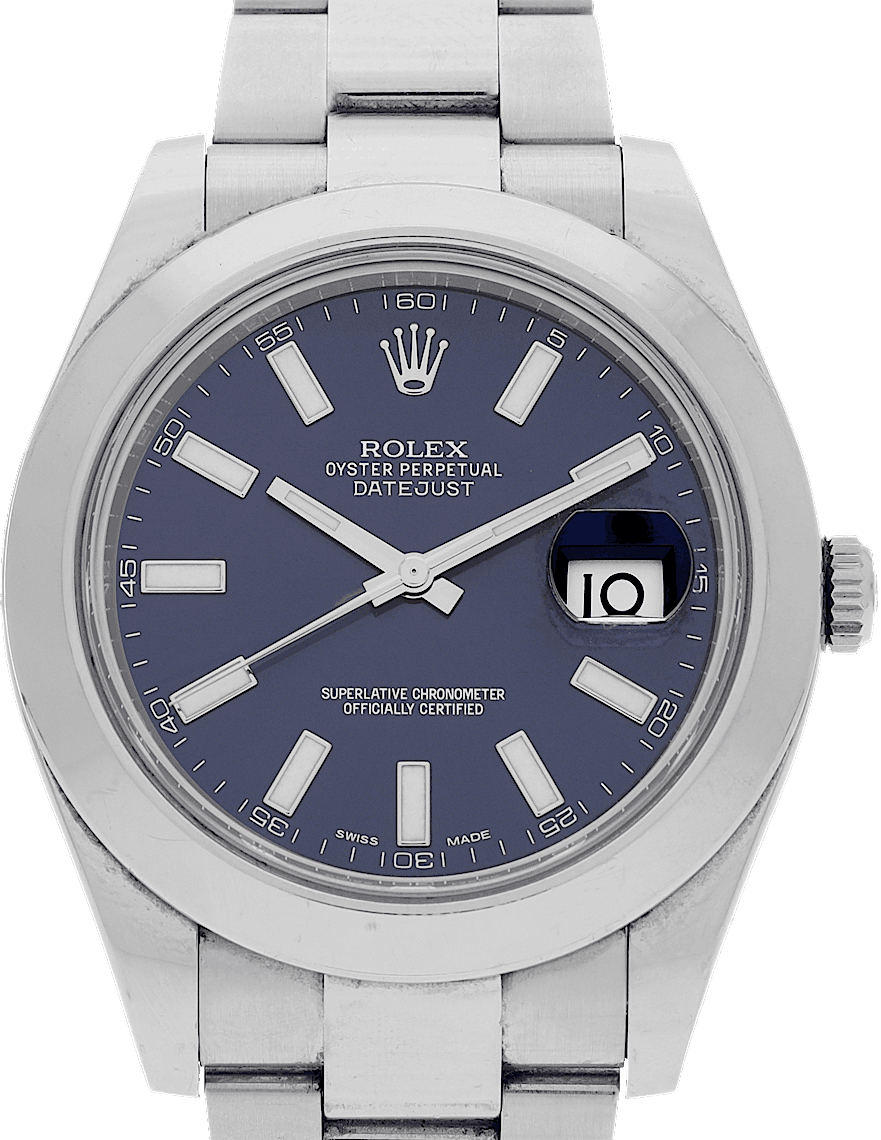 Rolex Datejust II, Reference: 116300, Gender: Male, Size: 41mm, Dial color: Blue, Strap material: Stainless Steel, Movement: Automatic, Condition: Previously worn with some signs of usage. The movement is flawless and the case has been cleaned. watch tested to ensure full functionality. An inspection by our certified watchmakers guarantees its authenticity., Documents: Original papers, CHRONEXT Certificate