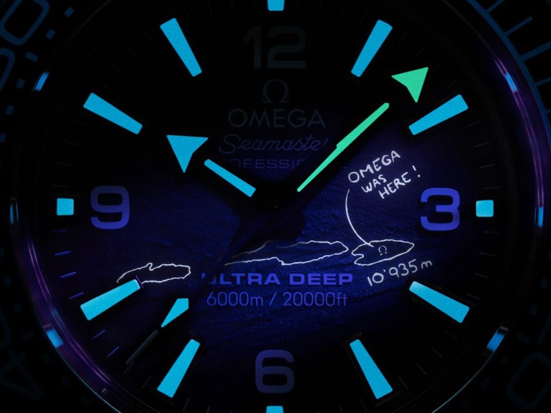 Gehäuse aus poliertem und satiniertem Edelstahl, Gehäusedurchmesser ohne Krone 45,5mm, Gehäusehöhe 18,12mm. Lünette aus Edelstahl mit schwarzem Keramikeinlage, 24-Stunden-Skala und Leuchtpunkt, einseitig drehbar. Armband aus satiniertem Edelstahl, Sicherheitsfaltschließe aus Edelstahl mit Hersteller-Logo. Zifferblatt blau lackiert mit Grundriss des Challenger Tiefs, aufgesetzten Leuchtindexen und arabischen Ziffern sowie Edelstahl-Leuchtzeigern. Unter UV-Licht ist der Schriftzug "OMEGA WAS HERE" zu sehen. Uhrwerk Automatik, Master Chronometer mit Zertifikat, Omega Manufakturkaliber 8912, Gangreserve ca. 60 Stunden. Anzeige von Stunde, Minute und Sekunde über Zeiger aus der Mitte mit Sekundenstopp zur sekundengenauen Einstellung der Uhrzeit. Saphirglas kratzfest, gewölbt und doppelseitig entspiegelt. Krone verschraubbar mit Hersteller-Logo. Boden verschraubt und graviert. Gewicht der Uhr inklusive Armband 255g, Länge des Armbandes inklusive Gehäuse 200mm. Wasserdicht bis 600 ATM. Referenznummer: 215.30.46.21.03.002, ID: ST1160200161225H-14200, Artikelnummer: 10000084015. Original Omega Box mit Umkarton und Garantieunterlagen von Dezember 2025 sowie Beschreibung, Full Set. Ungetragen. Lieferzeit sofort.