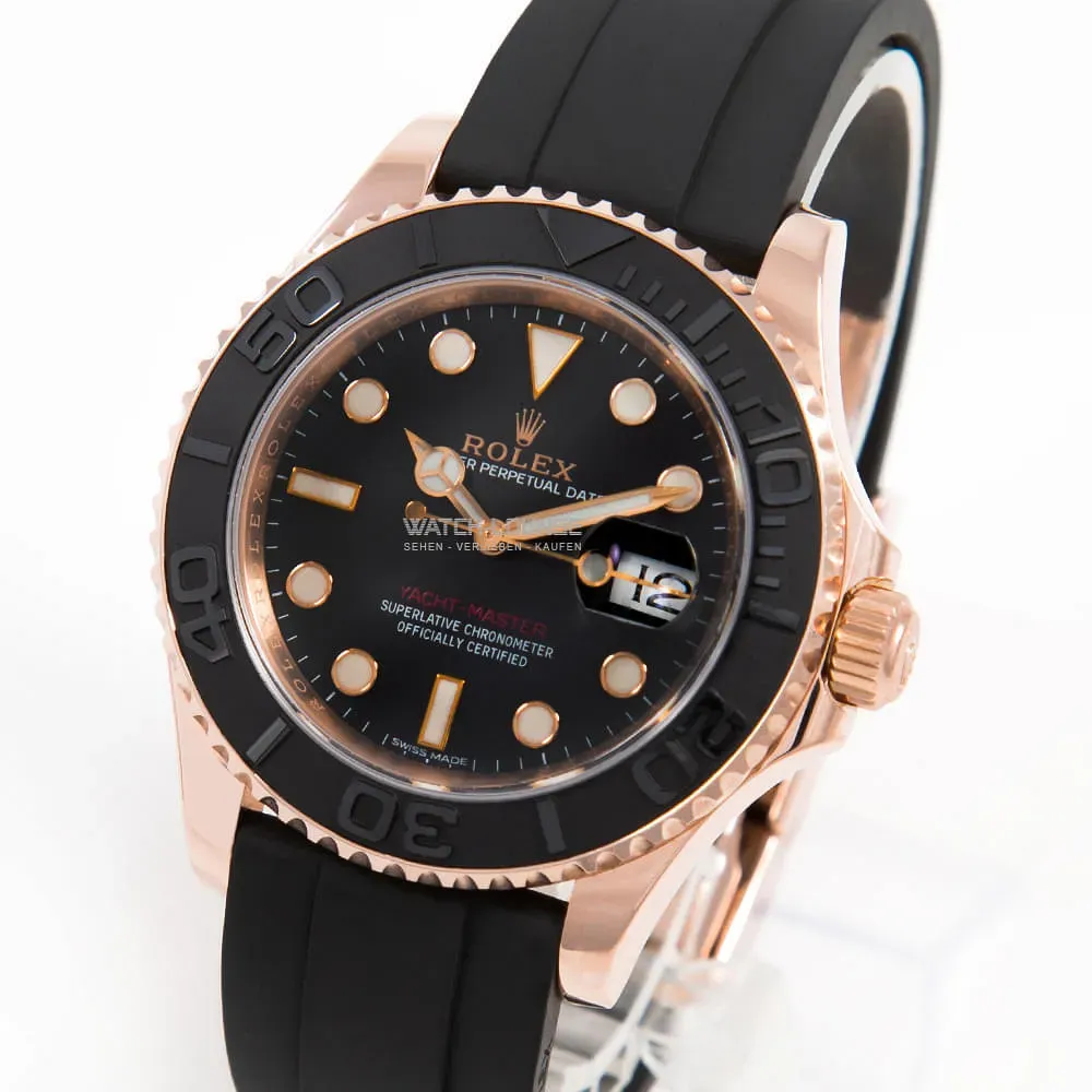 Original Rolex Yacht-Master 40 neues Modell in Everose-Gold mit Gummiarmband.