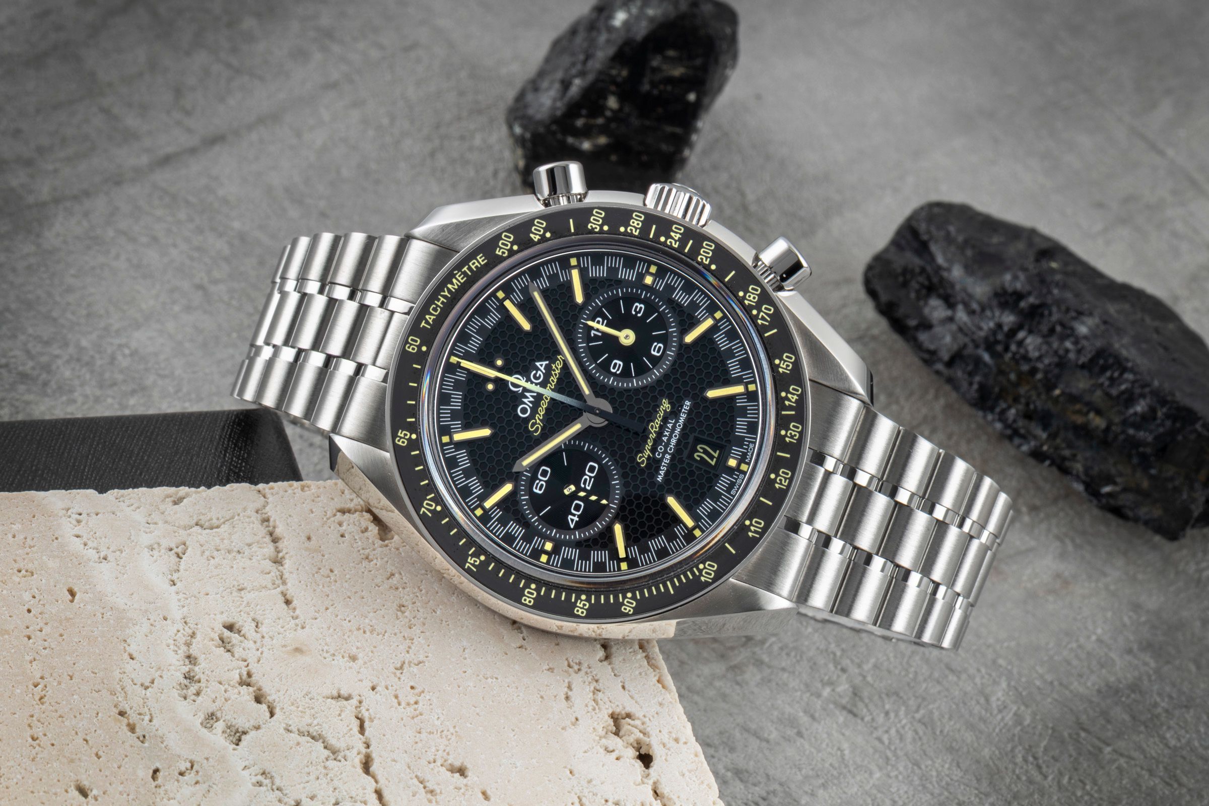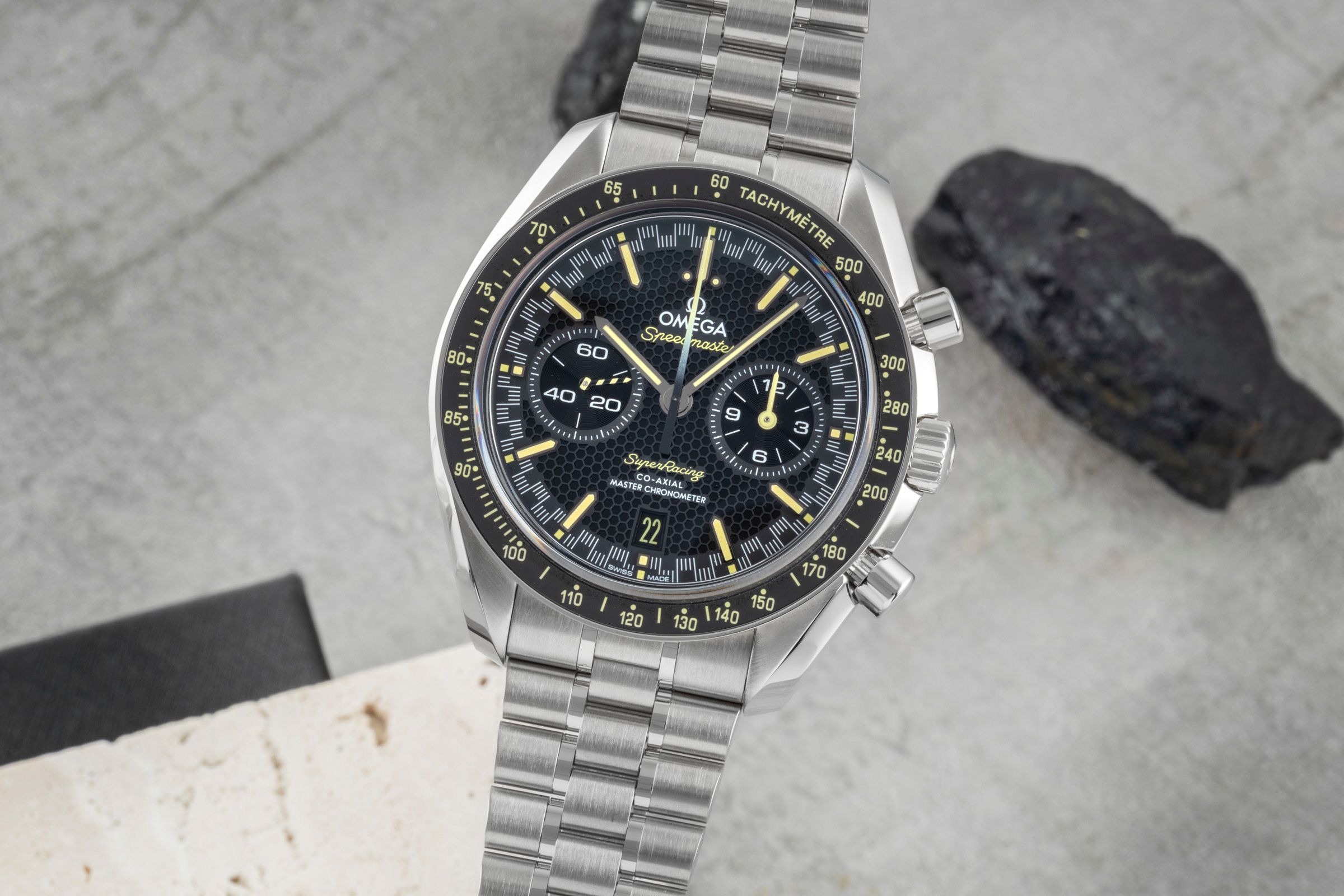 Alternative title: Omega 329.30.44.51.01.003 Speedmaster Super Racing Master Co-Axial Stainless Steel / Black / Bracelet; Omega Speedmaster Super Racing Automatik Ref. 329.30.44.51.01.003 B&P 2025 [2507276]