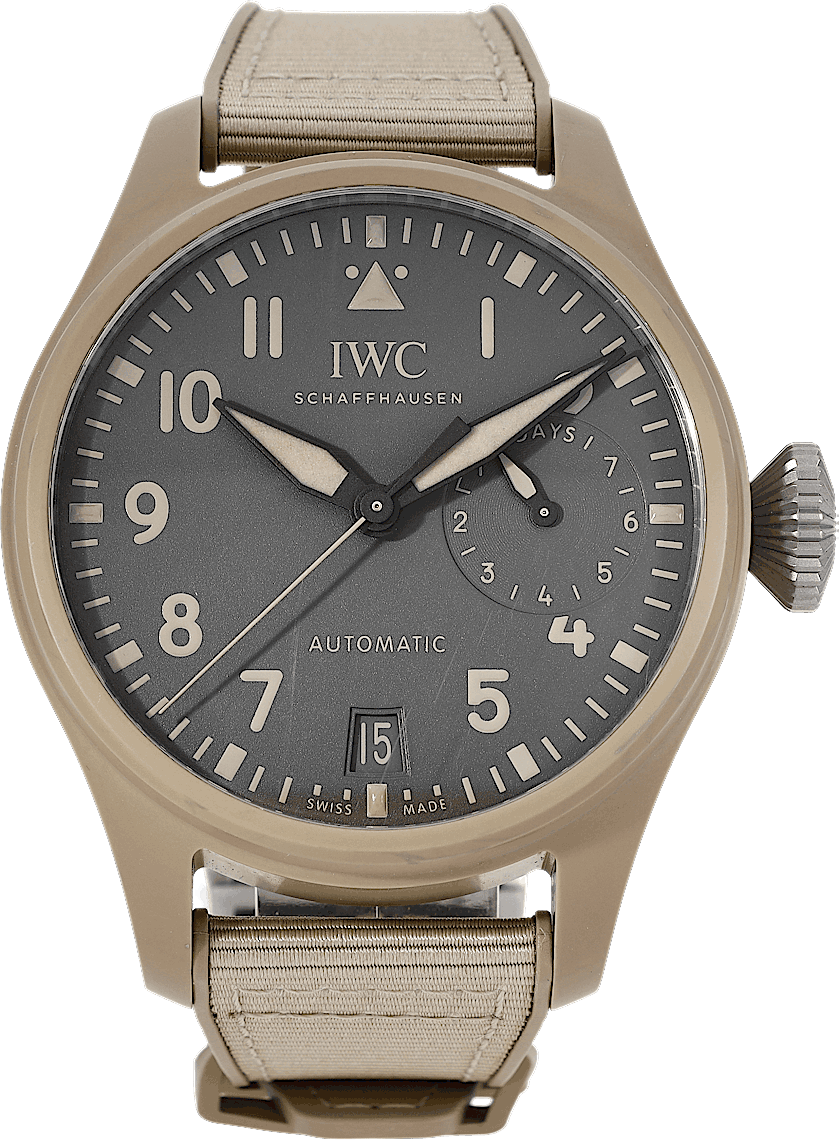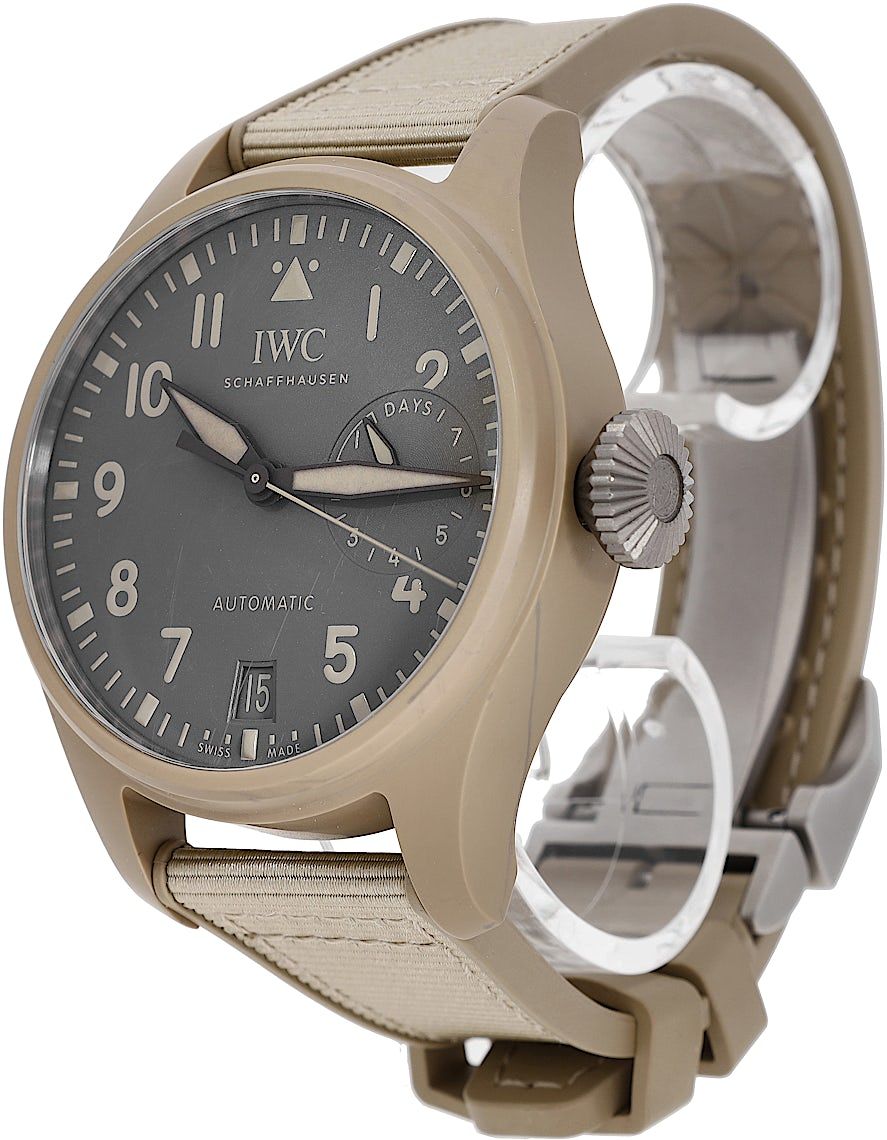 IWC Big Pilot Top Gun Edition "Mojave Desert", Reference: IW506003, Gender: Unisex, Size: 46mm, Dial color: Beige, Strap material: Rubber Textile, Movement: Automatic, Year: 2022, Condition: Previously worn with some signs of usage. The movement is flawless and the case has been cleaned. watch tested to ensure full functionality. An inspection by our certified watchmakers guarantees its authenticity., Documents: Original papers, CHRONEXT Certificate