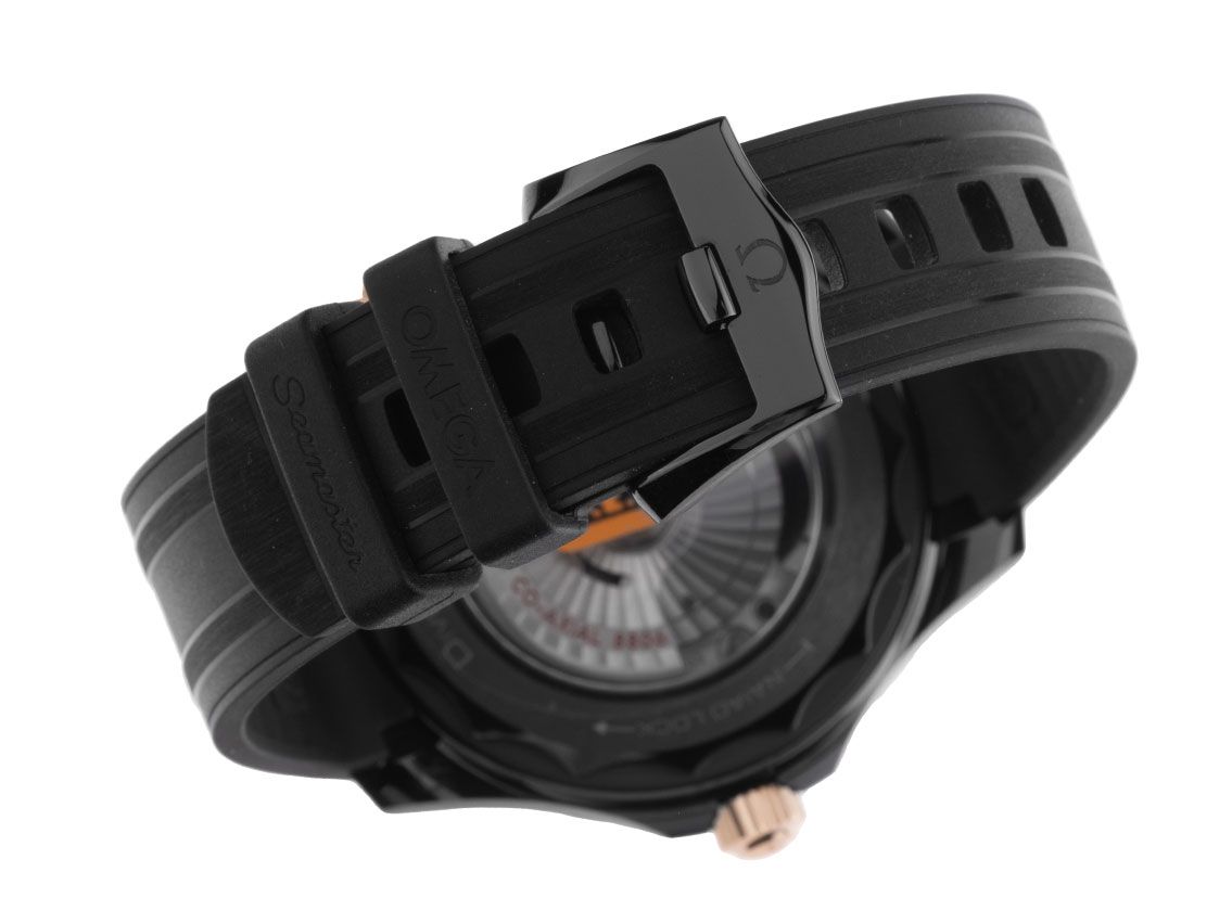 Gehäuse 18kt Sedna™-Gold poliert und satiniert, Gehäusedurchmesser ohne Krone 43,5mm, Gehäusehöhe 14,5mm. Lünette 18kt Sedna™-Gold mit schwarzem Keramik Inlay, 60-Minuten Skala und Leuchtpunkt, einseitig drehbar. Heliumventil bei 10 Uhr. Armband Kautschuk schwarz, Anstoßbreite 21mm, Stiftschließe Keramik mit Hersteller-Logo. Zifferblatt schwarz mit lasergraviertem Wellen-Muster, aufgesetzten Sedna™-Gold Leuchtindexen und Sedna™-Gold Leuchtpunkten sowie skelettierten 18kt Sedna™-Goldenen Leuchtzeigern. Automatik, Chronometer mit Zeugnis, Omega Manufakturkaliber 8806 mit 35 Edelsteinen, Gangreserve ca. 55 Stunden. Anzeige von Stunde, Minute und Sekunde über Zeiger aus der Mitte mit Sekundenstopp zur sekundengenauen Einstellung der Uhrzeit. Saphirglas kratzfest und doppelseitig entspiegelt. Krone verschraubbar mit Flankenschutz und Hersteller-Logo. Boden Keramik verschraubt und graviert mit Saphirglas Sichtfenster. Gewicht der Uhr inklusive Armband 121g. Wasserdicht bis 30 ATM. Referenznummer: 210.62.44.20.01.001, ID: ST1160200141225H-14200, Artikelnummer: 10000084110. Original Omega Box mit Umkarton und Garantie Papiere von Dezember 2025 sowie Beschreibung, Full Set. Ungetragen. Lieferzeit sofort.