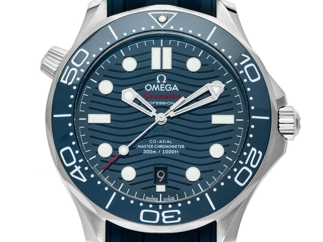 Omega Seamaster Diver 300M Co-Axial Master Chronometer Stahl Keramik Automatik Armband KautschukGehäuse Edelstahl poliert und satiniert, Gehäusedurchmesser ohne Krone 42mm, Gehäusehöhe 13,6mm. Lünette Edelstahl mit blauem Keramik Inlay, 60-Minuten Skala und Leuchtpunkt, einseitig drehbar. Heliumventil bei 10 Uhr. Armband Kautschuk blau, Anstoßbreite 20mm, Stiftschließe Edelstahl mit Hersteller-Logo. Zifferblatt blau mit lasergraviertem Wellen-Muster, aufgesetzten Leuchtindexen und Leuchtpunkten sowie skelettierten Edelstahl Leuchtzeigern. Uhrwerk Automatik, Chronometer mit Zeugnis, Omega Manufakturkaliber 8800 mit 35 Edelsteinen, Co-Axial Hemmung und Gangreserve ca. 55 Stunden. Anzeige von Stunde, Minute und Sekunde über Zeiger aus der Mitte mit Sekundenstopp zur sekundengenauen Einstellung der Uhrzeit, Datumsanzeige mit Schnellverstellung bei 6 Uhr. Saphirglas kratzfest, gewölbt und doppelseitig entspiegelt. Krone verschraubbar mit Flankenschutz und Hersteller-Logo. Boden Edelstahl verschraubt und graviert mit Saphirglas Sichtfenster. Gewicht der Uhr inklusive Armband 112g. Wasserdicht bis 30 ATM. Referenznummer: 210.32.42.20.03.001, ID: ST116085581225H-6100, Artikelnummer: 10000084111. Original Omega Box mit Umkarton und Garantie Papiere von Dezember 2025 sowie Beschreibung, Full Set. Ungetragen. Lieferzeit sofort.