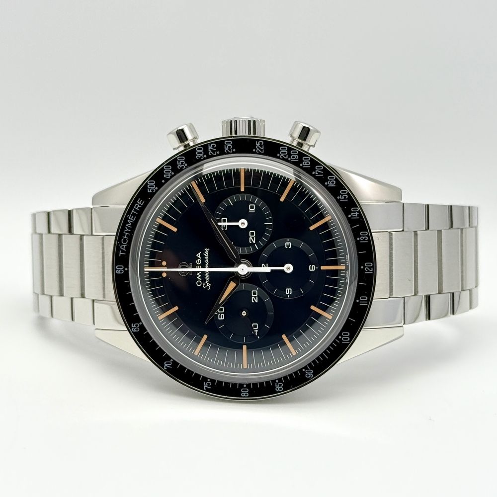 Founded in 1848 in La Chaux-de-Fonds, Switzerland, Omega is renowned for its precision, innovation, and deep connection to space exploration. The Speedmaster “First OMEGA in Space” pays tribute to the watch worn by astronaut Wally Schirra during the 1962 Sigma 7 mission, combining historic design cues with modern Master Chronometer performance.The Omega Speedmaster “First OMEGA in Space”, reference 310.30.40.50.06.001, features a 39.7 mm stainless steel case with polished and brushed surfaces and a grey-blue dial with contrasting black subdials, inspired by vintage CK2998 models. It is powered by the hand-wound Omega Co-Axial Master Chronometer caliber 3861, offering a 50-hour power reserve, a frequency of 21,600 vph, and METAS-certified precision, magnetic resistance, and reliability. Functions include hours, minutes, small seconds, and a chronograph with central seconds, 30-minute counter, and 12-hour counter.