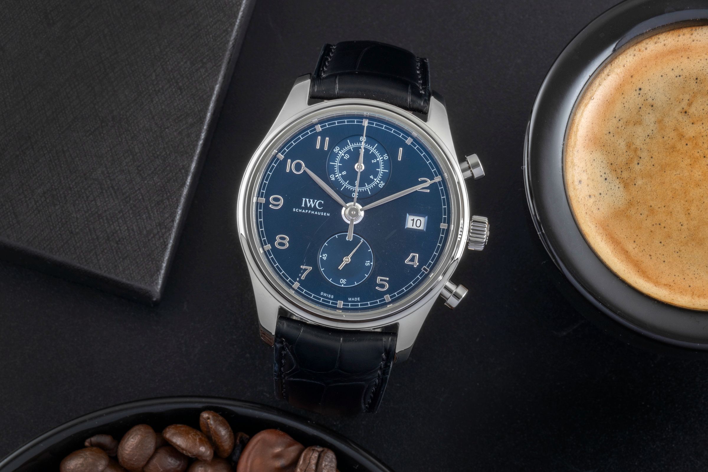 Alternative title: IWC IW390303 Portugieser Chronograph Classic Stainless Steel / Blue; IWC Portugieser Chronograph Stahl Automatik Herrenuhr Ref. IW390303 Papiere 2018 [2506282]