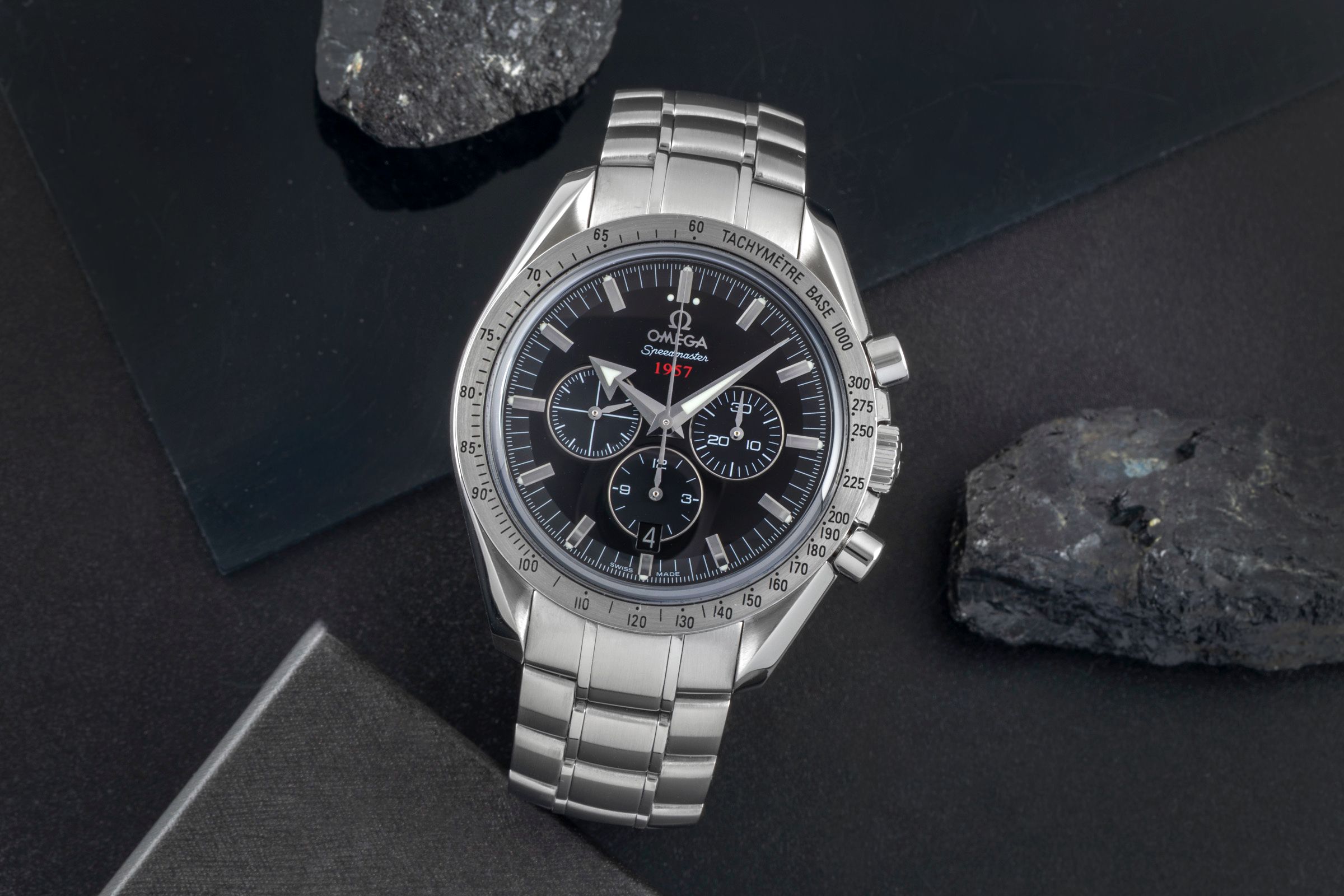 Alternative title: Omega 321.10.42.50.01.001 Speedmaster Broad Arrow 1957 Stainless Steel / Black / Bracelet; Omega Speedmaster Chronograph Stahl Automatik Ref. 321.10.42.50.01.001 [2505199]
