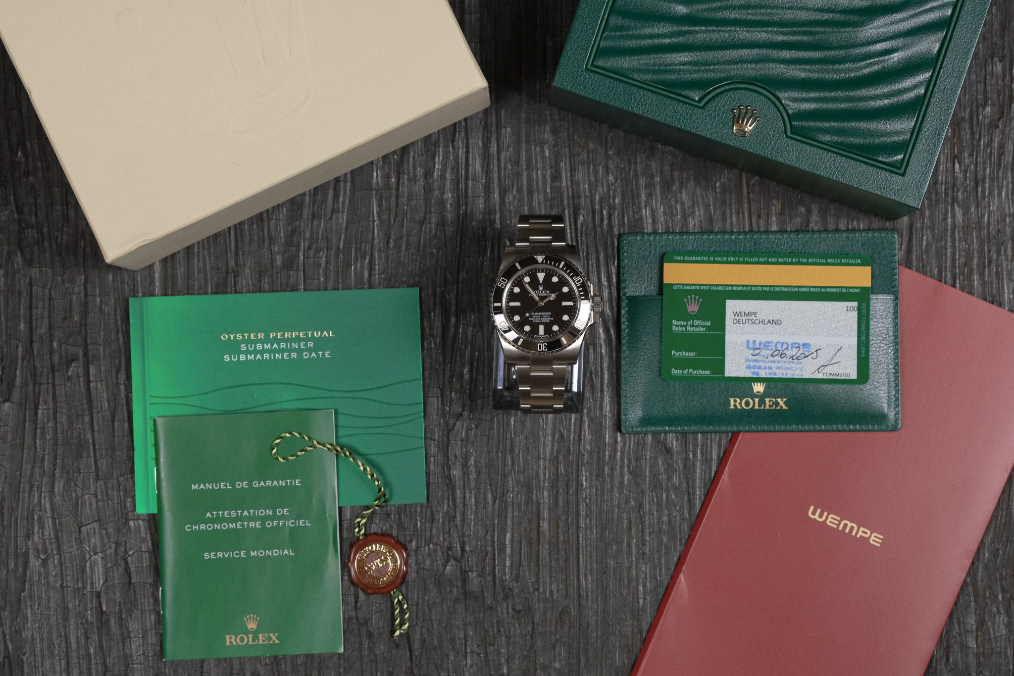 Submariner No Date in sehr gutem, leicht getragenem Zustand, im deutschen Komplettset mit dem originalen Kaufbeleg.