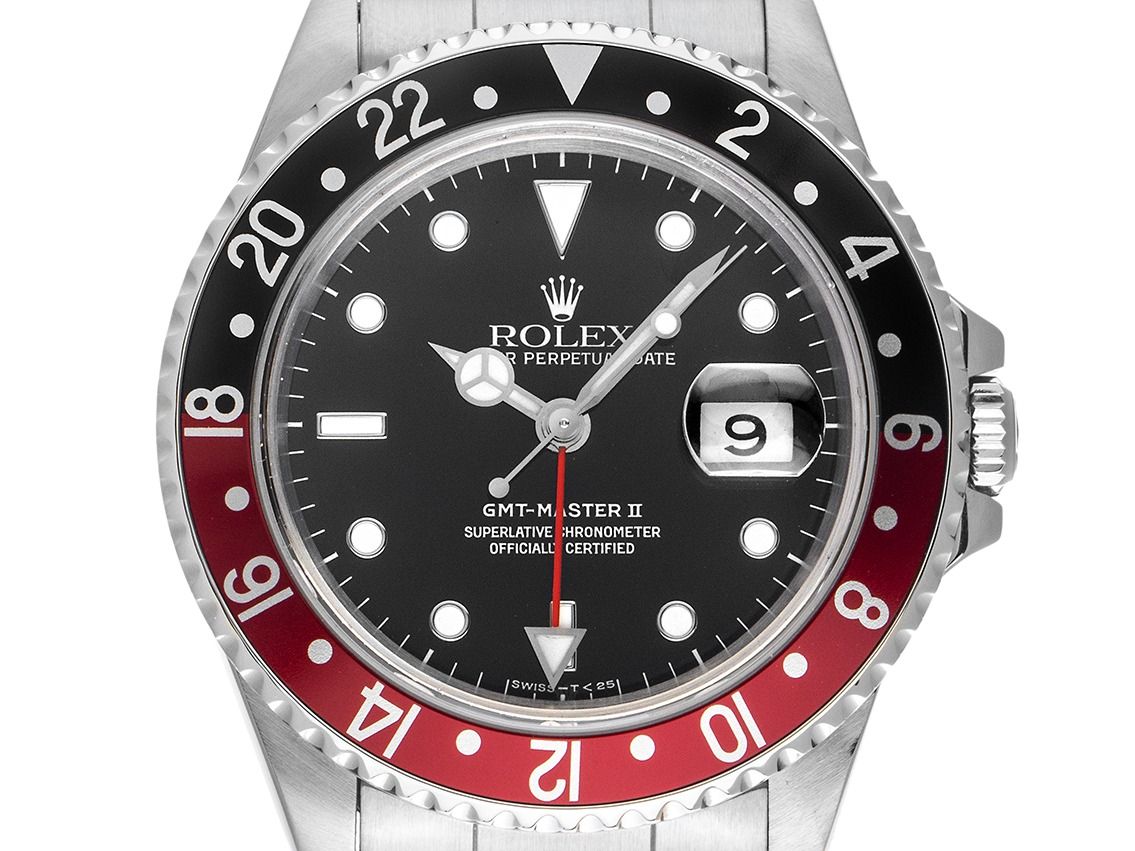 Rolex GMT Master II rot schwarz Coke Stahl Automatik Armband Oyster