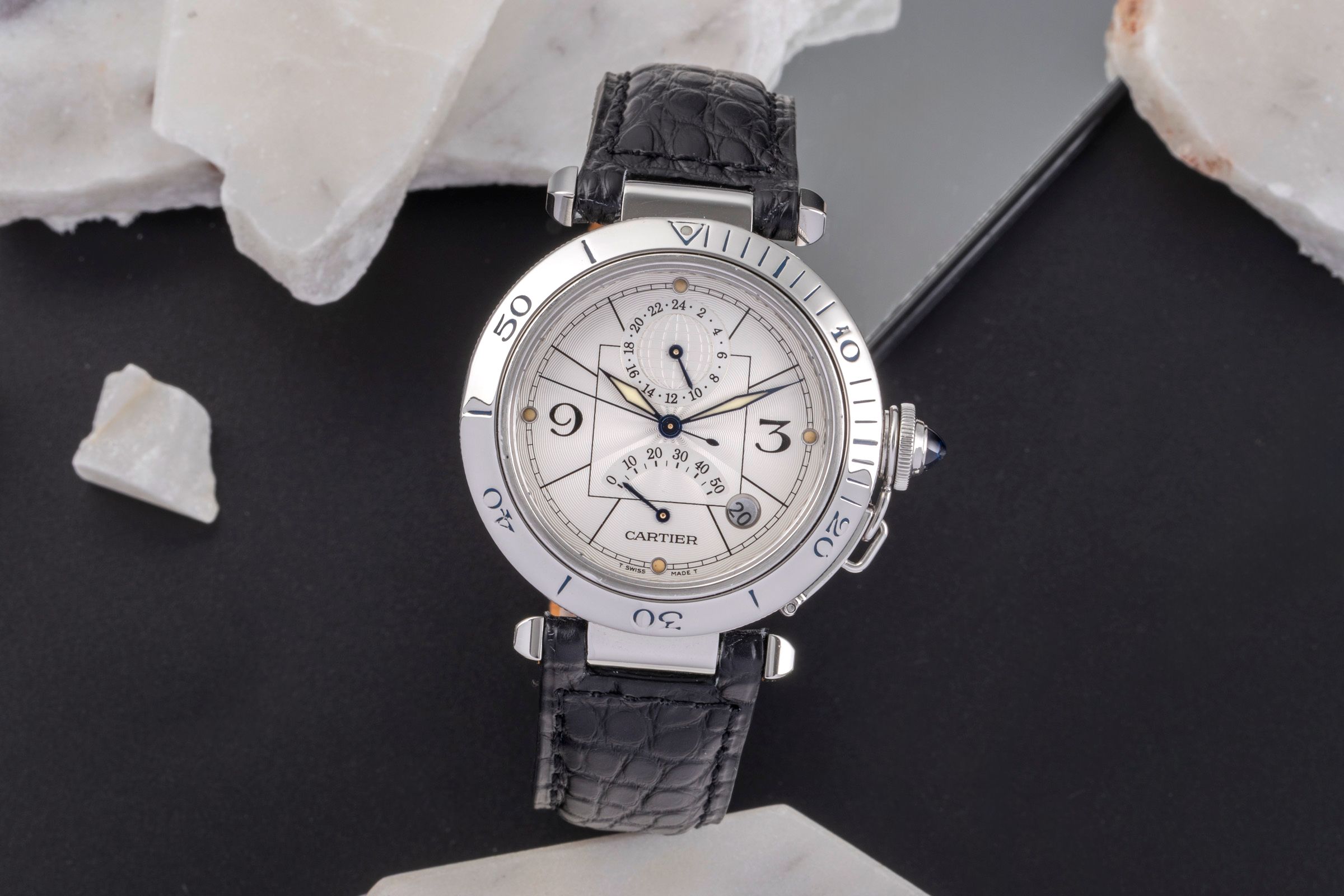 Alternativtitel: Cartier W3103755 - Pasha; Cartier Pasha GMT Gangreserve Automatik Stahl Herrenuhr Ref. W3103755 [2503333]