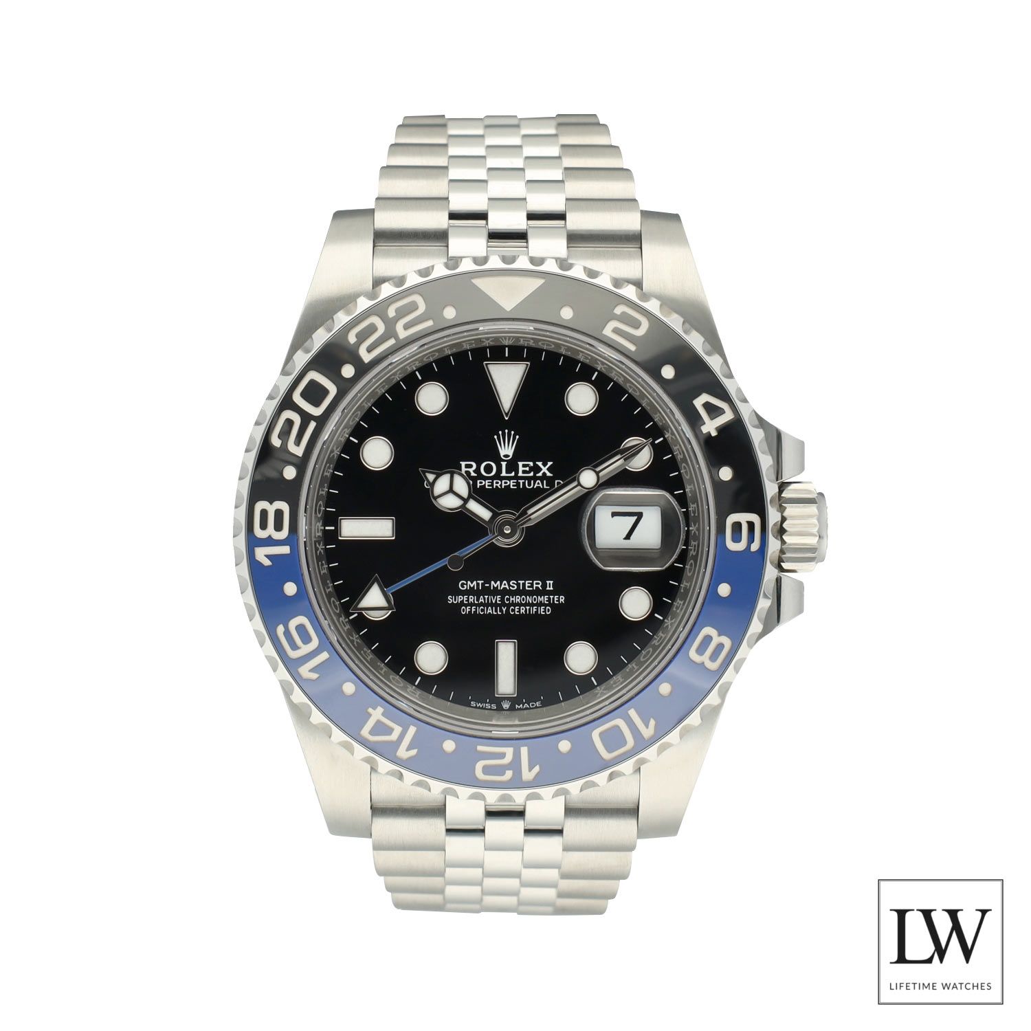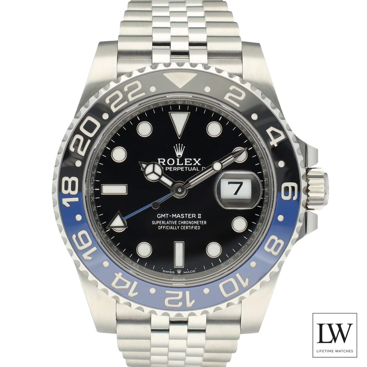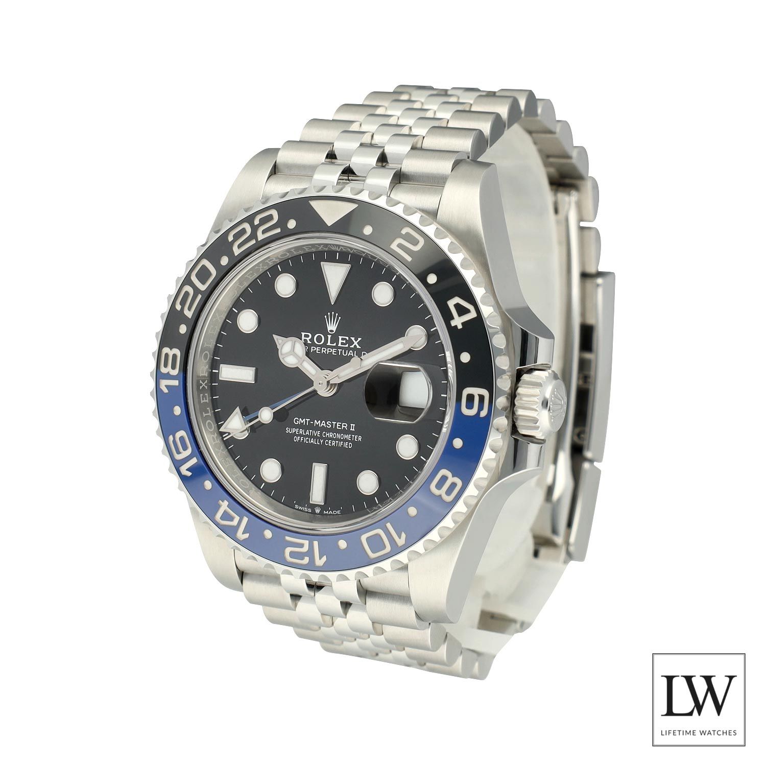 Rolex GMT-Master II with reference 126710BLNR from 2022, comes as a full set including the box, papers, booklets, hang tag etc. The Rolex GMT-Master II measures a 40 mm case, Oystersteel Jubilee band and a bidirectional rotatable 24-hour graduated bezel. Two-colour blue and black Cerachrom insert in ceramic, moulded numerals and graduations. This GMT-Master II features an automatic movement caliber 3285 with quickset date function, scratch resistance sapphire crystal including cyclops lens and a power reserve from approximately 70 hours.The watch will come with an International Rolex Warranty until 2027 and additional 24 months warranty from the seller.