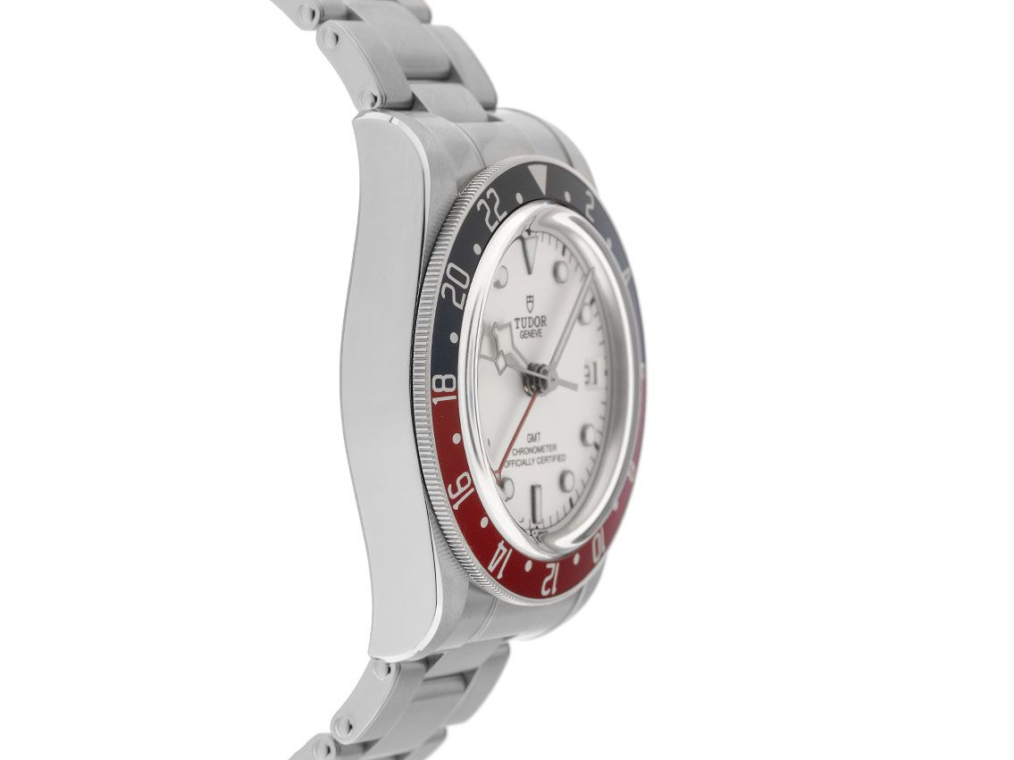 Gehäuse aus poliertem und satiniertem Edelstahl, Gehäusedurchmesser ohne Krone 41mm, Gehäusehöhe 14,7mm. Lünette aus Edelstahl mit rot-blauem Pepsi Inlay, 24-Stunden-Skala, beidseitig drehbar. Armband aus poliertem und satiniertem Edelstahl, Sicherheitsfaltschließe aus Edelstahl mit Hersteller-Logo. Zifferblatt in Weiß mit aufgesetzten Edelstahl-Leuchtindexen und Edelstahl-Leuchtzeigern. Uhrwerk Automatik, Chronometer mit Zeugnis, Manufakturkaliber Tudor MT5652, Gangreserve ca. 70 Stunden. Anzeige von Stunde, Minute und Sekunde über Zeiger aus der Mitte mit Sekundenstopp zur sekundengenauen Einstellung der Uhrzeit, Datumsanzeige mit Schnellverstellung bei 3 Uhr, GMT (zweite Zeitzone) einstellbar über roten Zeiger aus der Mitte. Saphirglas kratzfest und gewölbt. Krone verschraubbar mit Hersteller-Logo. Boden aus Edelstahl, verschraubt und graviert. Gewicht der Uhr inklusive Armband 185g, Länge des Armbandes inklusive Gehäuse 200mm. Referenznummer: M79830RB-0010, ID: ST116067120126H-4680, Artikelnummer: 10000084303. Original Tudor Box mit Umkarton und Garantiepapieren von Dezember 2026 sowie Beschreibung, Full Set. Ungetragen. Lieferzeit sofort.