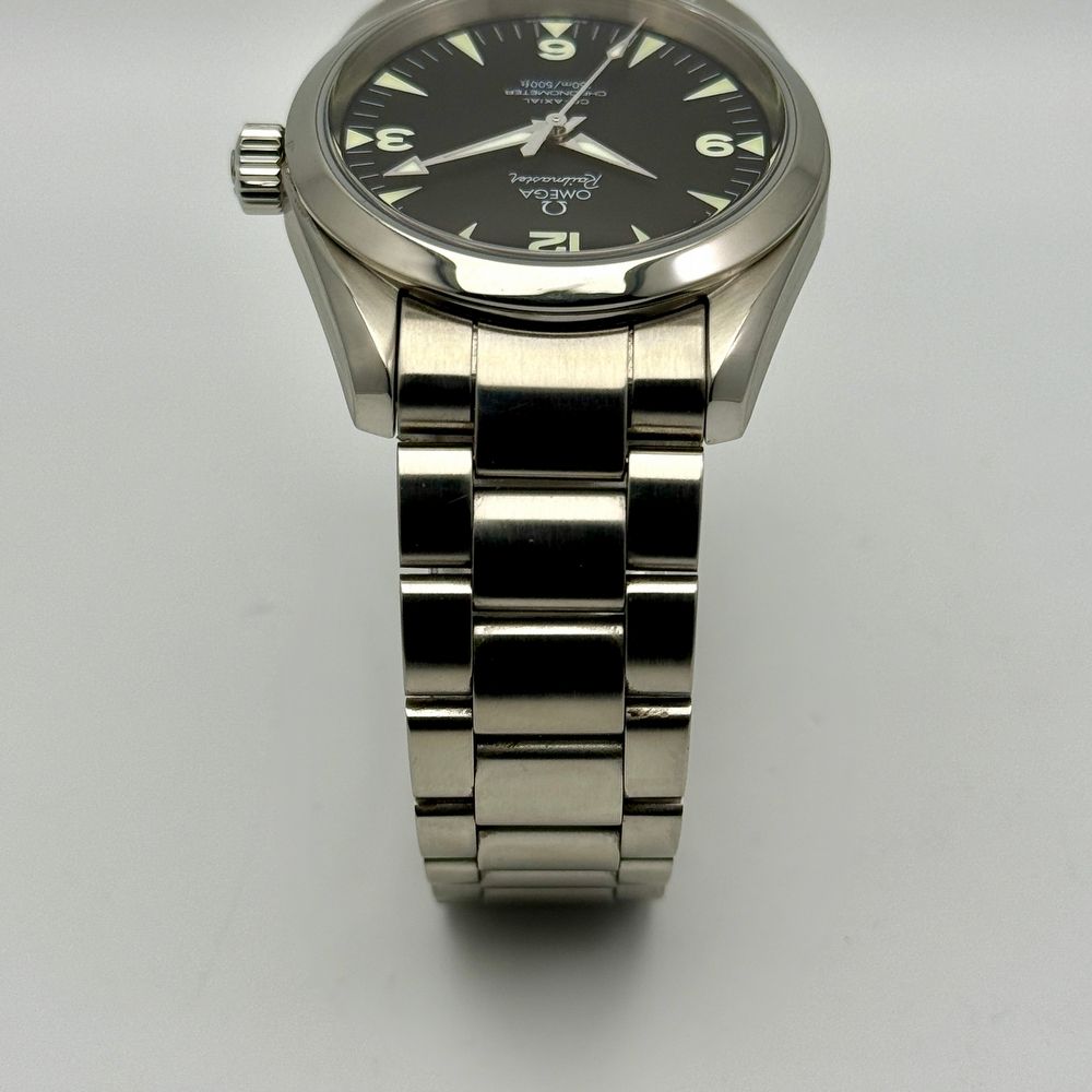 Founded in 1848 in La Chaux-de-Fonds, Switzerland, Omega is renowned for its precision, innovation, and strong ties to professional and scientific timekeeping. The Railmaster collection was originally introduced in 1957 for engineers, scientists, and railway professionals, designed to withstand strong magnetic fields while maintaining exceptional accuracy. The modern Railmaster continues this legacy with understated design and robust engineering.The Omega Railmaster, reference 2504.52.00, features a 36.2 mm stainless steel case with a clean black dial, Arabic numerals, and luminous hands for excellent legibility. Powered by the Omega Co-Axial caliber 2403 automatic movement, it offers a 44-hour power reserve, a frequency of 25,200 vph, and enhanced long-term precision thanks to George Daniels’ Co-Axial escapement. Functions include hours, minutes, and central seconds. A scratch-resistant sapphire crystal protects the dial, while the solid case construction provides strong resistance against magnetic fields, staying true to the Railmaster’s original purpose. With 150 meters of water resistance, the watch is well suited for both professional use and everyday wear. This model is fitted on a stainless steel bracelet with a folding clasp, offering comfort and durability.