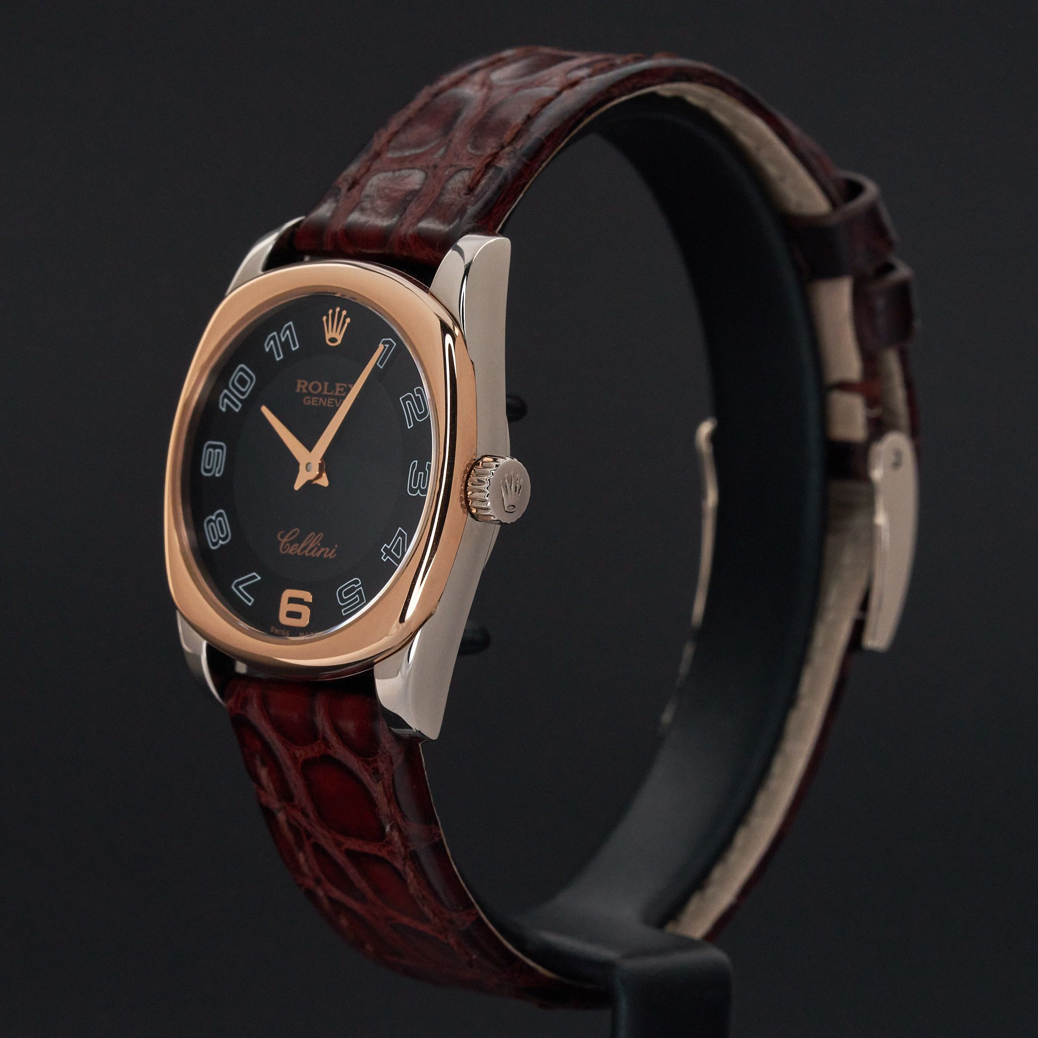 This Rolex Cellini Danaos 6229 features a Black Arabic dial and is crafted from 18K white gold and rose gold, with a production year of 2008.Case No: M76XXXX