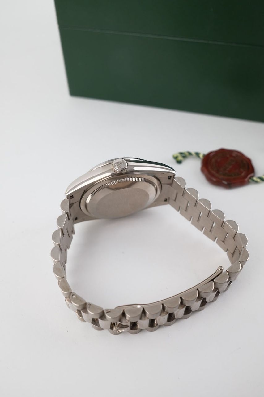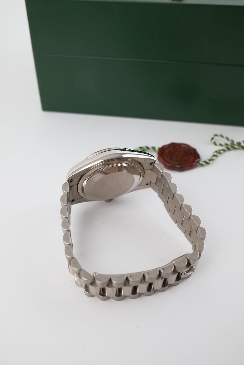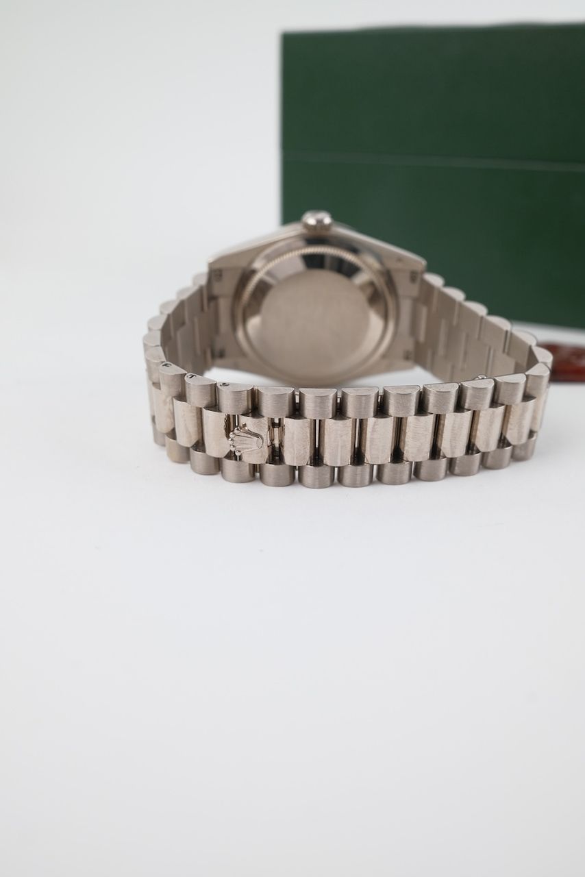 **Watch Description**Ready for your new dream watch? Perhaps this beautiful Rolex Day-Date 36 made of White gold will soon be on your wrist. Whether vintage or modern - with over 200 watches in stock, we always have your new luxury watch available for you immediately - whether you are a first-time buyer or your watch collection needs a new addition.
