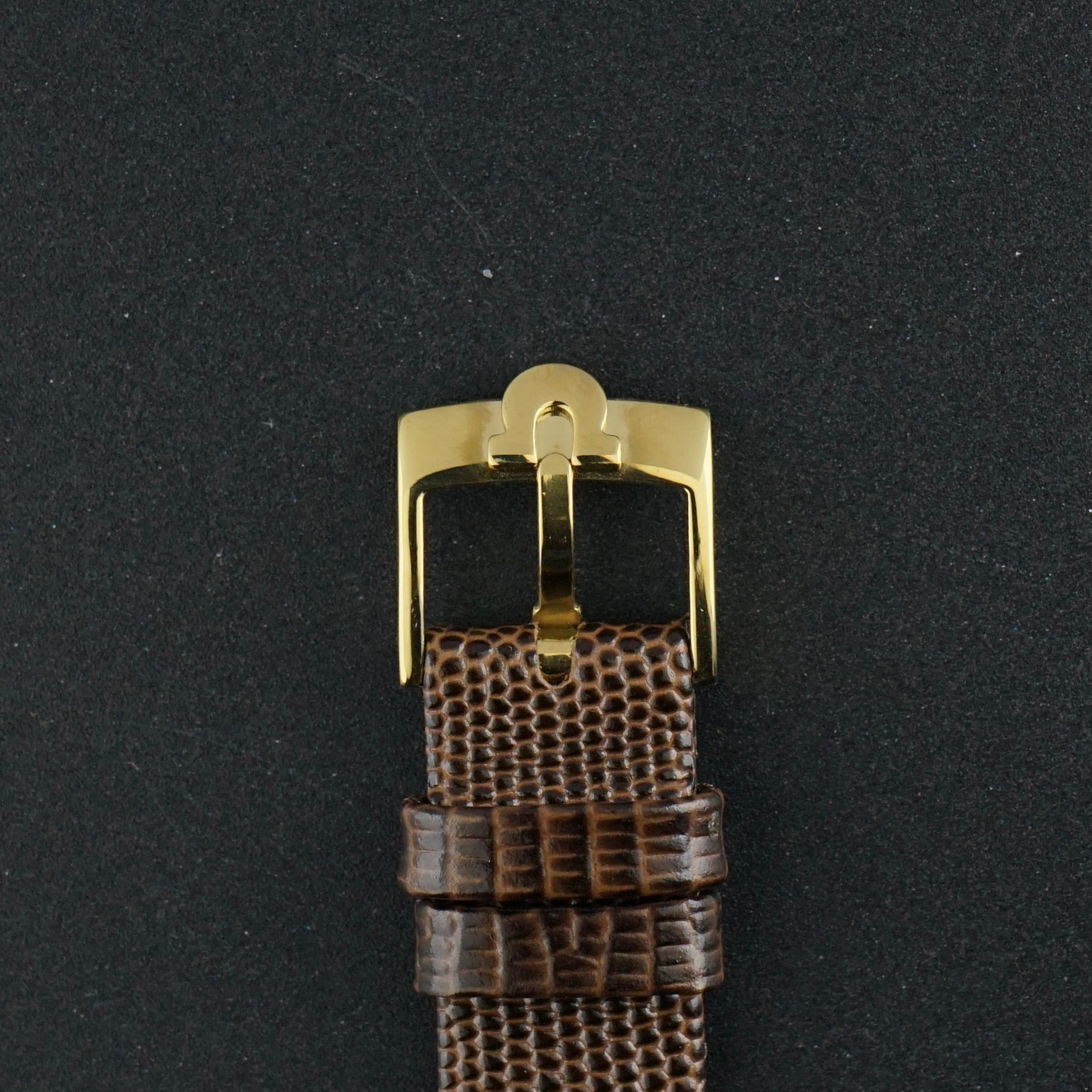 Strap: A brown leather strap with Lizard grain. (Fits a 10 to 19cm wrist)