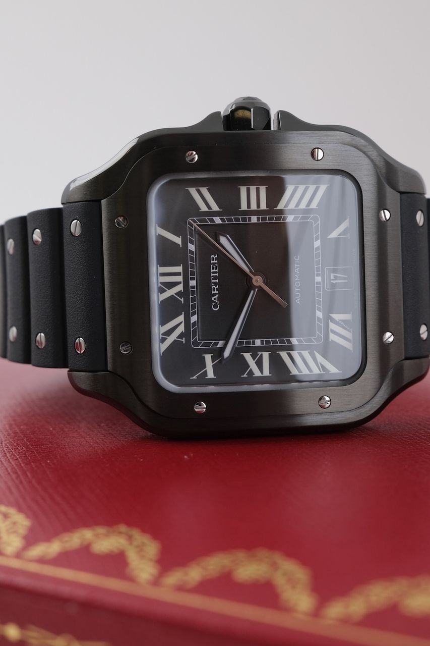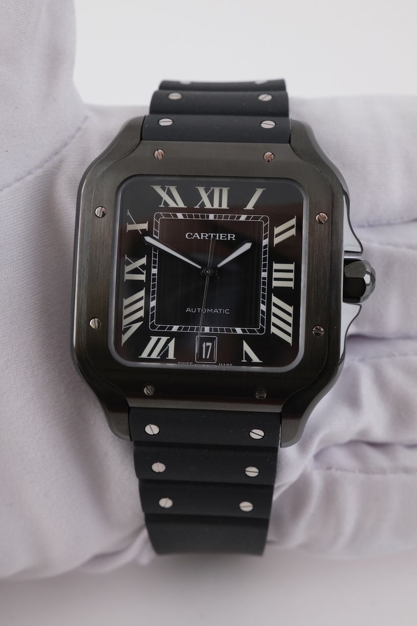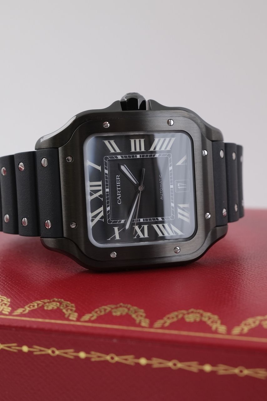 Cartier Santos Large WSSA0039 Austrian First Buyer's Invoice Cartier Warranty 07/30 ADLC incl. Leather Strap Black