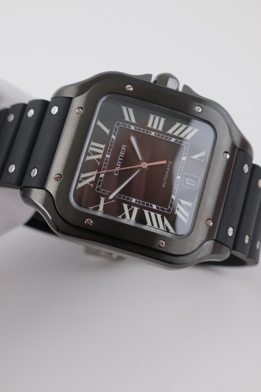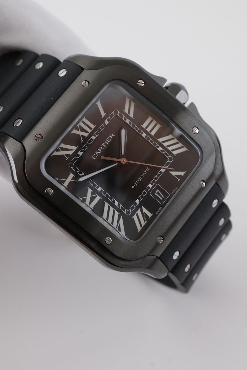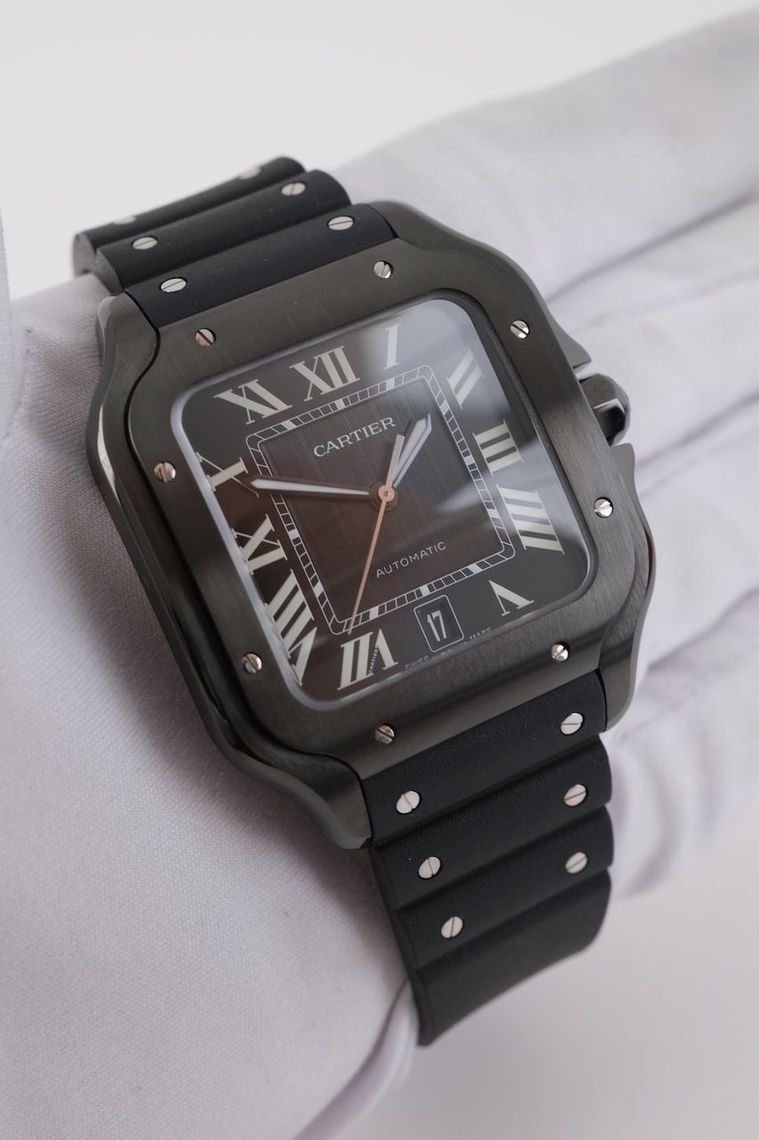 Cartier Santos Large WSSA0039 Austrian First Buyer's Invoice Cartier Warranty 07/30 ADLC incl. Leather Strap Black