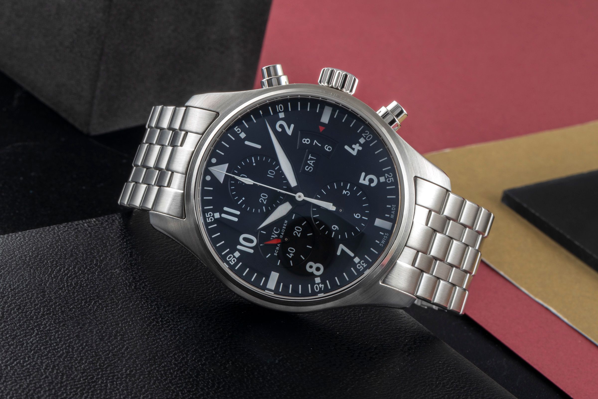 Alternative title: IWC IW377704 Pilot's Watch Chronograph Stainless Steel / Black / Bracelet; IWC Fliegeruhr Chronograph Stahl Automatik Herrenuhr Ref. IW377704 B&P 2018 [2504890]